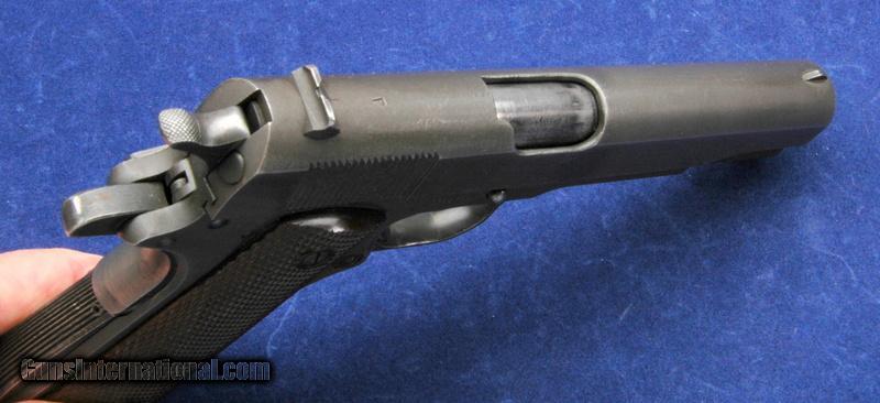 Description: Available for purchase (at a great price) is this Ithaca marked ww2 1911A1. The lower half was made by Remington Rand and it may have a commercial barrel bushing. The barrel has a P proof and is marked HS (High Standard) A lady walked into the shop the other day and said that this pistol was carried by her grandfather in WW2, he was a B17 pilot, she said. Wear and tear is as you see it, which I consider pretty typical for a carried in theatre ww2 1911A1. My dad's does not look as good as this one! The bore is excellent. Comes with 3 factory Colt commercial magazines. As you can see, the lanyard loop has a little bend to it. I don't know if this was purposeful or by accident, but I'll leave it to the buyer to straighten it out. Everything else looks like original ww2 USGI military issue. $35 shipping to the continental 48 and 3% surcharge for using a CC. SOLD |