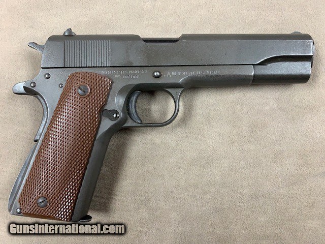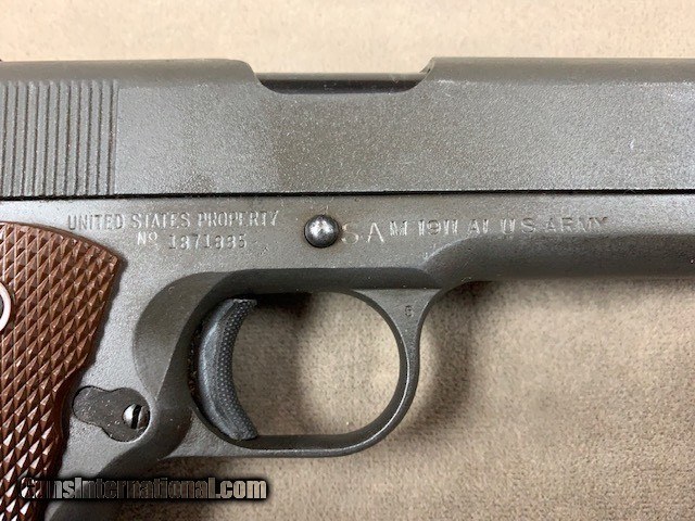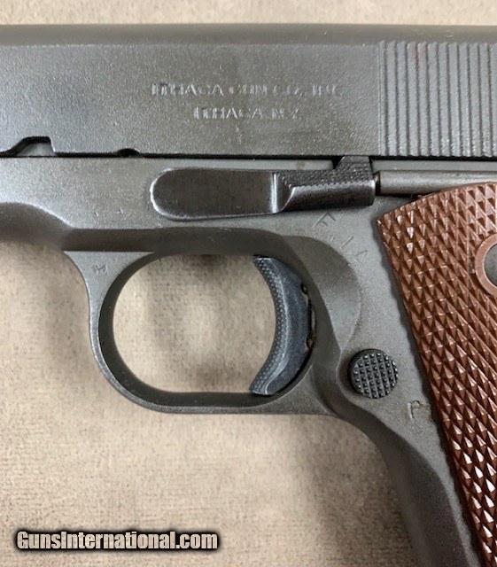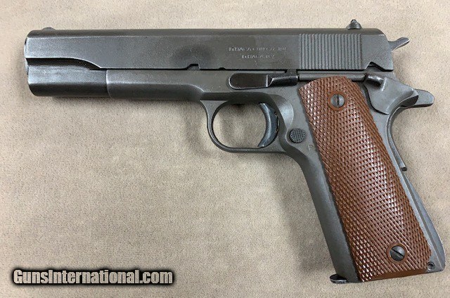 Description: Nice original Ithaca 1911A1 .45 acp pistol, serial range 187188x. Pistol appears to be all original right down to the magazine and with an excellent bore and chamber. Condition is superb just look at the photos. Don't get to see too many like this anymore - seems most have been monkeyed with in one way or another. This one the best Ithaca we've had in many a moon....and we have priced it quite fairly! SOLD Curio/Relic: Yes |