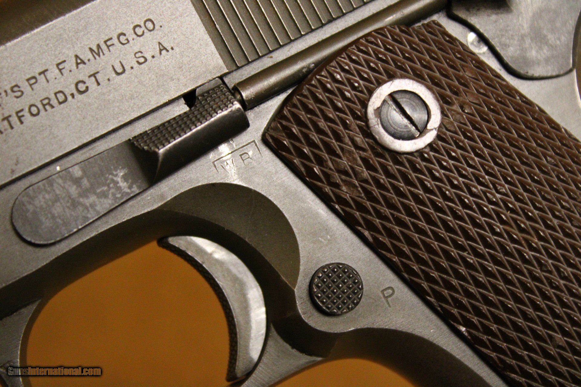 Description: In 95% very sharp 100% correct factory original condition, we have an early March 1942 production “WB” cartouche Colt model 1911A1 US Army Service Pistol. This is what everyone thinks of when they think of a WWII Colt 1911a1 pistol, indeed when Colt made their WW2 reproduction a few years back they copied it after an early 1942 production Waldemar Broberg inspected pistol. The pistol is 100% correct and factory original, the barrel is the correct “F” marked barrel with a rough bore and the slide is numbered to match the frame. It also has the early hollow back grips. This pistol saw some carry during the war but was very well maintained. Everything on this pistol is original exactly as it left the factory. This pistol is an exceptional textbook example of an Early wartime production Colt 1911a1. It is as you may well imagine, very tough to get an early war production gun in this exceptional condition, they were sent straight into the fight, many were lost and almost all that returned were re-worked and overhauled unlike this example. All items are also available for sale in our brick & mortar store and are subject to prior sale. Think long, think wrong. Payment On firearms, we typically only accept credit cards or money orders/cashier's checks.
