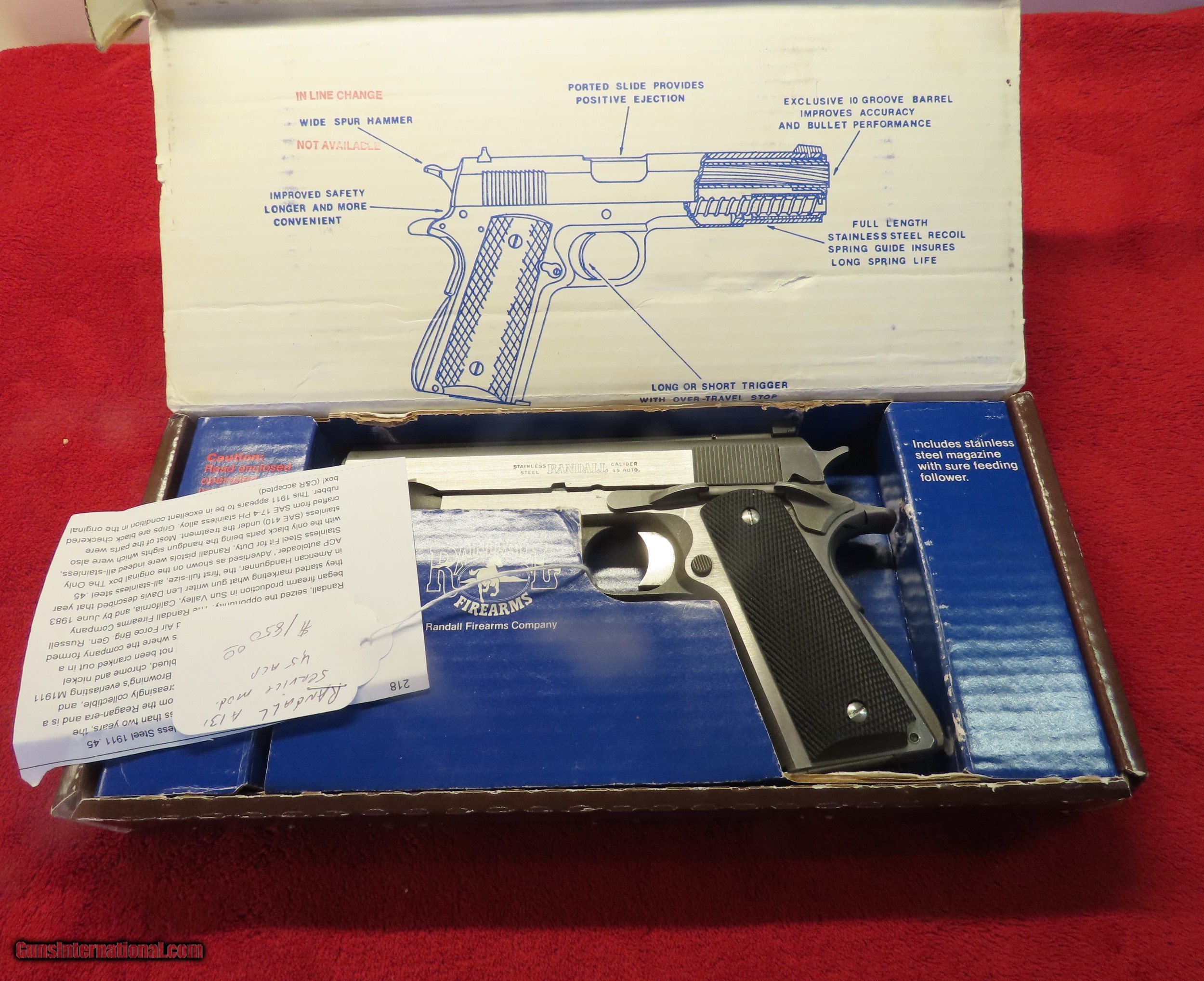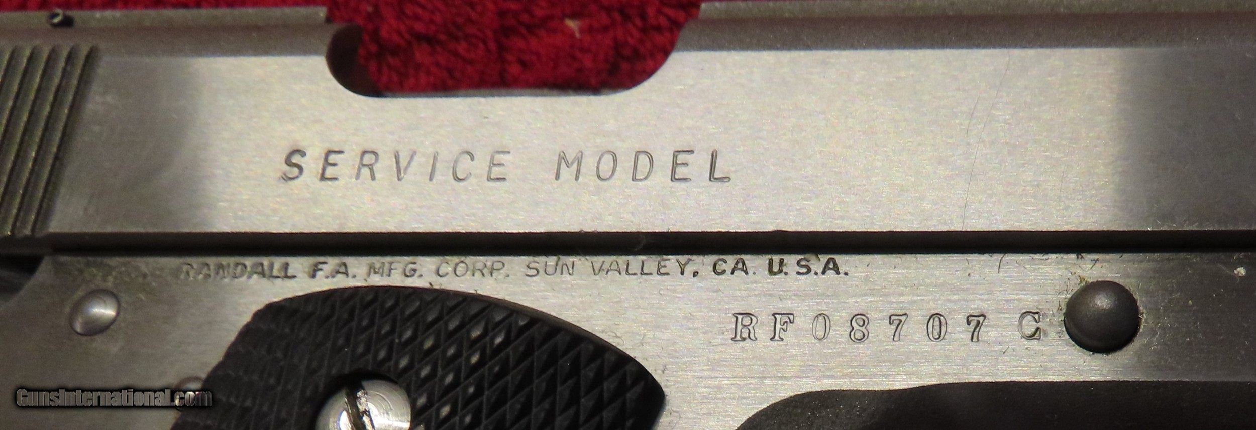 Description: Excellent condition .45 ACP Stainless Steel Randall A131 Service Model with 5" barrel and excellent bore. Comes with box. $35.00 Shipping We Accept Visa, Mastercard, Checks, and Money Orders (With personal checks gun will be held until check clears) No Credit Card Fees We offer layaway with 1/3 down, 1/3 in 30 days, and balance in 60 days. . FFL required for shipping; All items shipped Priority Mail Please contact Gloria at 540-613-2077 (after 12 noon eastern time) or email jimsguns2020yahoo Thanks for Looking! SOLD Model: A131 Service Model Serial Number: RF08707C Barrel Length: 5 Condition: Excellent Bore Condition: Excellent |