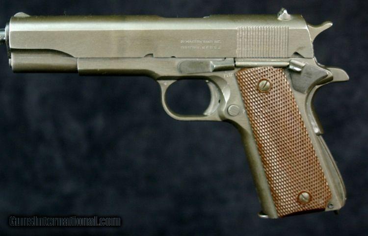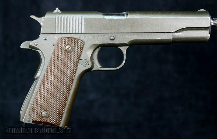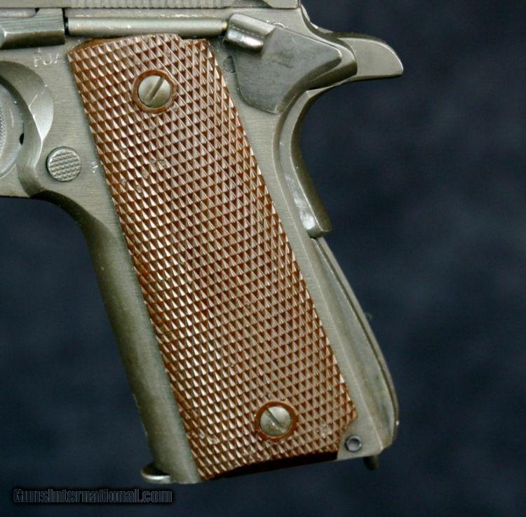 Description: .45acp, #1903587, 5 inch barrel, parkerized finish, correct plastic 2 piece grips, standard sights, circa 1843. Condition: excellent bore, 95% finish overall, excellent mechanically, excellent marks. SOLD Curio/Relic: Yes |