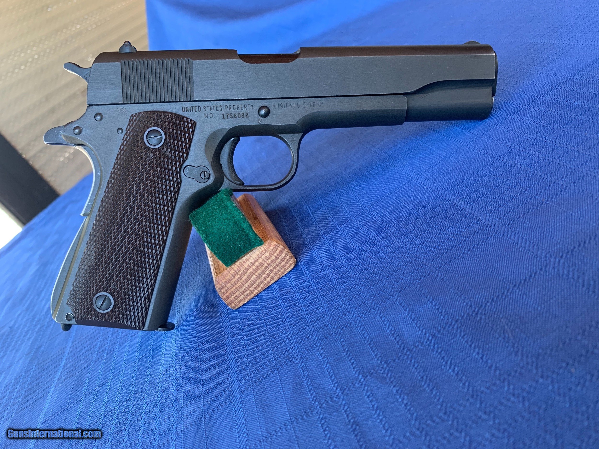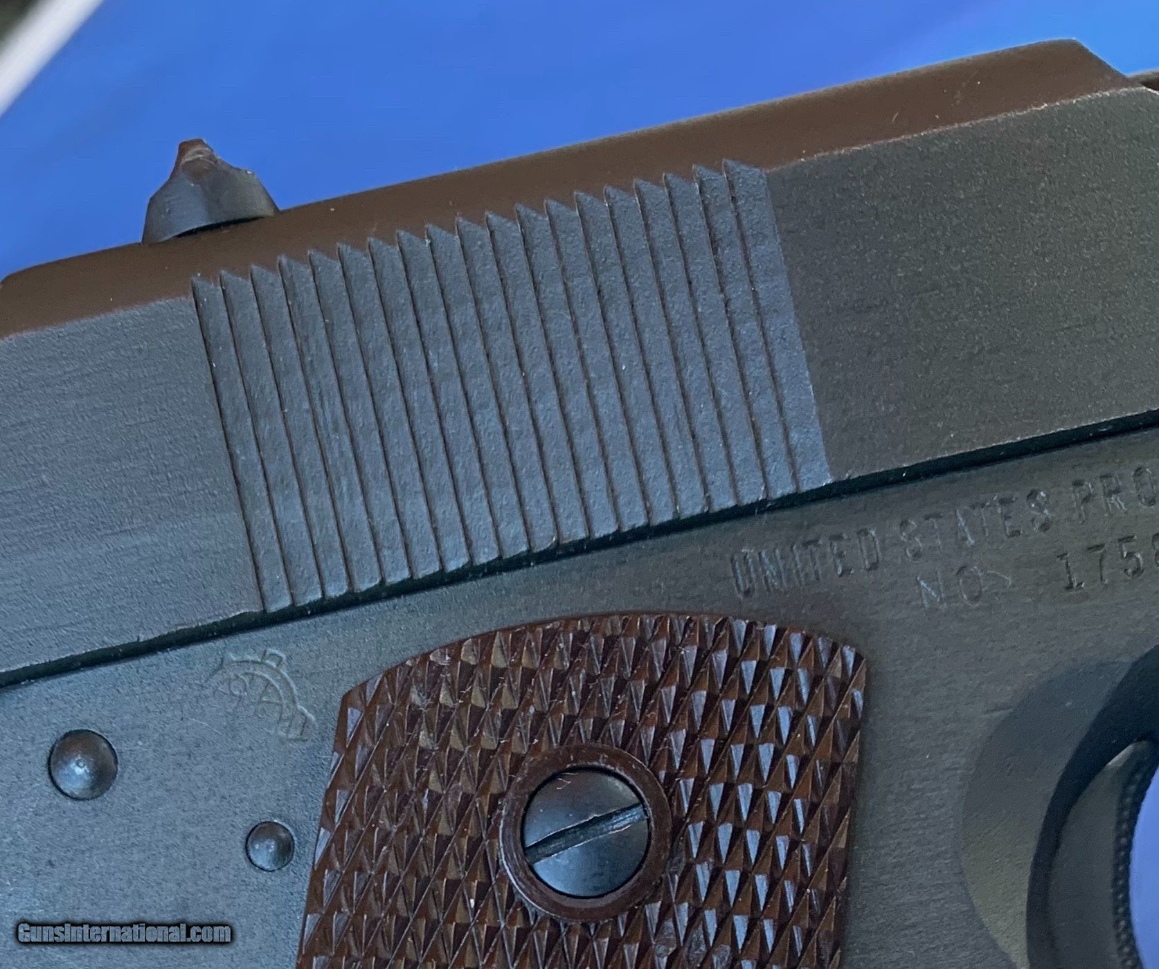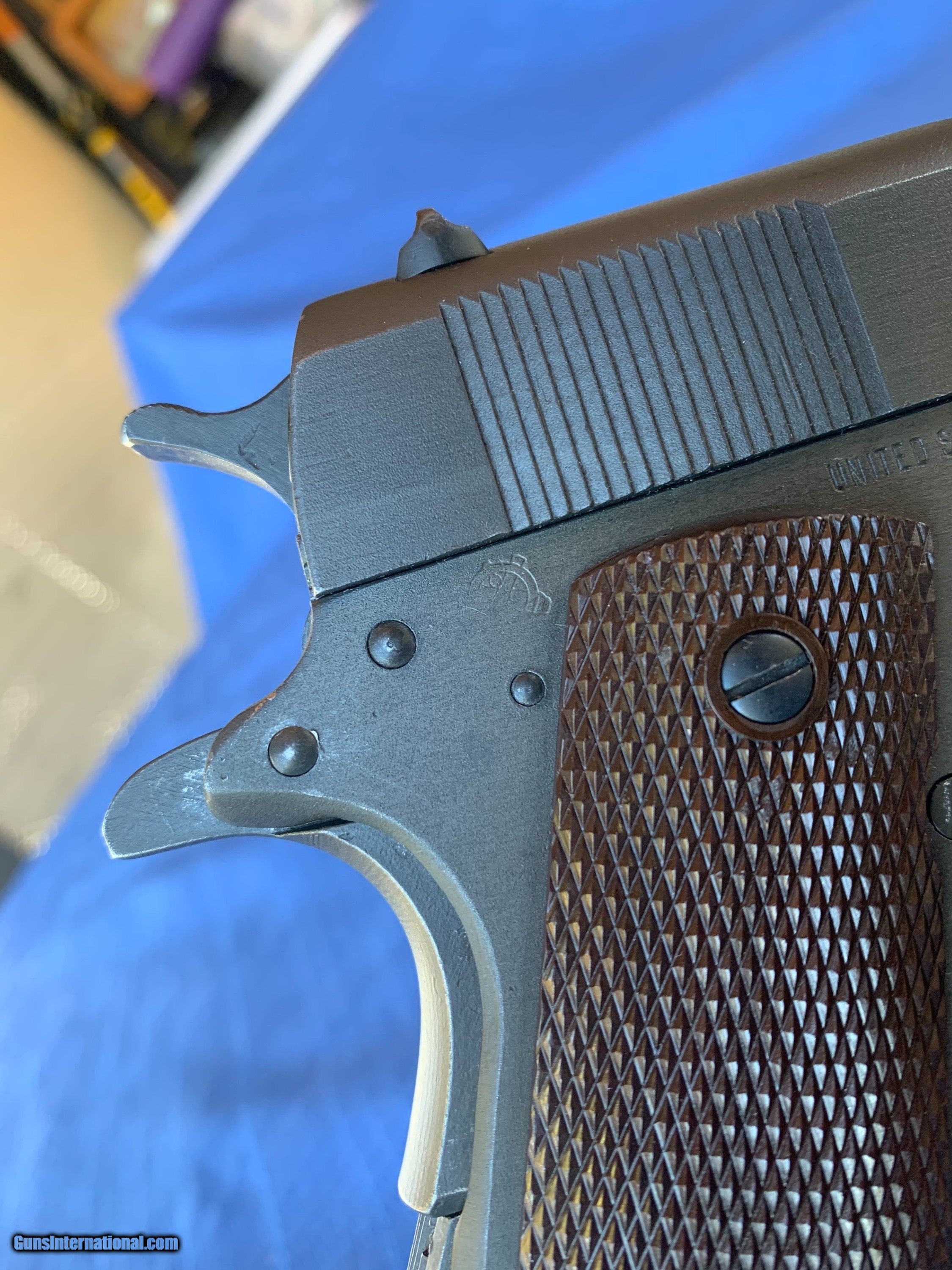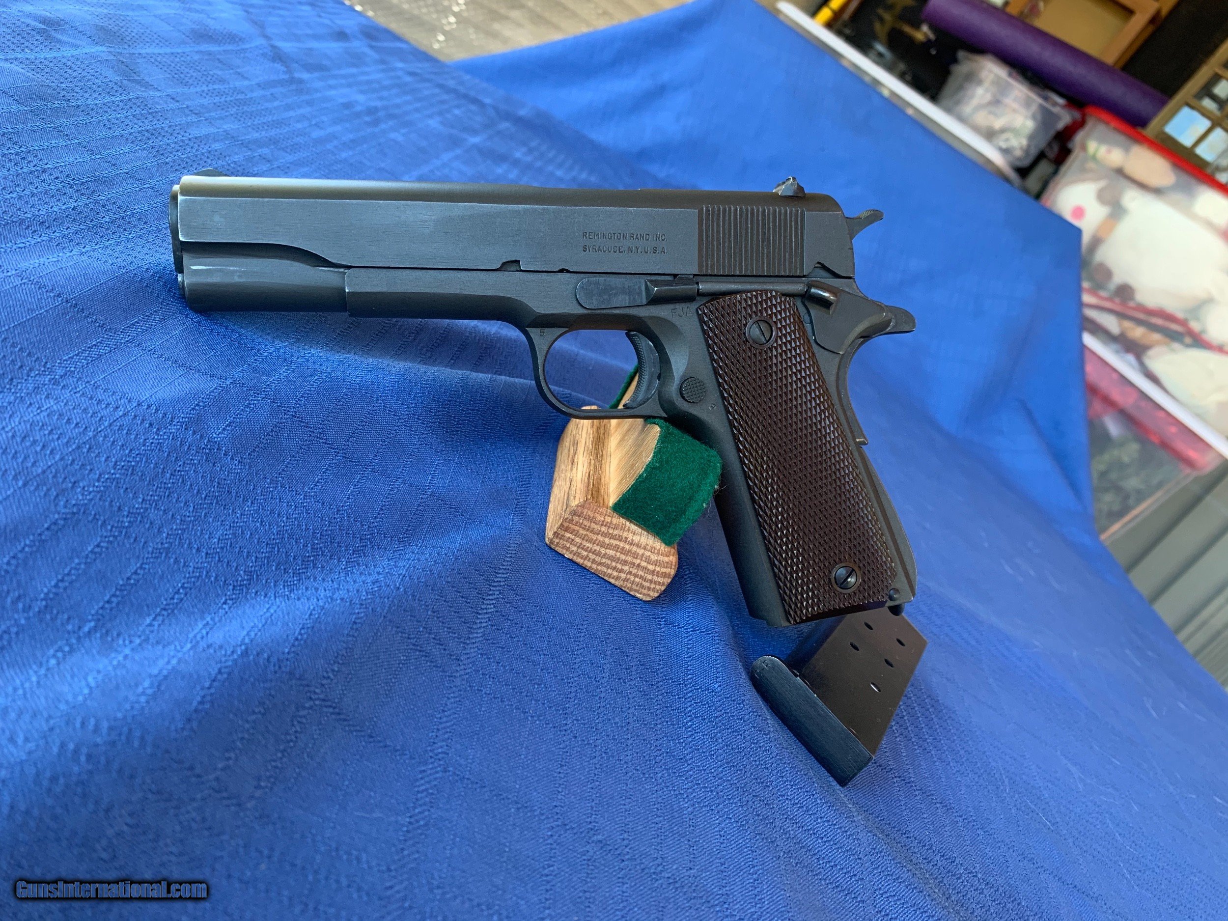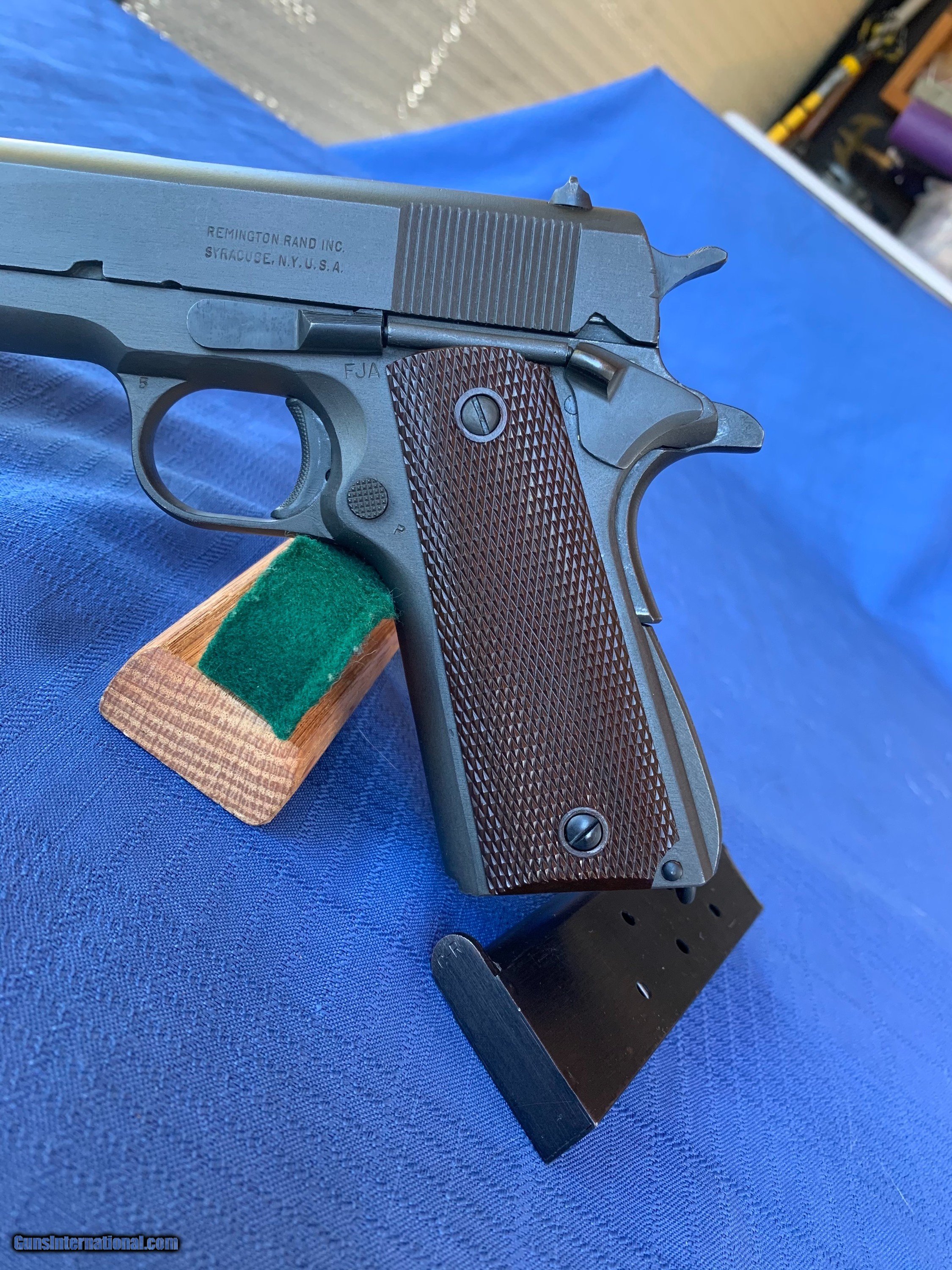 Description: Here's one of the Finest Examples Known of a WW2 Remington Rand 1911A1. Real Honest Stunning Original Piece! Comes with original MINT holster dated .Bore and mechanics are Excellent Plus Condition. Bore is mint . 100 percent of the Solid Parkerized finished still remaining . Markings are crisp ! Gun is as new . 100 percent original and Correct Remington Rand. Please review my photos and email me with any questions ? 3 day inspection as allways . Thank you for looking Little Jo SOLD Curio/Relic: Yes Handgun Caliber: .45 ACP (.45 Auto) Manufacturer: Remington Model: Rand 1911 |