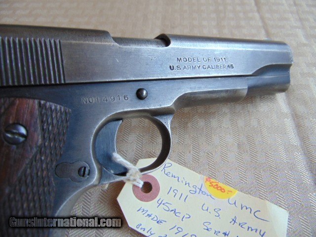 Description: REMINGTON UMC MODEL 1911 U.S. ARMY " UNITED STATES PROPERTY " MILITARY SEMI AUTO PISTOL , CALIBER 45ACP . MADE IN 1919. ONE OF ONLY 21,676 MADE IN 1918-1919, A VERY GOOD CORRCT GUN WITH PROPER "P" MARKED BARREL MARKED ON TOP OF THE BARREL IN THE EJECTOR PORT AREA. MILITARY INSPECTOR E.E.C. ALSO SHOWS INSPECTOR EAGLE OVER 136 ON THE REAR OF THE SLIDE AND ON THE TRIGGER GUARD. GOOD SHOOTABLE BORE WITH FROST . TIGHT ACTION THAT FUNCTIONS FINE, COMES WITH A TWO TONE LANYARD MAGAZINE, ADD 40.00 UPS 2ND DAY AIR SHIPPING. C&R OK EASTERN BRANCH FIREARMS ADD 30.00 SHIPPING – HANDGUN USPS PRIORTY MAIL ADD 45.00 SHIPPING – LONG GUNS USPS PRIORTY MAIL Questions e-mail or call Glen at Eastern Branch Firearms 207-215-5021 TERMS – PLEASE READ BEFORE I DO NOT HAVE A LAYAWAY OPTION ( WE ACCEPT ALL MAJOR CREDIT CARDS ) -- I GET ALOT OF REQUEST FOR TRADES, I WOULD PERFER NOT TO DO TRADES ON MY INTERNET LISTINGS. LEGAL REQUIREMENT- Modern firearms must be transferred through a licensed FFL dealer in your area. to supply a signed copy of local dealer’s license before shipment will be made. A C&R License is acceptable for C&R firearms only (guns determined to be C&R’s by ATF and guns known to be at least 50 years old). California law will NOT allow shipment of C&R handguns direct to a C&R holder in the State of California, a 01 FFL LIC. dealer must be used. Antique firearms require to supply proof of age. Some areas still require an FFL transfer for antique & black powder firearms (New Jersey, NYC, etc.) Large capacity magazine restrictions: New Jersey - 15 round maximum for semi-automatic firearms only. California - 10 round maximum for all magazines. Maryland - 20 round maximum for all magazines. Massachusetts - over 10 rounds. Hawaii - 10 round maximum for all handgun magazines. PAYMENT OPTIONS- We accept money orders, cashier’s checks , bank checks. sorry no personal checks. We accept all major credit cards please add 3% to the ’s cash discount price .Handguns and long guns do need to be shipped separate. PLEASE do not send payment via FED EX . USPS & UPS are fine. Thank you. We include a signed copy of our FFL with each firearm shipped. AMMO •WARNING: Buyer must be over the age of 21 with proof of age to purchase. All state, local and federal laws apply. Please do notif you are prohibited from buying this item in your area. No ammunition will ship to prohibited areas such as the cities of Los Angeles, Oakland and San Francisco. No Shipments to Massachusetts, New York City or Washington D.C. No Shipments to Chicago, IL residents must provide a FOID card. We cannot ship to Alaska or Hawaii. If you are a resident of one of these areas please do not bid. Thank you. SAFTY NOTICE- Buyer is solely responsible for determining that a used gun is safe to shoot. The firearms offered have not been test fired but have been given a visual inspection only for purposes. It is a requirement that every used firearm is inspected by a qualified gunsmith before firing. By , the buyer agrees to hold seller harmless against damages, injury, or death caused by defective merchandise. RETURN POLICY- All firearms come with a 3-day non firing , non messing with ( turning srews ,taking apart,removing parts, scoping. firing, cleaning or messing with in anyway) inspection/return privilege.Inspection is based on a visual review of the gun to confirm the gun is in the condition stated. In the case of a return, buyer pays all shipping charges & if paid for with a credit card buyer absorbs the 3% credit card charges . So please ask questions BEFORE you bid. In the event that the site goes down within 12 hours of the end of the , We reserve the right to relist the item. Thanks for Looking and Good Luck!! U.S. sales only, no exports…this includes antiques. I will ship to third party for exporting- SOLD Curio/Relic: Yes |