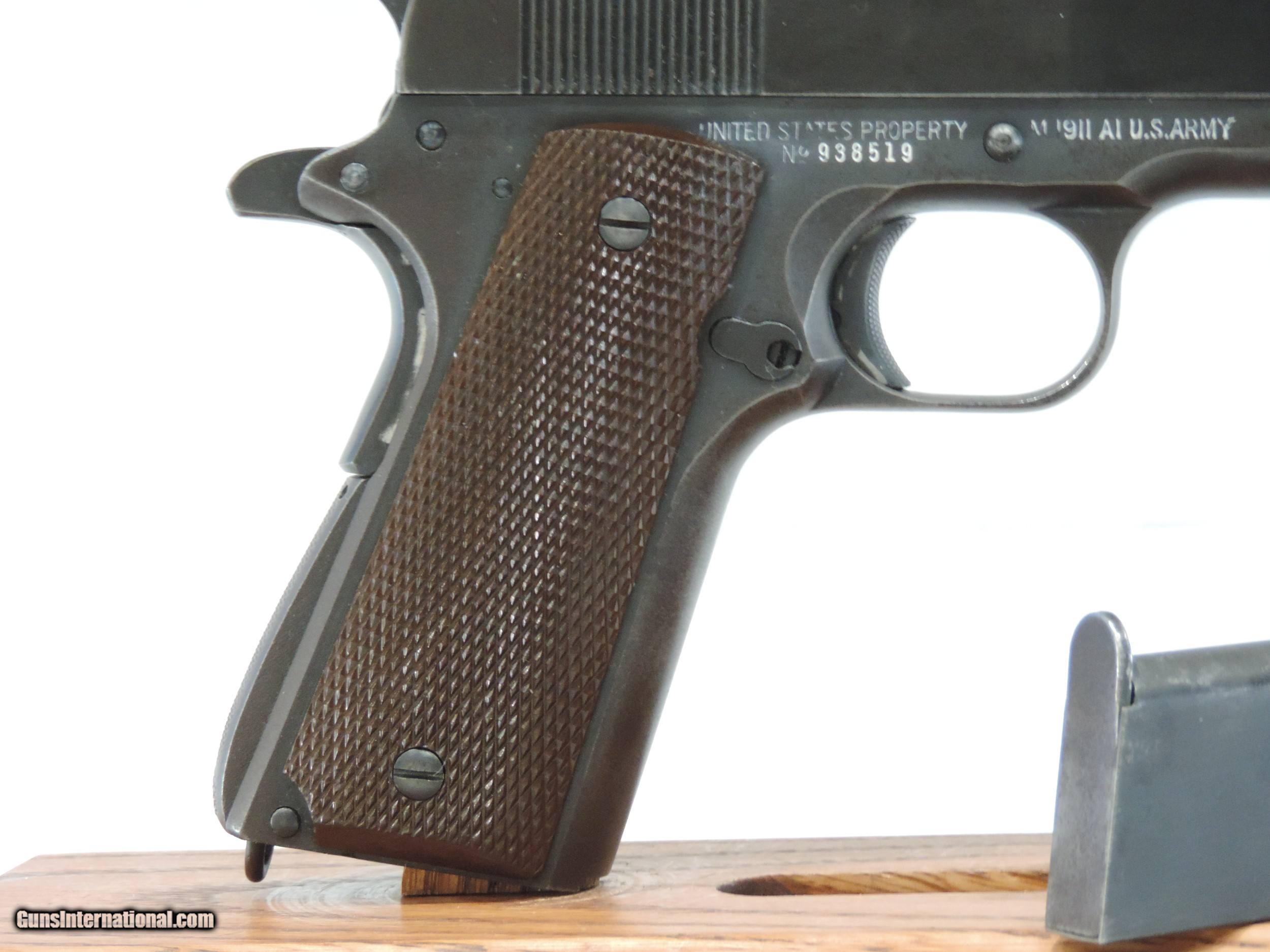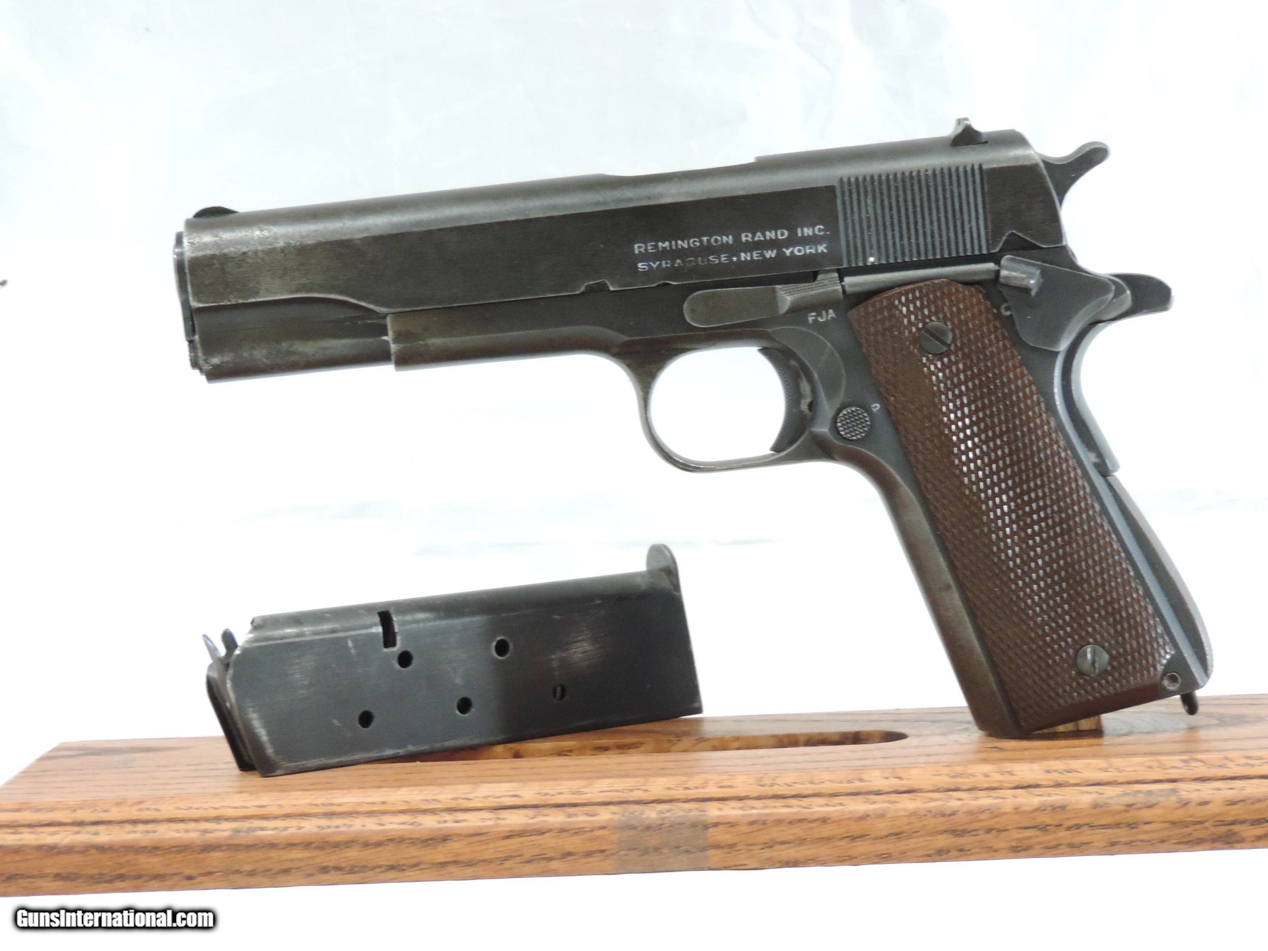 SCARCE REMINGTON RAND FIRST VARIATION, CAL. .45ACP. ,SER. 938519. MFG. LATE 1942. BEEN THERE AND DONE THAT!!!