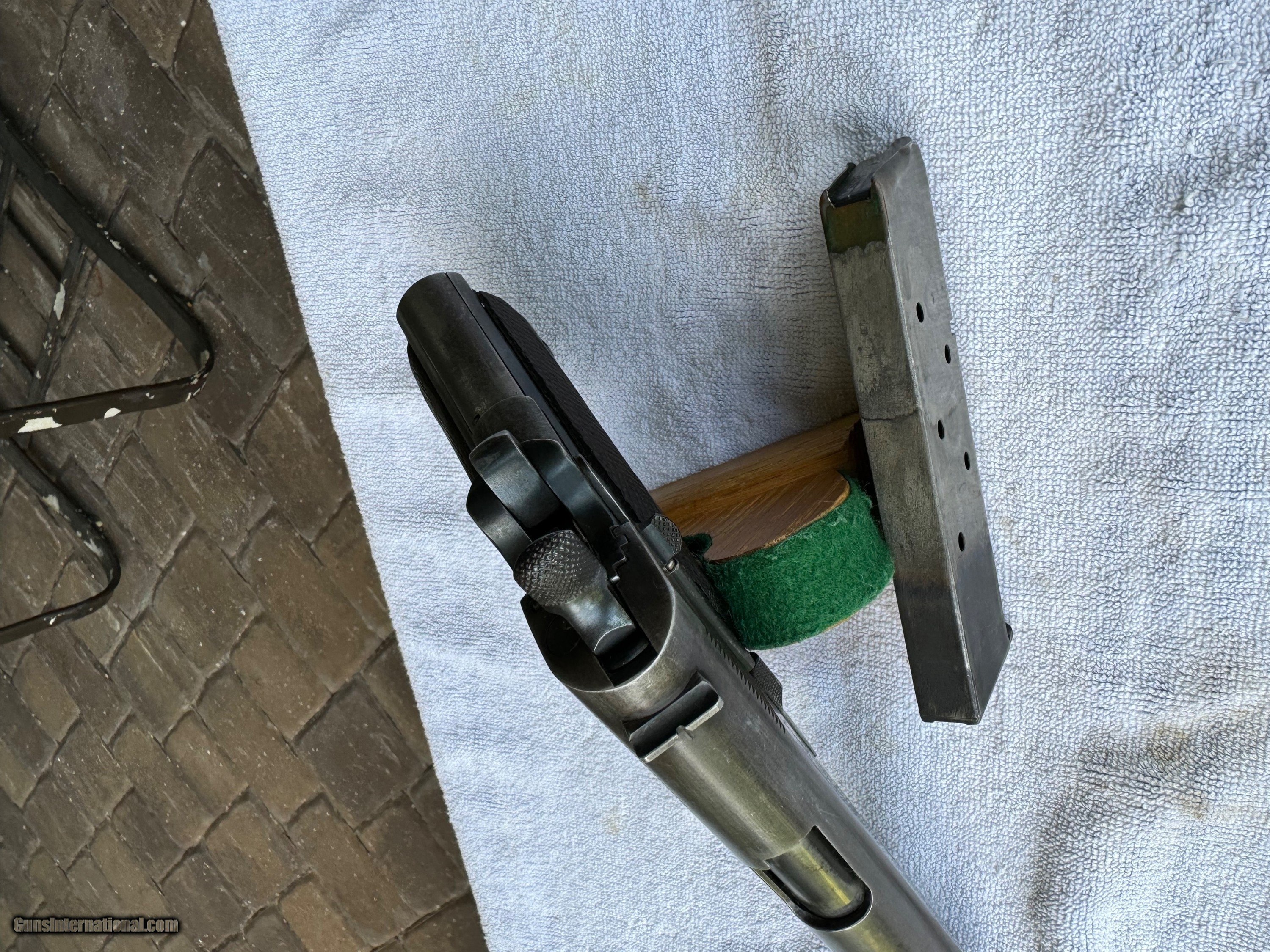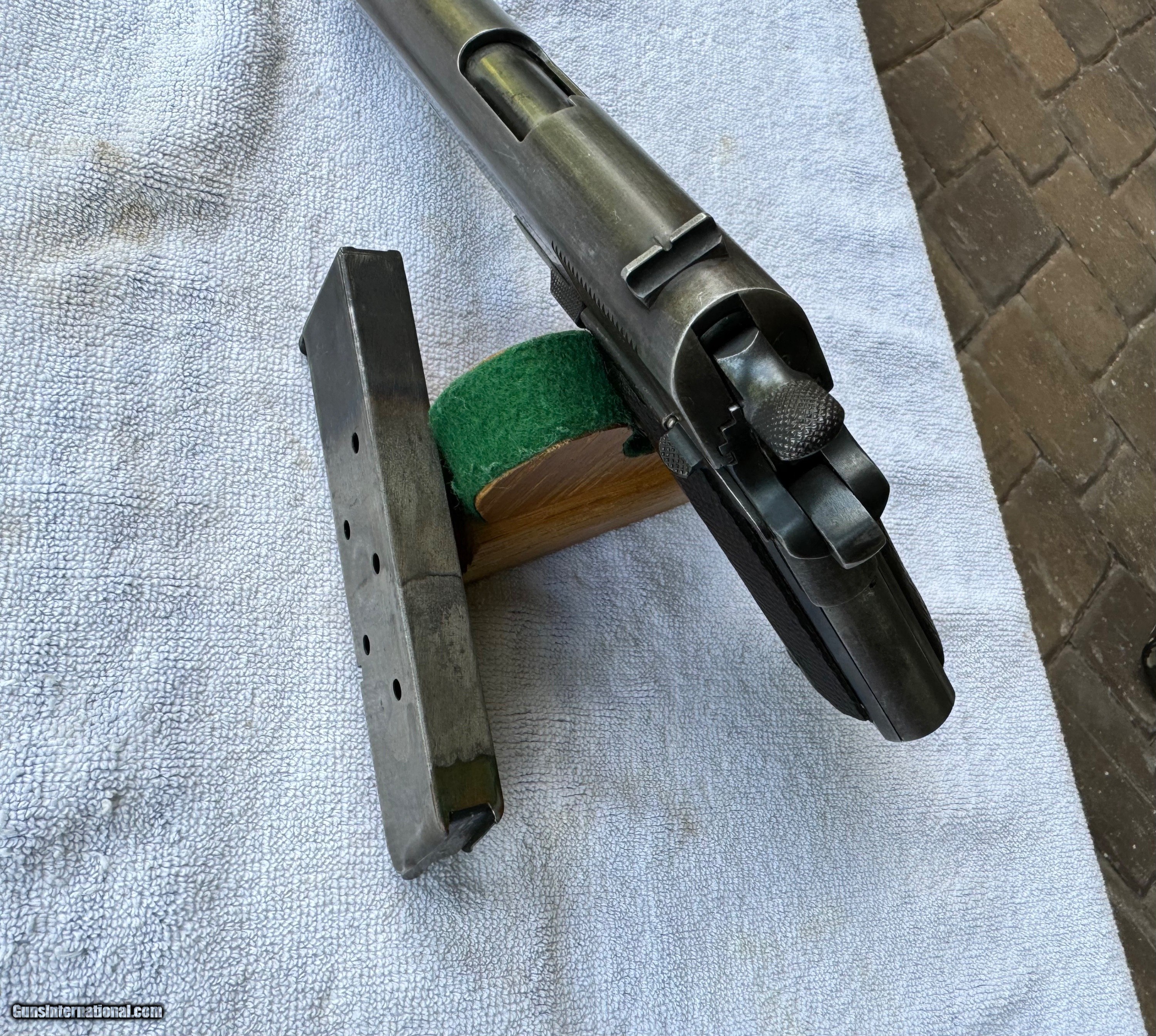 Description: Here's a Awsome Springfield 1911 WW1 Original ! Serial number 74183 . Comes with 1918 dated holster , belt and pouch! All items are maker marked and in excellent original condition! Gun is in excellent condition with some of its solid finish still remaining the rest a blue brown patina . With some holster wear . Gun is 100 percent original and correct including a Springfield correct magazine ! All correct parts . Bore and mechanics are in excellent condition. Gun locks up tight and is in excellent working condition. Please review my photos and please enumerate with and questions ? 3 day inspection as allways ! Thank you for looking, Little Jo SOLD Curio/Relic: Yes Handgun Caliber: .45 ACP (.45 Auto) Manufacturer: Springfield Model: 1911 Serial Number: 74183 Condition: Excellent |