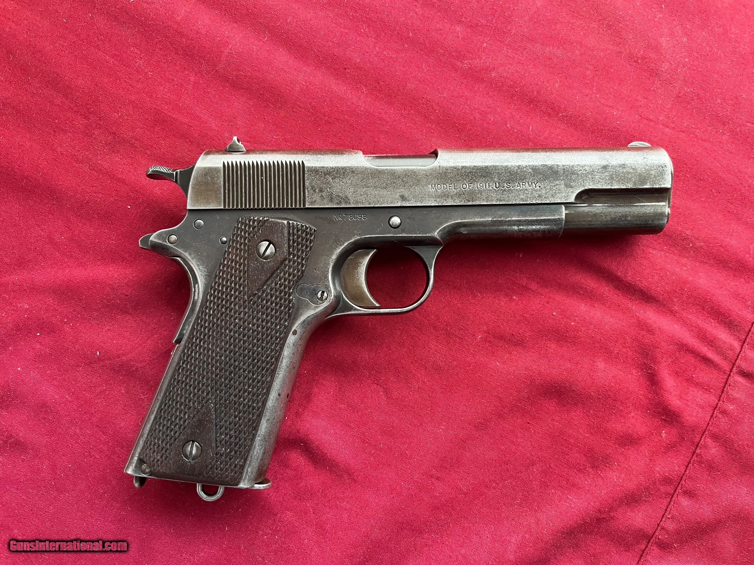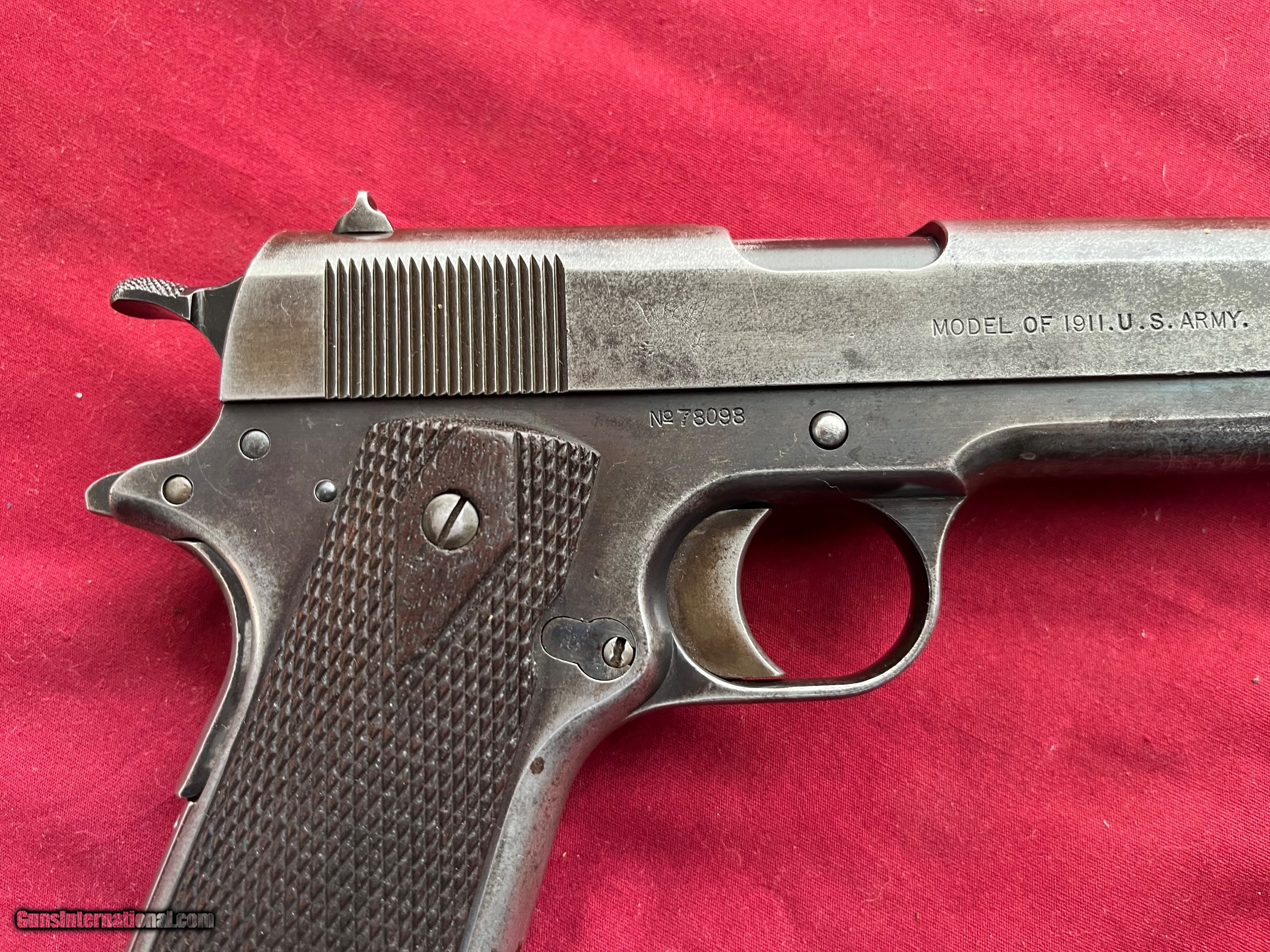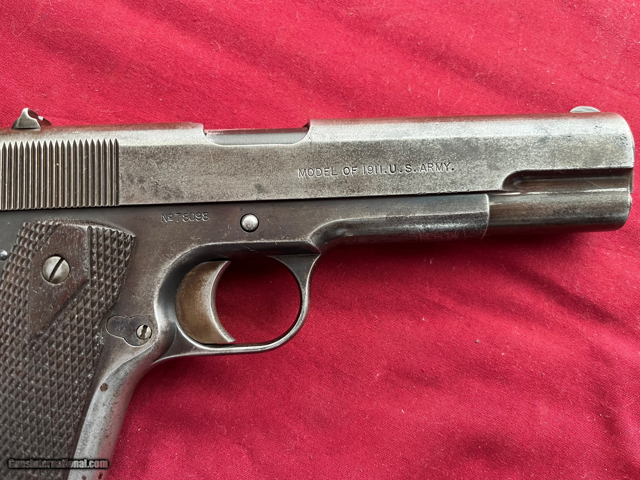Description: SPRINGFIELD ARMORY 1911 WWI U.S. MILITARY 1911 U.S. ARMY 45 ACP PISTOL SER# 78098 MADE IN 1914. GUN SHOWS ORIGINAL FINISH THINNING FROM HOLSTER WEAR CORRECT SPRINFIELD MAGAZINE. VERY GOOD SOLID GRIPS. HAS A COLT HP INTERTINE BARREL WITH A FROSTY BORE. A VERY NICE EXAMPLE OF A EARLY 1914 WWI ERA MILITARY PISTOL . EASTERN BRANCH FIREARMS ADD 35.00 SHIPPING – HANDGUN USPS PRIORTY MAIL ADD 50.00 SHIPPING – LONG GUNS USPS PRIORTY MAIL SORRY NO MORE UPS SHIPPING – THERE POLICY NOT TO SHIP GUN AS OF 8/29/2022 Questions e-mail or call Glen at Eastern Branch Firearms 207-215-5021 TERMS – PLEASE READ BEFORE I DO NOT HAVE A LAYAWAY OPTION ( WE ACCEPT CREDIT CARDS ) -- I GET ALOT OF REQUEST FOR TRADES, I WOULD PERFER NOT TO DO TRADES ON MY INTERNET LISTINGS PAYMENT OPTIONS- We accept money orders, cashier’s checks , bank checks. sorry no personal checks. We accept all major credit cards please add 3% to the ’s cash discount price.(Shipping within the state of Florida - Florida Residents must pay sales tax) .Handguns and long guns do need to be shipped separate. PLEASE do not send payment via FED EX . USPS & UPS are fine. Thank you. We include a signed copy of our FFL with each firearm shipped. SAFTY NOTICE- Buyer is solely responsible for determining that a used gun is safe to shoot. The firearms offered have not been test fired but have been given a visual inspection only for purposes. It is a requirement that every used firearm is inspected by a qualified gunsmith before firing. By , the buyer agrees to hold seller harmless against damages, injury, or death caused by defective merchandise. RETURN POLICY- All firearms come with a 3-day non firing , non messing with ( turning srews ,taking apart,removing parts, scoping. firing, cleaning or messing with in anyway) inspection/return privilege.Inspection is based on a visual review of the gun to confirm the gun is in the condition stated. In the case of a return, buyer pays all shipping charges & if paid for with a credit card buyer absorbs the 3% credit card charges . So please ask questions BEFORE you bid. Thanks for Looking and Good Luck!! U.S. sales only, no exports…this includes antiques. I will ship to third party for exporting SOLD Curio/Relic: Yes |