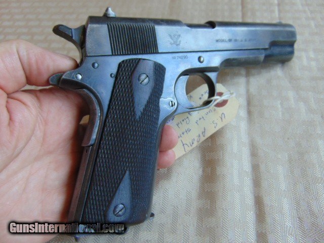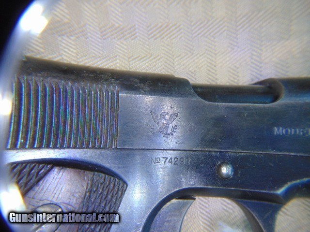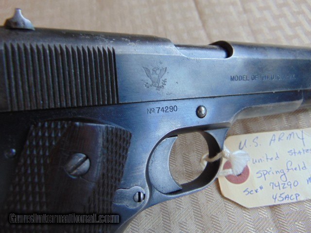 Description: SPRINGFIELD ARMORY MILITARY 45 ACP PISTOL. MODEL OF 1911 U.S. ARMY , CALIBER 45ACP SER# 74290. MADE IN 1914-1915. " UNITED STATES PROPERTY ". CORRECT MAGAZINE, CORRECT "S" MARKED BARREL AND ALL THE SMALL PARTS SHOW AN "S" EXCEPT FOR THE FRONT BARREL BUSHING. ( SEE PHOTOS) . NICE SOLID CHECKERED DOUBLE DIAMOND GRIPS. GUN SHOWS ORIGINAL FINISH . GOOD SHOOTABLE BORE WITH FROST IN THE GROOVES. C&R OK . ADD 40.00 UPS 2ND DAY AIR SHIPPING . EASTERN BRANCH FIREARMS Questions e-mail or call Glen at Eastern Branch Firearms 207-215-5021 TERMS – PLEASE READ BEFORE I DO NOT HAVE A LAYAWAY OPTION ( WE ACCEPT ALL MAJOR CREDIT CARDS ) -- I GET ALOT OF REQUEST FOR TRADES, I WOULD PERFER NOT TO DO TRADES ON MY INTERNET LISTINGS. LEGAL REQUIREMENT- Modern firearms must be transferred through a licensed FFL dealer in your area. to supply a signed copy of local dealer’s license before shipment will be made. A C&R License is acceptable for C&R firearms only (guns determined to be C&R’s by ATF and guns known to be at least 50 years old). California law will NOT allow shipment of C&R handguns direct to a C&R holder in the State of California, a 01 FFL LIC. dealer must be used. Antique firearms require to supply proof of age. Some areas still require an FFL transfer for antique & black powder firearms (New Jersey, NYC, etc.) Large capacity magazine restrictions: New Jersey - 15 round maximum for semi-automatic firearms only. California - 10 round maximum for all magazines. Maryland - 20 round maximum for all magazines. Massachusetts - over 10 rounds. Hawaii - 10 round maximum for all handgun magazines. PAYMENT OPTIONS- We accept money orders, cashier’s checks , bank checks. sorry no personal checks. We accept all major credit cards please add 3% to the ’s cash discount price .Handguns and long guns do need to be shipped separate. PLEASE do not send payment via FED EX . USPS & UPS are fine. Thank you. We include a signed copy of our FFL with each firearm shipped. AMMO •WARNING: Buyer must be over the age of 21 with proof of age to purchase. All state, local and federal laws apply. Please do notif you are prohibited from buying this item in your area. No ammunition will ship to prohibited areas such as the cities of Los Angeles, Oakland and San Francisco. No Shipments to Massachusetts, New York City or Washington D.C. No Shipments to Chicago, IL residents must provide a FOID card. We cannot ship to Alaska or Hawaii. If you are a resident of one of these areas please do not bid. Thank you. SAFTY NOTICE- Buyer is solely responsible for determining that a used gun is safe to shoot. The firearms offered have not been test fired but have been given a visual inspection only for purposes. It is a requirement that every used firearm is inspected by a qualified gunsmith before firing. By , the buyer agrees to hold seller harmless against damages, injury, or death caused by defective merchandise. RETURN POLICY- All firearms come with a 3-day non firing , non messing with ( turning srews ,taking apart,removing parts, scoping. firing, cleaning or messing with in anyway) inspection/return privilege.Inspection is based on a visual review of the gun to confirm the gun is in the condition stated. In the case of a return, buyer pays all shipping charges & if paid for with a credit card buyer absorbs the 3% credit card charges . So please ask questions BEFORE you bid. In the event that the site goes down within 12 hours of the end of the , We reserve the right to relist the item. Thanks for Looking and Good Luck!! U.S. sales only, no exports…this includes antiques. I will ship to third party for exporting- SOLD Curio/Relic: Yes |