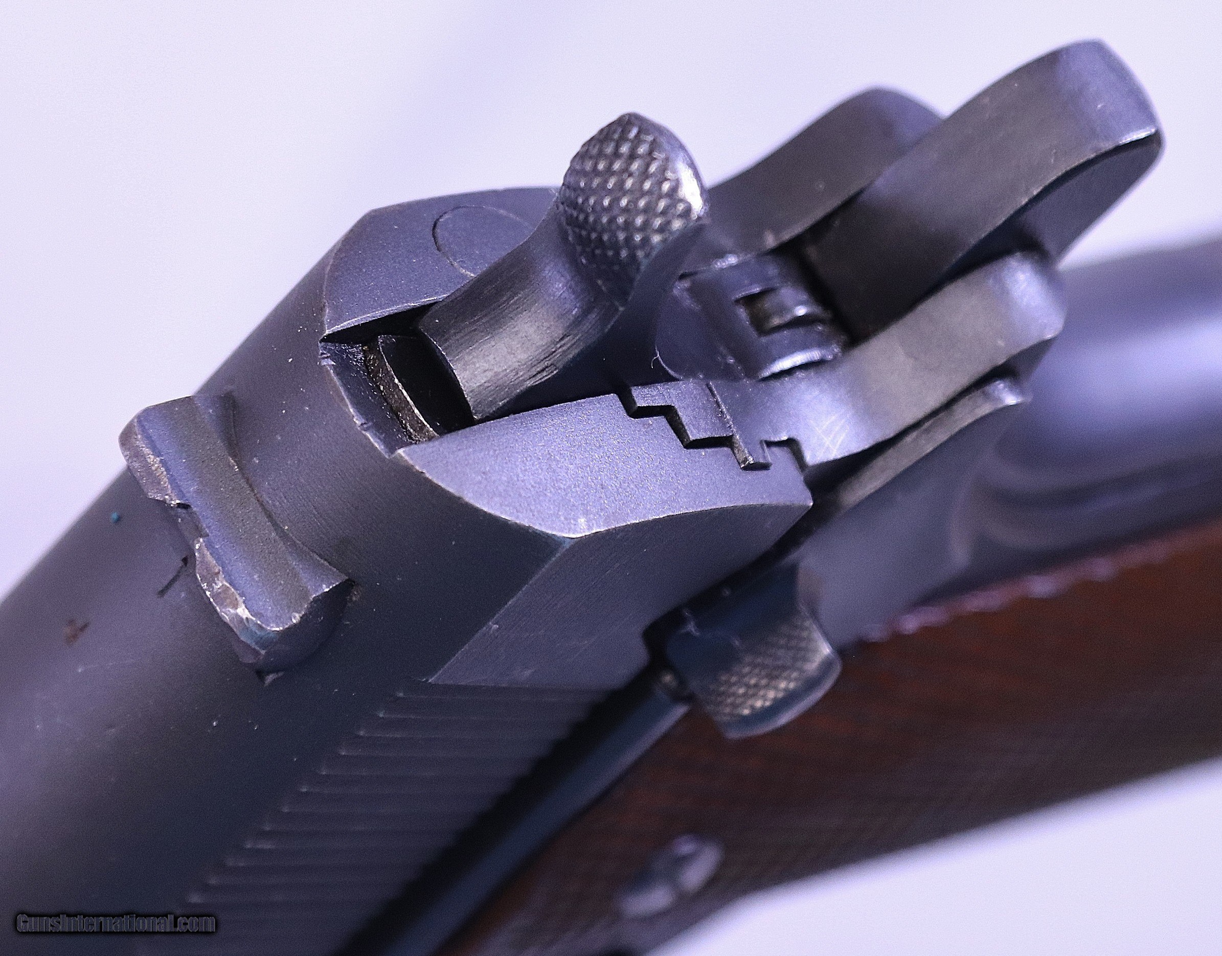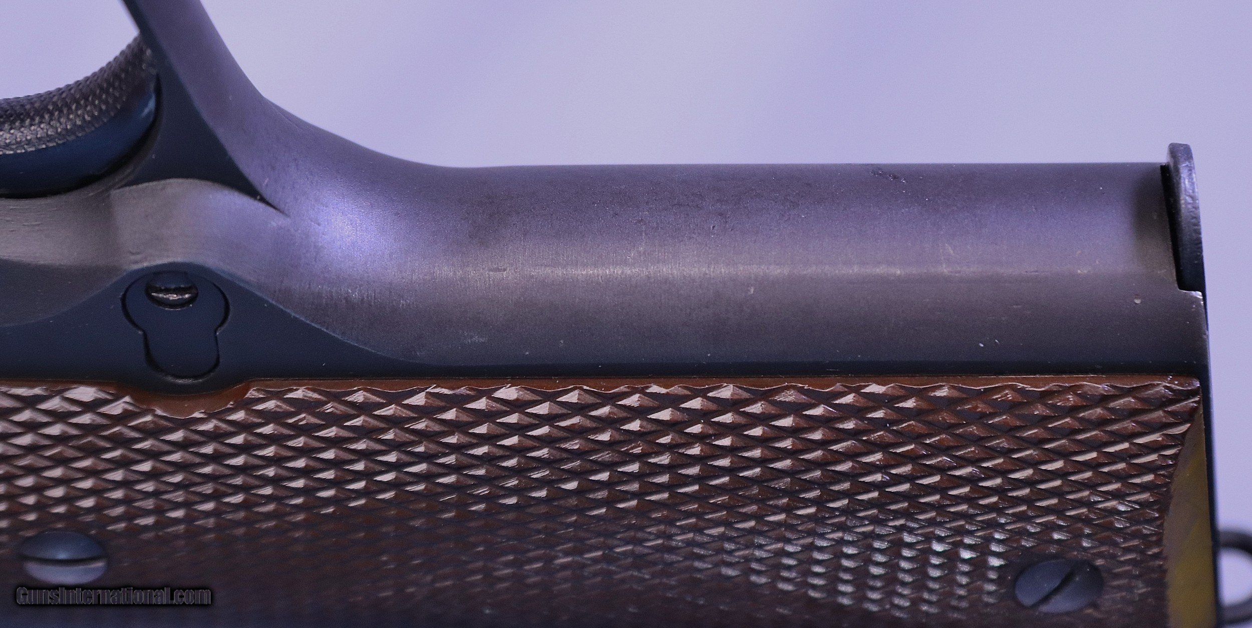 Description: This US&S (Union Switch and Signal) M1911 A1 was manufactured in 1943 and has not been re-worked or re-finished, all parts and finish are factory original. Notice that the RAC (Robert C. Downie) inspectors initials are stamped over the finish as are the “P” firing proofs on the frame and slide top. This is a sure fire indication of the original Du-Lite finish used by US&S. The Crossed Cannon stamp typically seen on WWII issued pistols was not used by US&S so the mark is correctly missing. The barrel has the correct “H.S.” (High Standard) markings. The supporting Barrel Bushing has the unique concentric circle machine marks common only to US&S parts. The bore is sharp but lightly frosted as are many of these vintage pistols from the use of corrosive Ammo. It has a correct "S" (Scoville) marked magazine. There is very little wear on the pistol other that the minimal high spot wear patterns from holster storage and carry. Most of us will not be able to add a Singer M1911 A1 to our collections due to rarity and price. US&S made only 55,000 pistols and are the second rarest WWII M1911A1 pistols and a strongly appreciating asset. The rarity and condition of this pistol make it an outstanding investment and addition to your (401 G) U.S. Military collection. 45 ACP Cal. with a 5 ½” Barrel. Serial Number 1,084,606. FFL Required. Beaver Creek Arms TERMS & CONDITIONS Objective: As a collector of 40 years and Licensed Firearms Dealer since 1989 I have a clear definition of a satisfactory transaction. I will be paid as we agreed to, and you will be satisfied with your purchase. My goal is to establish a client list of satisfied repeat customers who will recommend me to other collectors. It’s just that simple. Exiled Saudi princes with secret funds needing change from an over paid purchase need not apply. Notice: ALL Federal, State, & Local firearms laws will be followed. I will take NO shortcuts in the process of a legal sale or transfer, so please don’t ask. SHIPPING: Normally shipments are made via U.S.P.S. Priority Mail, Insured, with a return receipt. Typical Packing, Shipping and Insurance cost for a handgun is $30.00, and for a Long Gun is $45.00. Please make checks payable to: STEVE CLARK 380 Beaver Creek Rd. Dillsburg PA 17019 FIREARMS: Modern firearms, post 1898, can only be shipped to a Type 01 Federal Firearms License address. Curio-Relic firearms, as defined by the BATF list, can usually be shipped to a Type 03 Collectors License address. Some states have additional restrictions such as CA, CT, DC, IL, MD, NJ and NY. A signed valid FFL license copy either mailed or emailed will be required for shipment to only the license address. Antique firearms, pre 1898 do not require a Federal License. For purchase, a copy of a Government Issued Identification (Driver’s License, Etc.), showing date of birth and current address will be required. GUARANTEE: Your complete satisfaction is assured, see objective above. If you are not satisfied, please contact me within 3 days of receipt. Please don’t fire the weapon, safety, function and accuracy are NOT Guaranteed. Any weapon offered by Beaver Creek Arms is never test fired nor is there any representation the gun is functional and safe to fire. These guns are sold for collectors and only represented as used firearms that must be checked by a competent person, observe all the necessary safety precautions prior to attempting to load and fire one of these weapons RETURNS: Returns must be made within 3 days of receipt. They must be received in exactly the same condition with no parts exchanged. If it has been altered, damaged, or fired, a refund will not be made. Packing, shipping and insurance cost will not be refunded. All layaway purchases are returnable for merchandise credit only. PAYMENT: Bank check, Personal check, and Money Orders are preferred. Visa and MasterCard are accepted with a 3% processing fee. For Visa and MasterCard orders please provide the account number, code number, expiration date, name on card, phone number and card billing address. This information can be phoned in, or E-Mailed. All orders must be paid in advance, C.O.D. orders are not accepted. Checks, both Bank and Personal must clear before the order will be shipped, usually a 2 week delay. LAYAWAYS: A 20% deposit is required. Balance is due in 60 days. Deposits are non-refundable and are forfeited after 60 days. Layaway sales are returnable for merchandise credit only. SALES TAX: Pennsylvania state sales tax is 6% for in state purchases. The payment of other states sales tax, if applicable, for shipped items is the buyer’s responsibility. DISCREET: Client information will remain Confidential. Your privacy is protected. SOLD Curio/Relic: Yes |