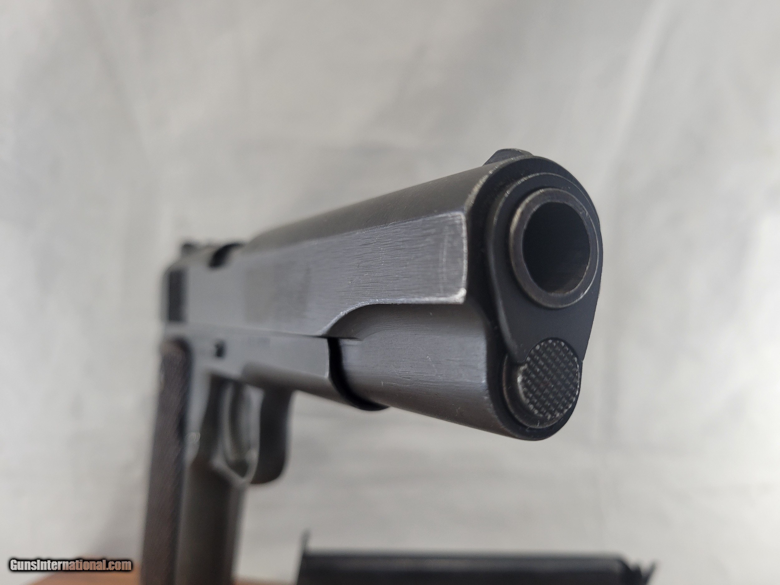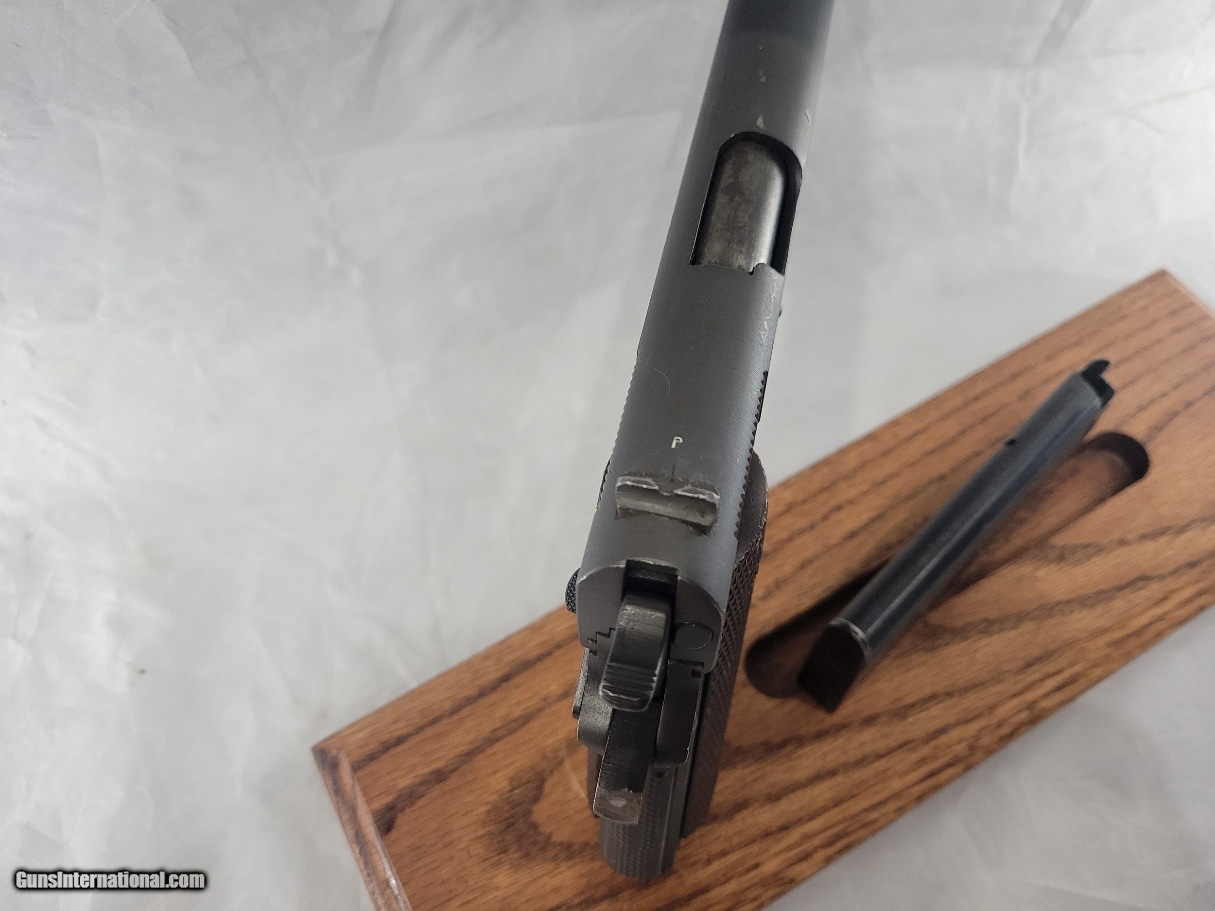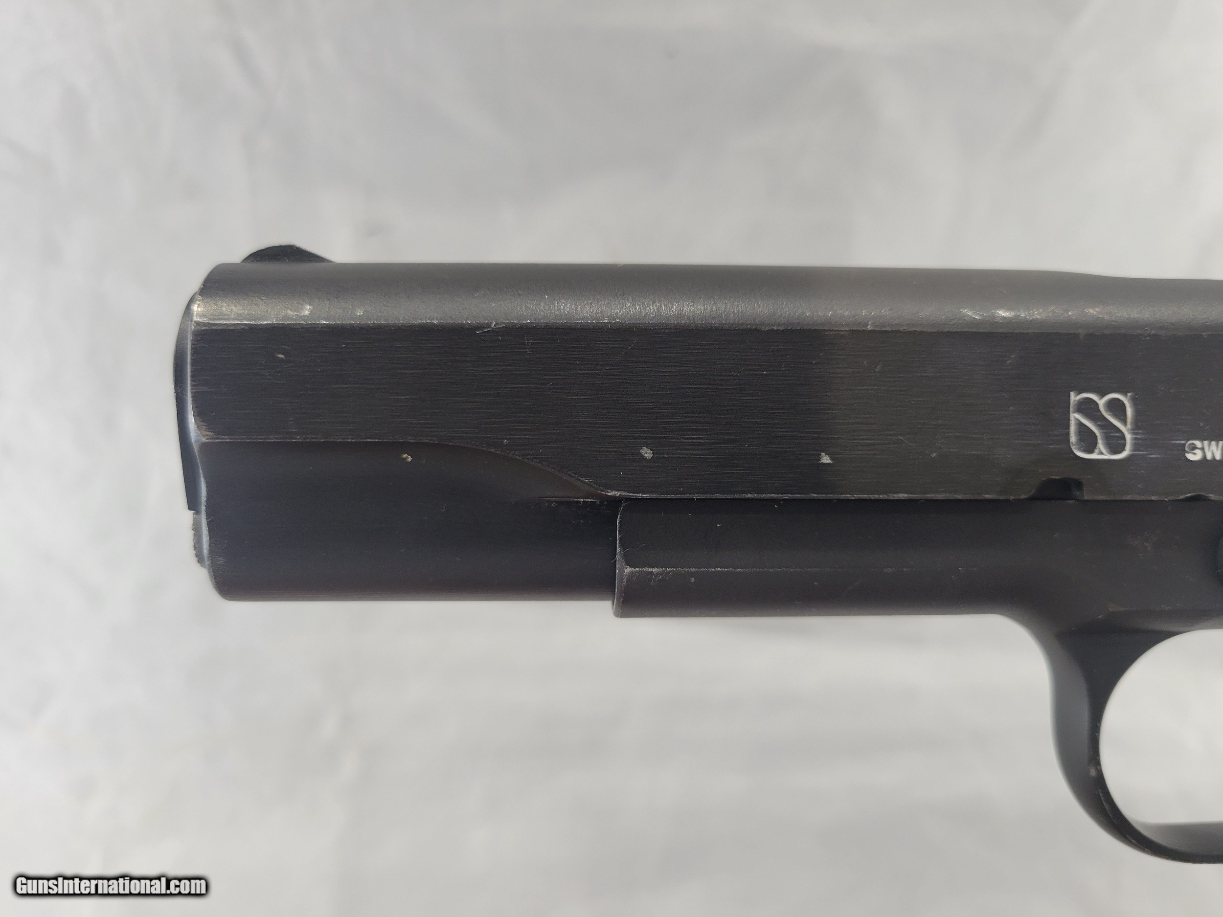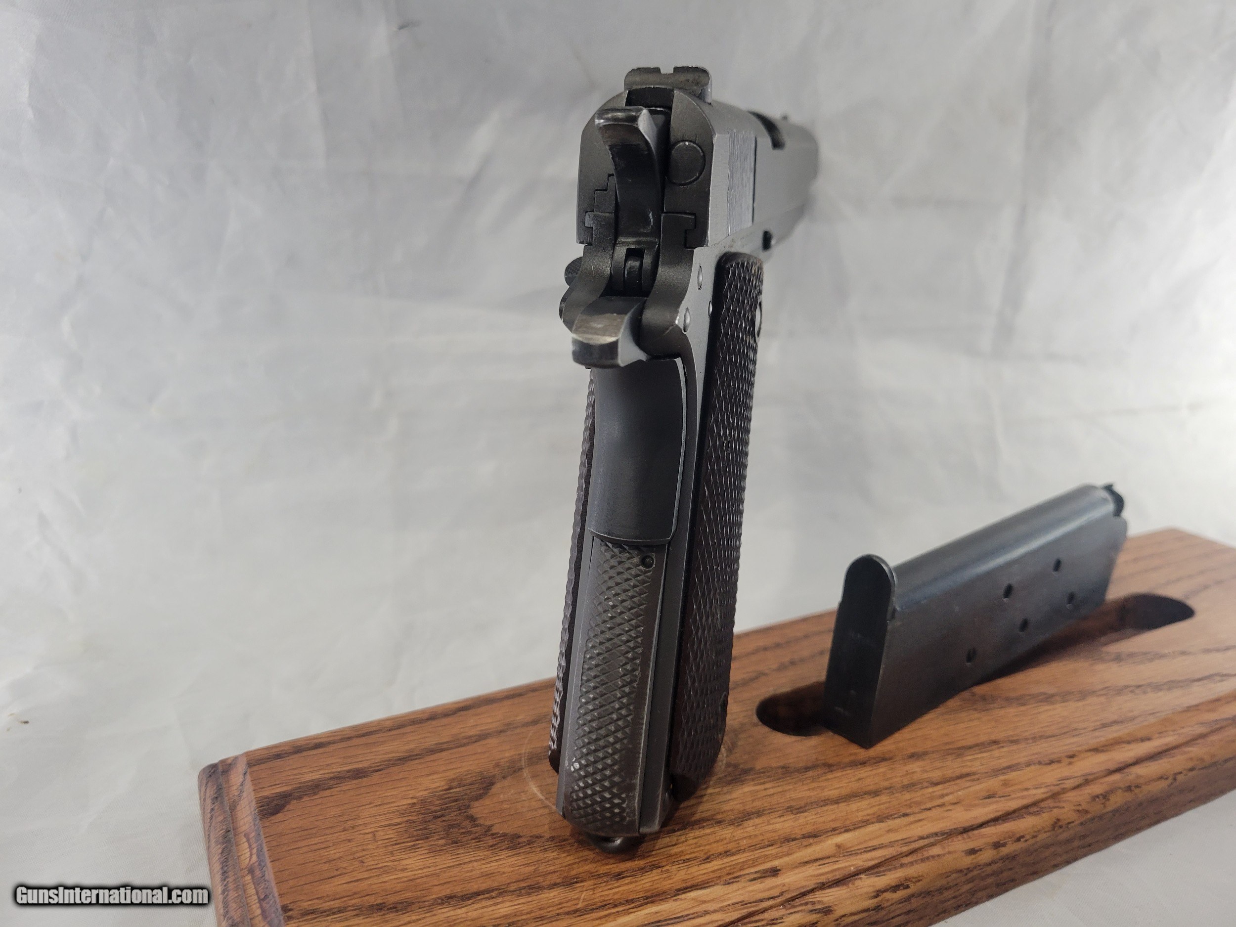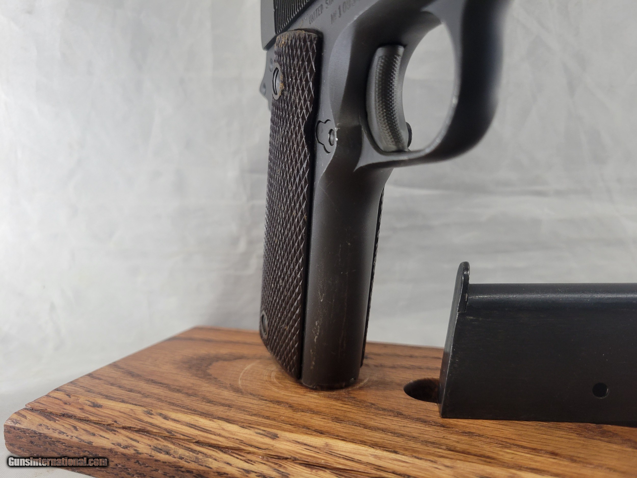 Description: INV. 10883 WOW, UNION SWITCH AND SIGNAL 1911A1, CAL. .45ACP, SER. 1093407. THIS ESTATE G.I. BRING BACK HAS RETAINED ABOUT THE 99%-98% OF THE ARSENAL PARKERIZED FINISH. THE LITTLE LOSS THERE IS, IS DUE TO THE USUAL SHARP EDGE SILVERING. THERE IS NO RUST, SCRATCHES OR RUB MARKS. THE GRIPS ARE THE PROPER SMALL RING TYPE AND ARE IN PERFECT CONDITION AS ARE THE GRIP SCREWS. THE LEFT SIDE OF THE FRAME HAS THE CORRECT "CIRCLE RCD" INSPECTOR'S PROOF AND AND A "P" PROOF**. THE SLIDE RAILS, BOLT FACE AND FED RAMP SHOW LITTLE USE. THE BARREL IS A CORRECT "H S" (HIGH STANDARD). IT IS QUITE BRIGHT WITH SHARP WELL DEFINED RIFLING THIS FAMOUS WARRIOR SEEMS TO FUNCTION PROPERLY. IT COMES WITH ONE CORRECT "L" (M/S. LITTLE MFG.CO.) STAMPED MAGAZINE. IT WOULD BE A REAL FIND FOR ANY INVESTOR/COLLECTOR WHO A WANTS A RARE AMERICAN ICON THAT HELPED WIN THE BIG ONE AT A MODEST PRICE .....$5895.*** **THE WHITE CRAYON IS TO SHOW THAT ALL MARKINGS ARE CORRECT. IT IS HARMLESS AND EASILY REMOVED WITH LIGHTER FLUID AND A BRUSH. WE WILL DO IT ON REQUEST. *** 100% OFTHE GUN'S PRICE IS SATISFACTION GUARANTEED. To purchase this firearm or if you want to request more information contact us at: Email ckguns[at]ymail[dot]com Phone 201-512-0002 Cell 201-575-6838 FAX 201-215-4759 We accept most major credit cards. Prices shown are Discounted 3% for Cash or Check. The buyer must be familiar with all the laws governing the purchase and the ownership of firearms in their own city and state. The Yankee Armorer, Inc is not responsible for any failure to comply with or observe these laws. The Yankee Armorer, Inc will only ship after full payment and receipt of all required documents. Shipping: Add $35.00 for handguns, $45.00 for long guns. New Jersey buyers are subject to a 7% sales tax. The Yankee Armorer, Inc offers a 3 day inspection period with full refund upon return of intact firearm and in the original condition. The Yankee Armorer, Inc offers a no interest lay away program - 25% down; 25% in 30 days; 25% in 60 days; and full payment in 90 days. Any violation of this policy is subject to restocking and forfeiture of all payments. Any variation from this policy must be agreed to in advance. Unshipped Cancelled sales are subject to a 20% restocking fee. Be advised that all firearms sold by The Yankee Armorer, Inc. or the Gun Exchange, LLC (SELLER) are sold as collector’s items. They have not been fired or tested for safety and must be examined by a license gunsmith prior to use. By purchasing any item from the (SELLER), you are agreeing to hold the (SELLER) free from any damages or lawsuits of any nature. Any item left for transfer or storage will be charged to $25.00 per month, per item from the day of its receipt. Any variation from this policy must be agreed to in advance. Store hours 10:00 am to 5:00 pm Tuesday -Saturday. It's always best to call for appointment. Store 201-512-0002, cell 201-575-6838. SOLD Curio/Relic: Yes |