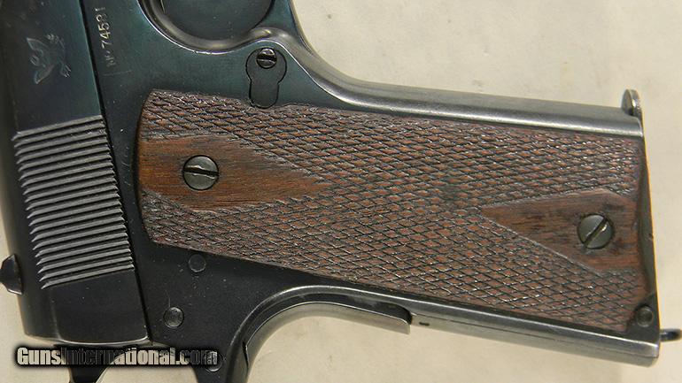 Description: Made in 1914 and 1915. (This pistol was made in 1914, serial number 7458x.) Excellent condition. (If it has been refurbished, none of lettering is smeared or shallow!) Looks great! Not original Springfield magazine. Very good to excellent grips. All correct markings, top and bottom. Nice pistol. SOLD Curio/Relic: Yes |