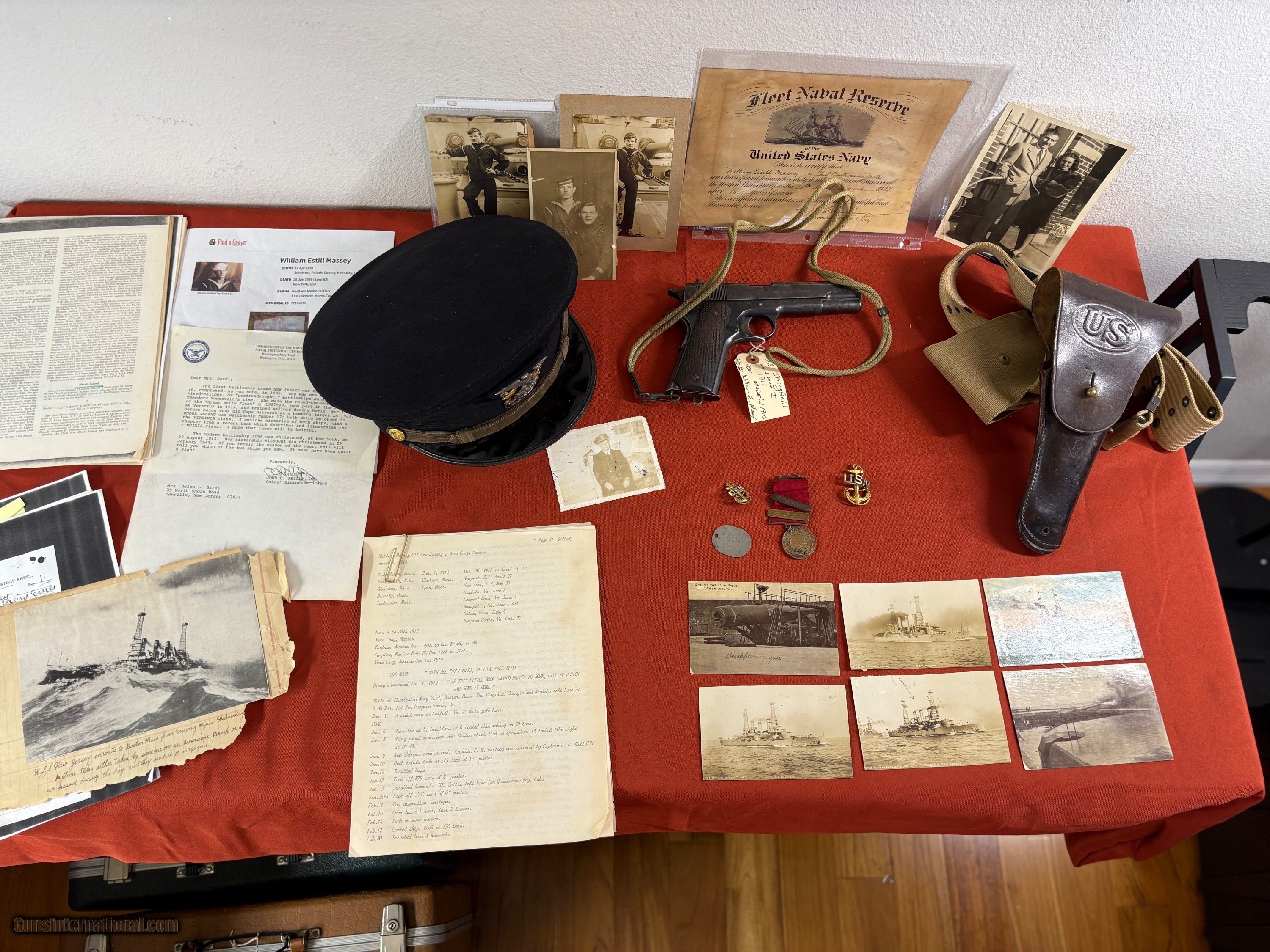 WWI U.S. SPRINGFIELD ARMORY 1911 PISTOL ~ U.S. NAVY ~ WILLIAM E MASSEY ~ NAVY HISTORY GROUPING ~