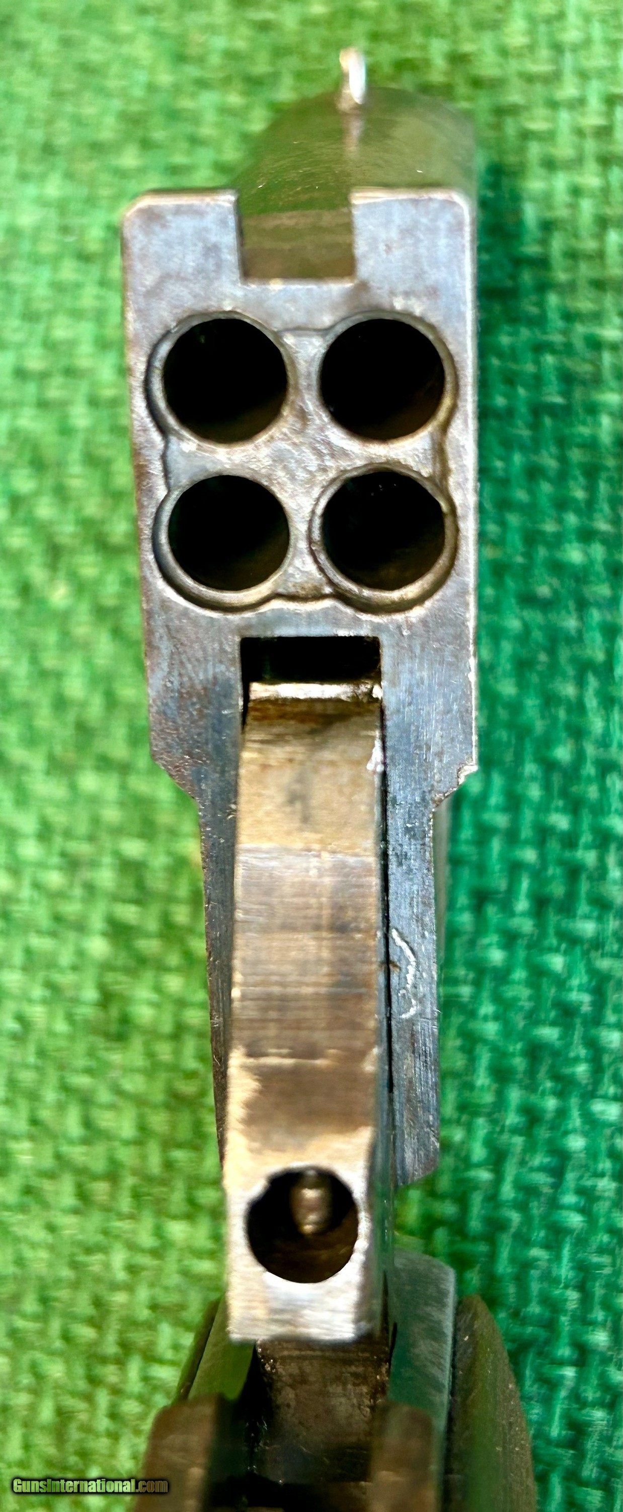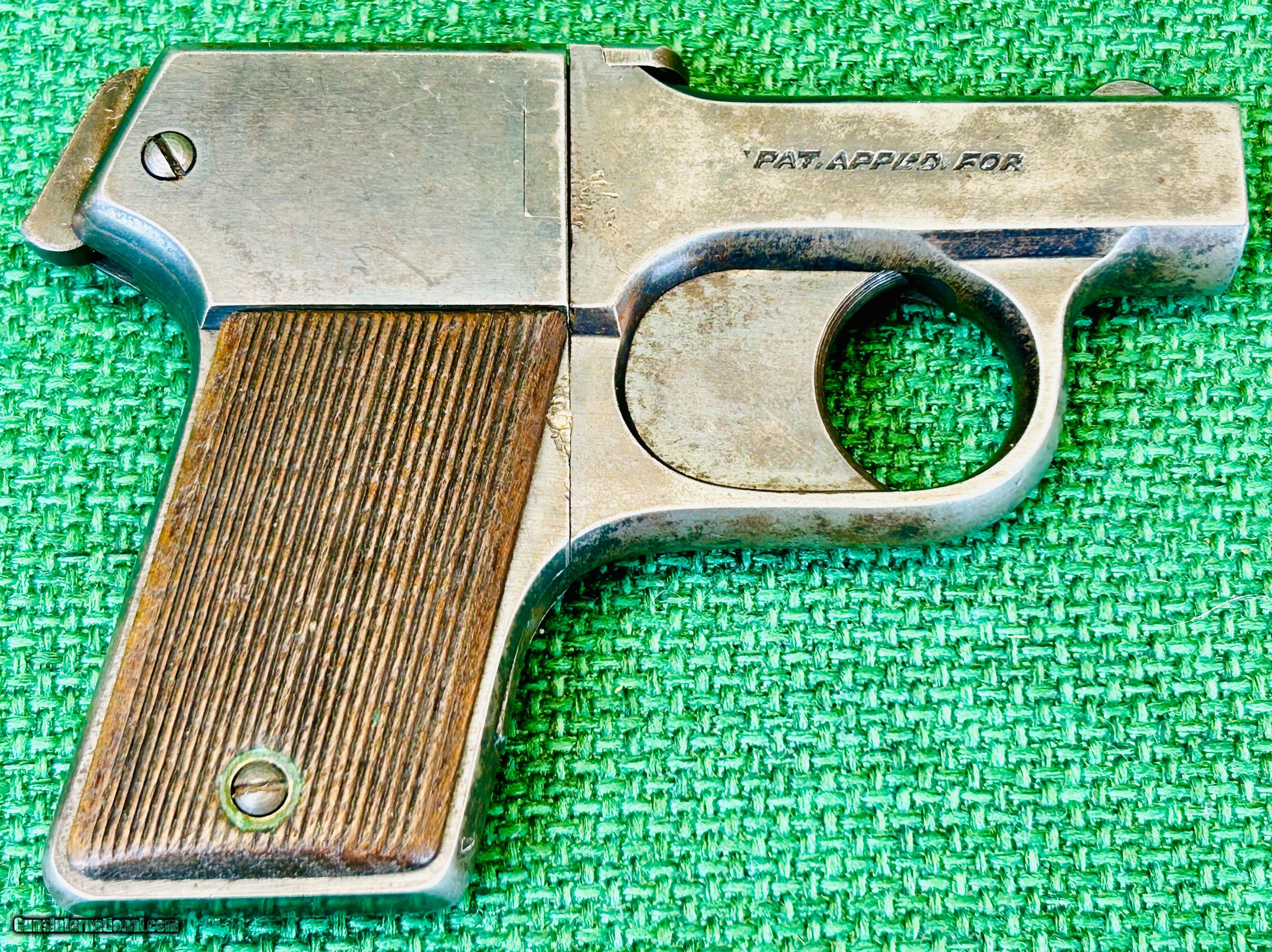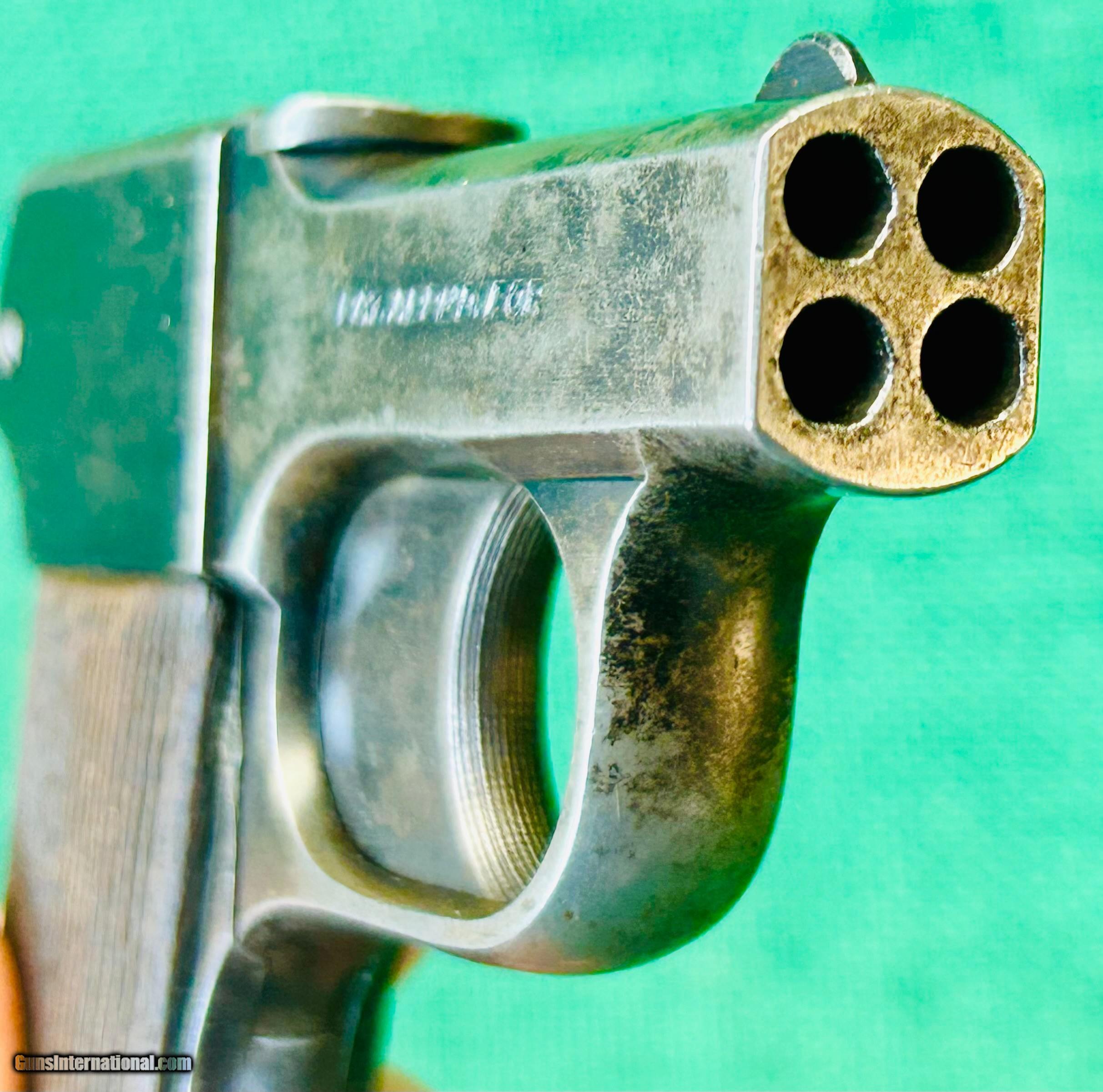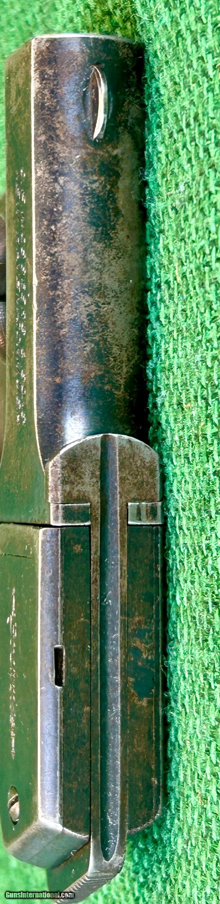 Description: The Mossberg Brownie is a 4-shot, .22 Long Rifle pistol. The pistol has a double-action trigger and a rotating firing pin. Each pull of the trigger cocks and releases the hammer as well as rotating the firing pin to fire each chamber in succession. A top-mounted latch releases the barrel assembly to open forward. We've test fired this weapon, and the receiver locks into position tightly. The firing pin rotates as it should. We've had good shots and strikes on all 4 cylinders. The bores are remarkably clean. Wooden grips are in one piece and in good shape. We accept USPS Money Order, cashier’s check, or credit card for immediate shipping. Please note credit card sales are subject to an additional 3% fee. US shipping only. Shipping costs are actual postage, adult signature required, to your FFL 01 or 03. We will pay the insurance for the amount sold. All items are for sale locally, so make contact as soon as you make your decision. Inquiries will be handled in chronological order. All postings will remain active until funds are received. SOLD Curio/Relic: Yes Handgun Caliber: .22 Long Rifle Manufacturer: Mossberg Model: Brownie |