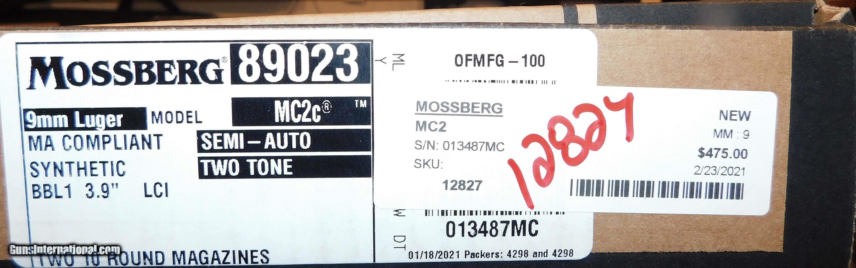 Description: MOSSBERG MC2C IN 9MM CAL., WITH 3 .9" BARREL. COLOR TWO TONE. CONDITION 98% LIKE NEW. SERIAL NUMBER 013487MC. MOSSBERG MODEL MC2C IN 9MM CALIBER, BRIGHT SHINY BORE, GRIPS EXCELLENT, COMES WITH BOX AND PAPERS, TWO FACTORY MAGAZINES, 98% LIKE NEW OVERALL CONDITION, OUR STOCK # D3049 SOLD |
