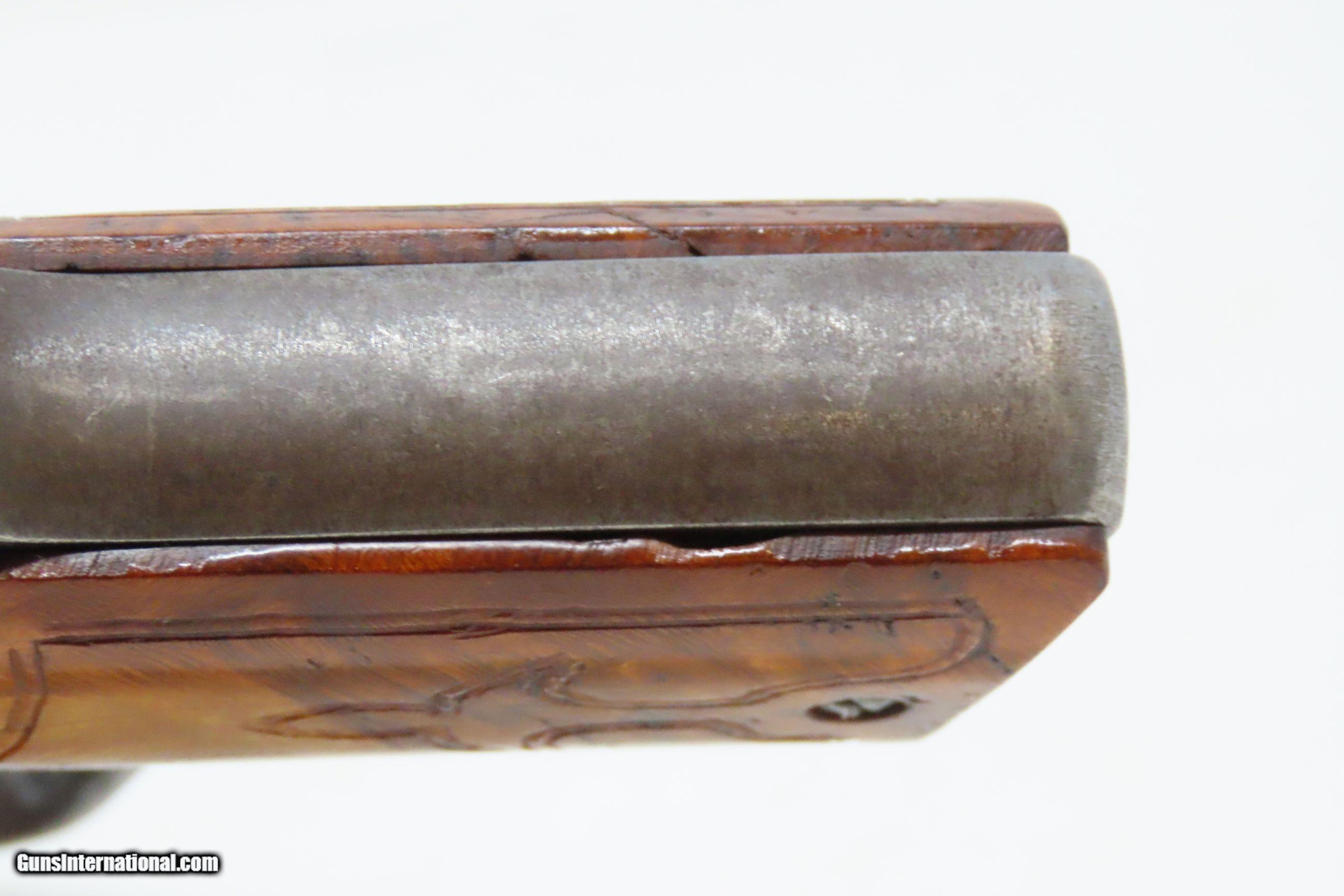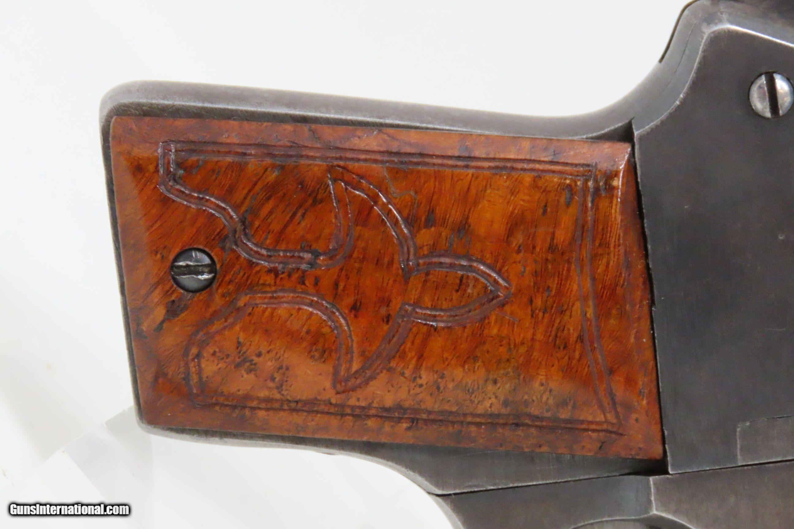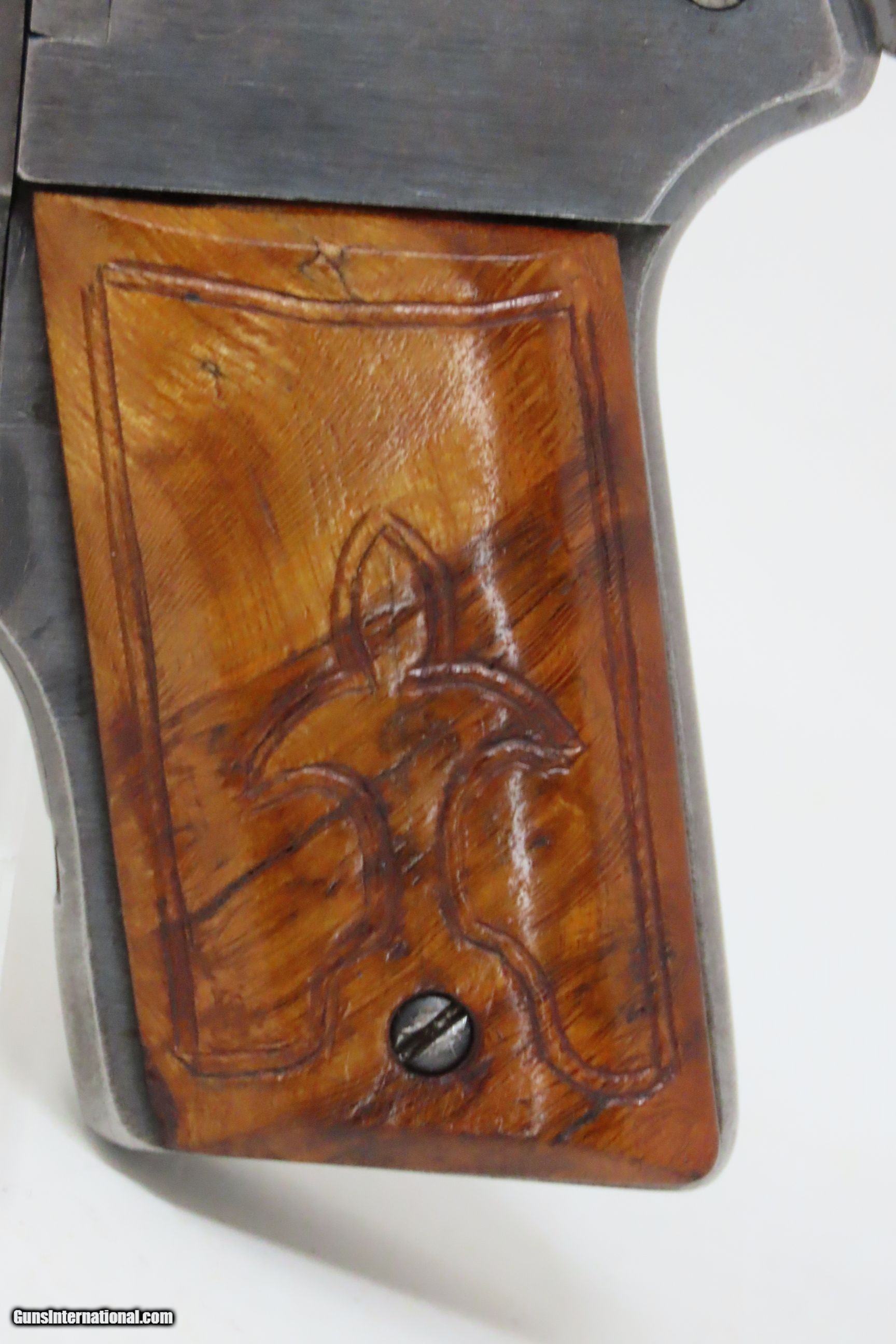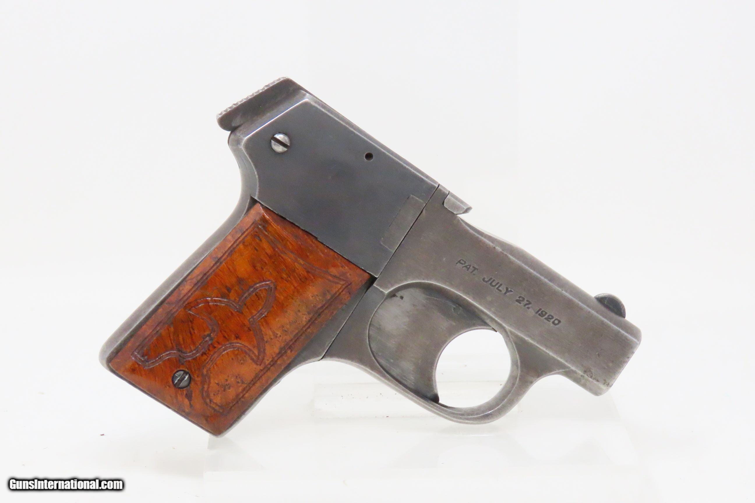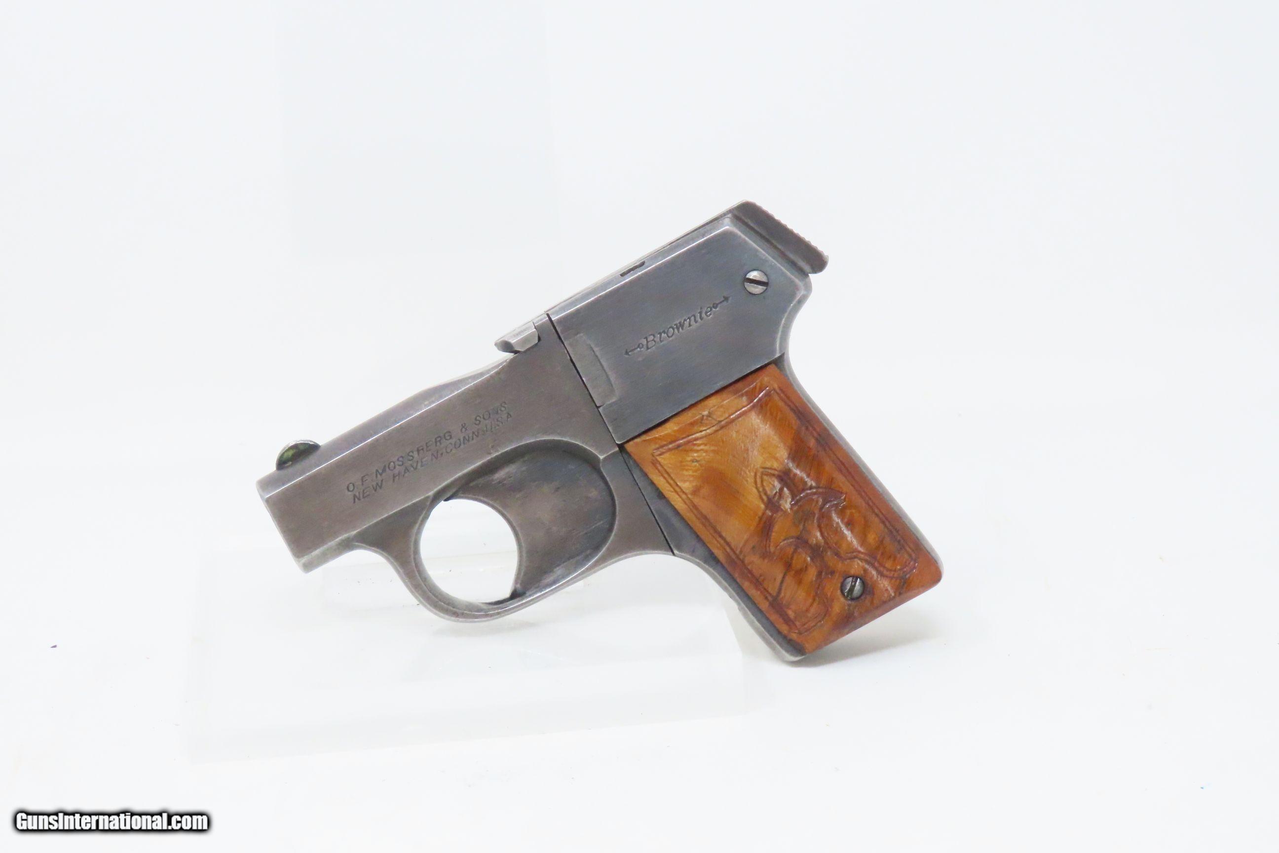 Description: Nice MOSSBERG “BROWNIE” Four Barrel .22 Caliber Rimfire DERINGER Pistol C&R O.F. Mossberg’s FIRST GUN/PISTOL Produced Here we present a C&R Mossberg “Brownie” Four-Barrel .22 Caliber Rimfire Deringer Pistol, made circa 1919 to 1932 in New Haven, Connecticut. First off, when people hear the name Mossberg, must gun enthusiasts think shotgun and leave it at that. Little do people realize that O.F. Mossberg and sons actually did make a pistol, and that is what we have here. The Mossberg Brownie is a four shot, .22 Long Rifle pistol, similar to a deringer or pepperbox, produced by O.F. Mossberg & Sons from 1919 to 1932. The Brownie is based on an earlier pistol patented and licensed to the Shattuck Company by Oscar Mossberg where he worked as a manager. After working for Stevens and Marlin-Rockwell, Mossberg and his two sons started a new firearms company of their own in 1919. The new company needed to develop a product that was simple and could turn a quick profit, so Mossberg turned to a four-barreled .22 caliber handgun that he designed while working for Shattuck. With Mossberg holding the patent, he reworked the gun, made it a more powerful .22 Caliber Long Rifle, and named his gun with a new patent number the “Brownie”. The gun was introduced by the new O.F. Mossberg and Sons Company for just $5 in 1920 and was an instant success as a concealed carry pistol. Being cheaper that a small Colt or Browning vest gun, the “Brownie” found a niche market and earned a solid reputation. The overall condition is good. Strong action with the firing pin rotating to all positions. Good bores. Sharp markings. Both grips are good with average handling wear. Numbers match. This firearm is classified as a Curio & Relic. Barrels are 2-1/2 inches. Caliber: .22 Long Rifle Rimfire Overall condition as seen in photos . Very Fast. Very Safe. FREE SHIPPING. Will need to be sent to your local FFL or C&R licensee. This firearm is classified as a Curio & Relic. Guaranteed AUTHENTIC & Includes CERTIFICATE OF AUTHENTICITY. ancestryguns $1050 #230238 SOLD Curio/Relic: Yes |