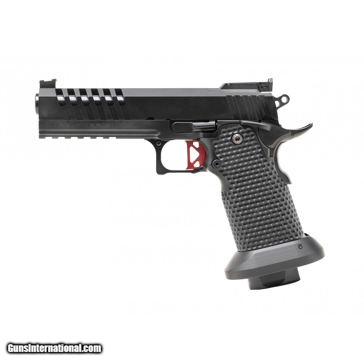 Description: " Competition model with large magwell and ambi safety. All black finish and red trigger with target sights and is optic ready for a Red Dot optic of your choice. New. SOLD |