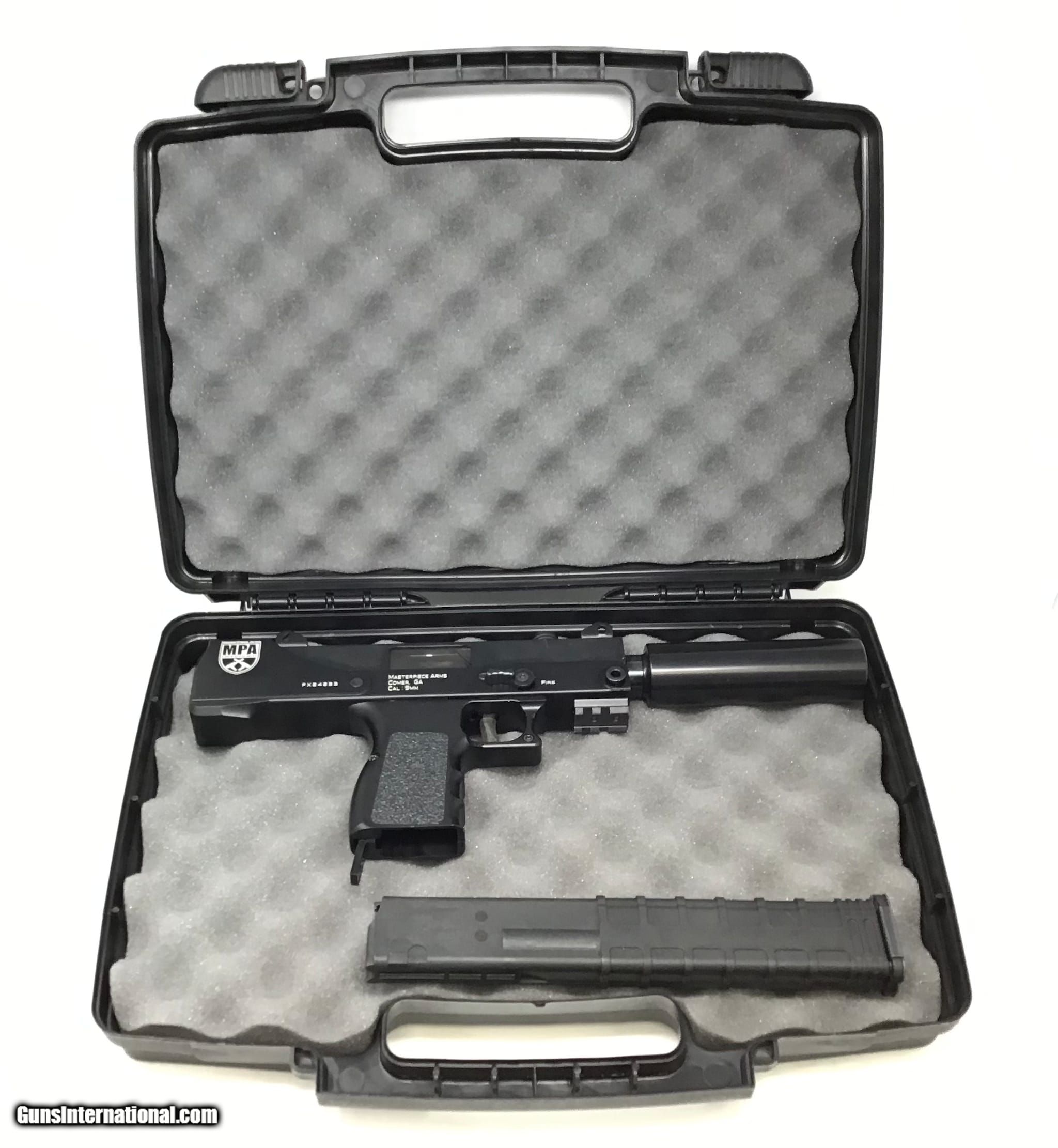 Description: Guns Listing ID: 539181 Brutal and Unusual design. MasterPiece Arms strives for total innovation. This Defender 9mm handgun is the traditional top cocking model with a 5.5\" threaded barrel, a lever safety selector, 30-round magazine, and a Cerakote finish. It comes with a polymer carrying case SOLD Manufacturer: MASTERPIECE ARMS Model: 30T Caliber Info: 9MM LUGER (9X19 PARA) Condition: Used - Non-Certified Barrels: 6" barrel |