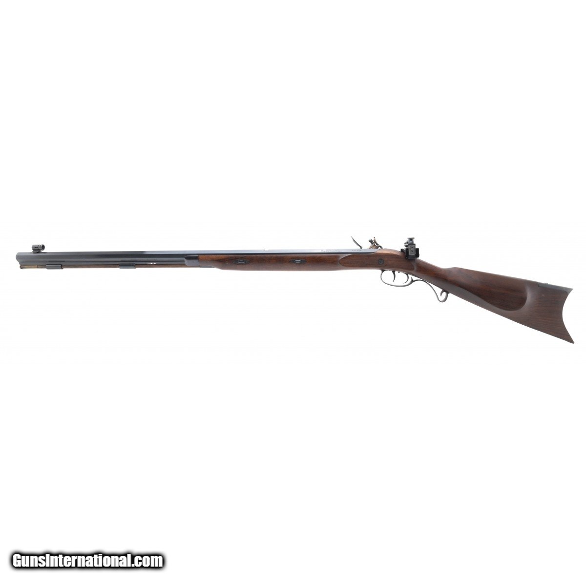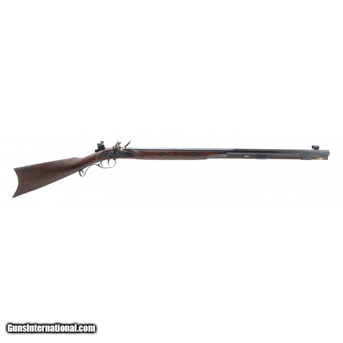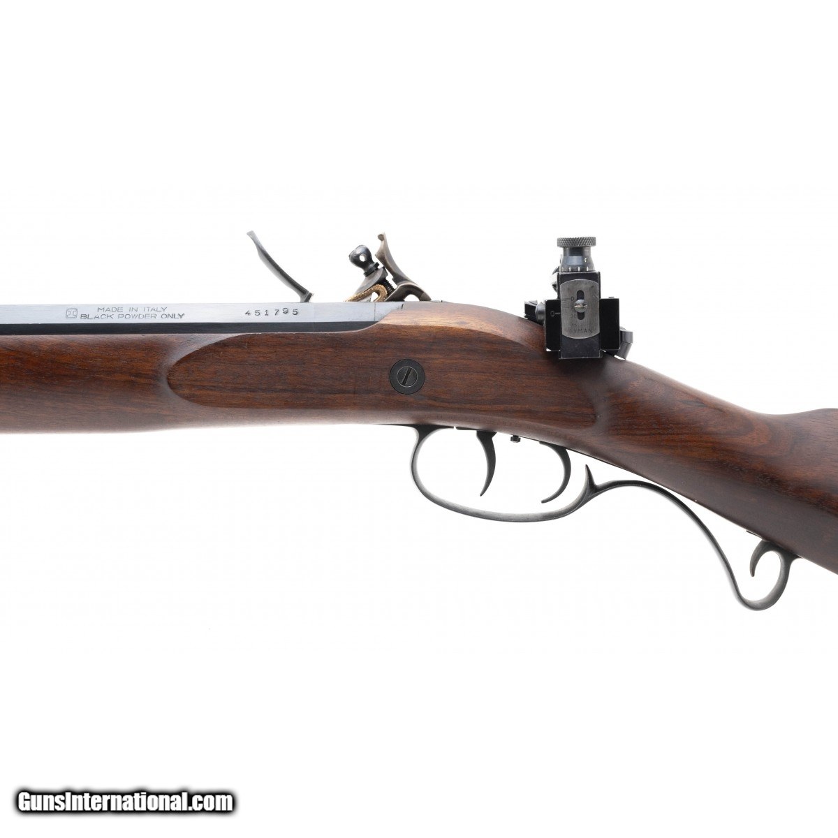 Italian made modern flintlock rifle with 32.75"" octagonal barrel. The rear sight has a micrometer adjustable rear tang. The front sight is a hooded and is a bullseye on a post. The side plate is case colored and has a deep scroll floral engraving. Has double set trigger with adjustable trigger screw. Near perfect condition.