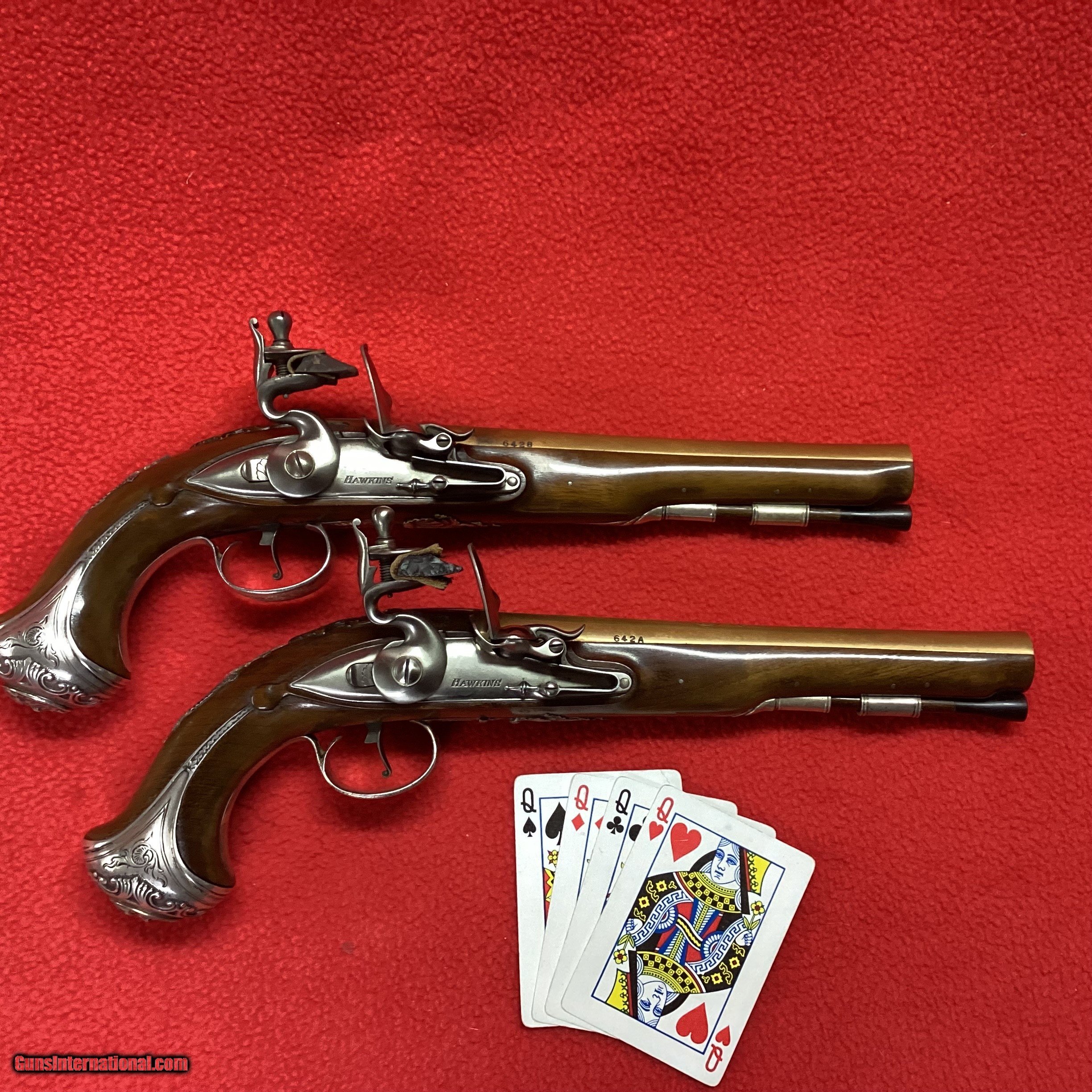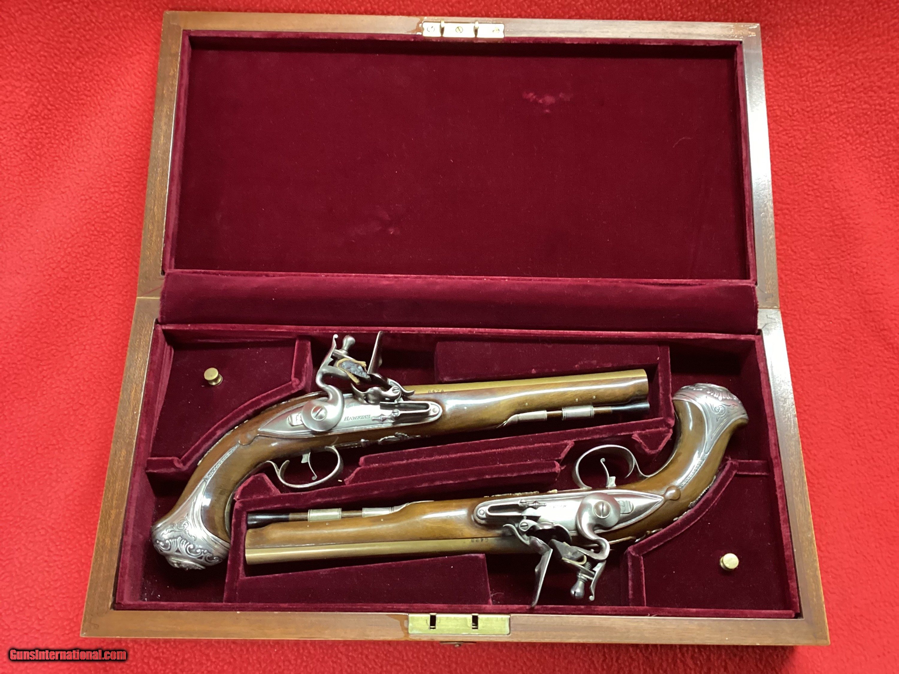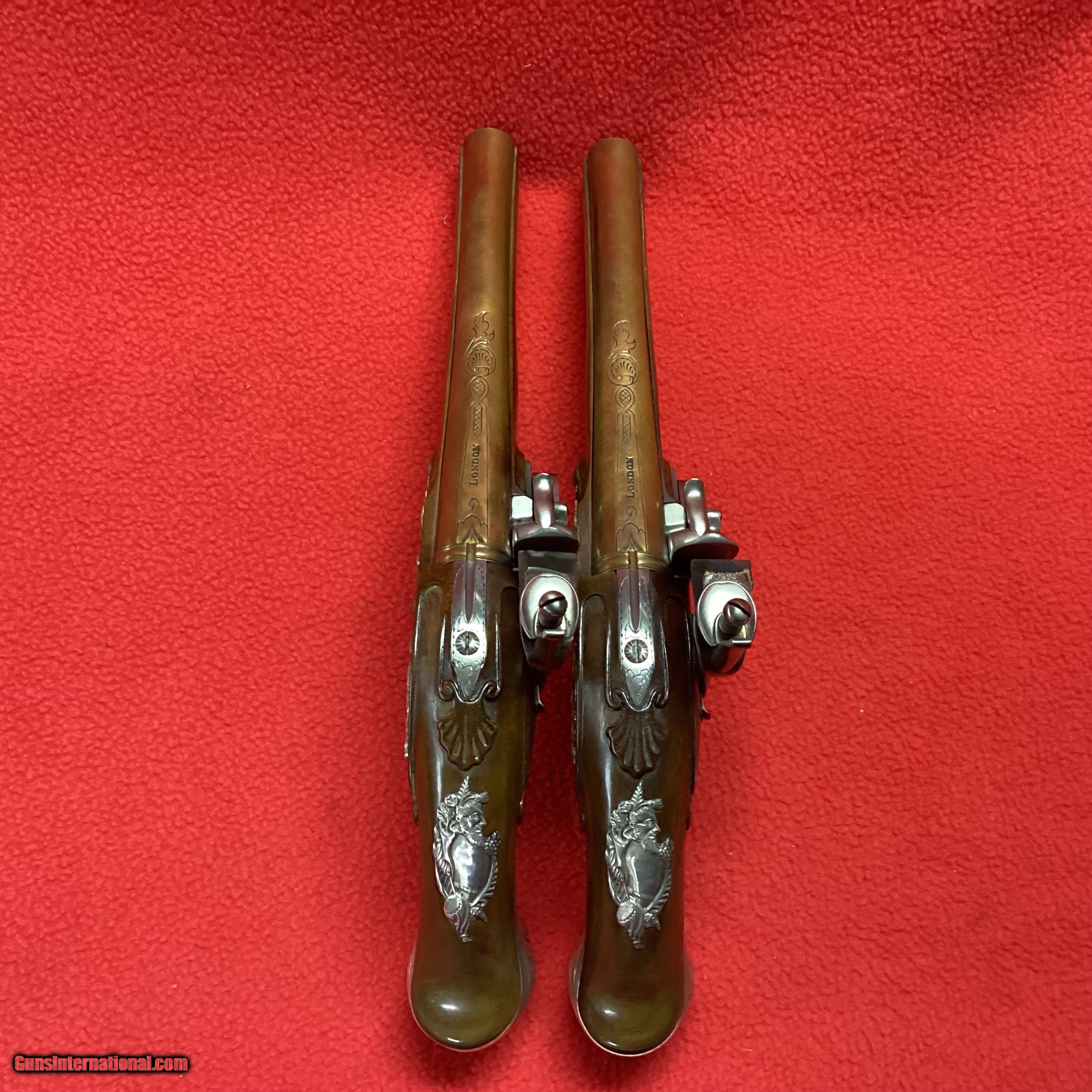 Description: FORYOUR VIEWING FROM AN ESTATE IS A PAIR OF GEORGE WASHINGTON SILVER MOUNTED FLINT LOCK PISTOLS IN A PRESINTATION CASE. IT LOOKS LIKE 58 CAL. MADE IN 1976 FOR THE US HISTORICAL SOCIETY. THEY ONLY MADE 975 PAIRS OF THESE IN A WOOD PRESENTATION CASE. THEY ARE LIKE NEW IN THERE WOOD CASE. THE WORKMANSHIP IS OUTSTANDING ON THIS PAIR. THE ORIGINAL PAPER WORK IS MISSING FOR THIS SET. THESE FLINTLOCK BLACK POWDER ONLY PISTOLS CAN BE SHIPPED TO YOU DIRECT.. NOTE SHIPPING AND INS. EXTRA CALL OR EMAIL FOR MORE INFO ETC. THANKS FOR LOOKING ASK ABOUT MY EZ PAY PLAN SOLD |
