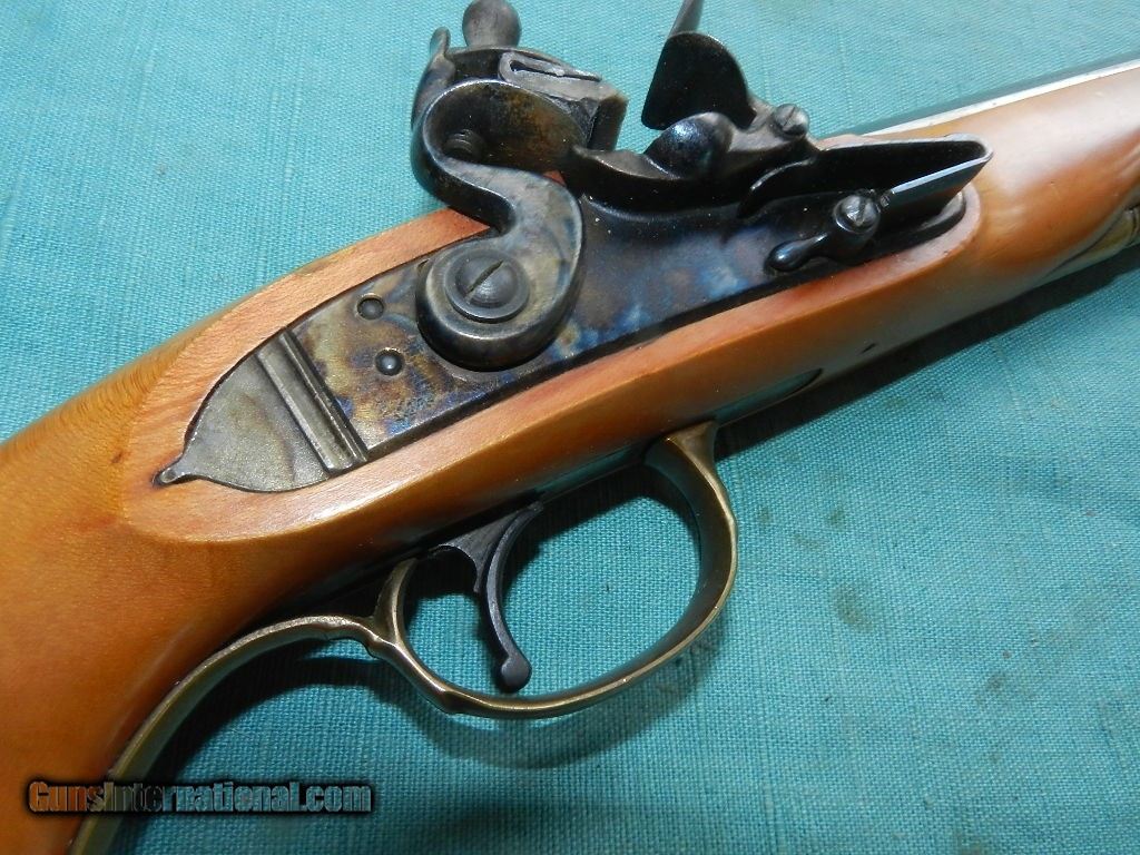 Description: <<<<SOLD>>>>>>A very good qulaity, excpetional workmanship on thos Italian import .44cal black powder flintlock pistol with a 10: octagonal bright blued barrel with a clean, blued , shiny , rifled bore. The hardwood birch stock is very clean with no issues and the fit is so tight and professionally gone , much higher quality than the early Spanosh made black powder filntlocks. Action is very good and the even the ock and hammer have very strong vivid color case haredning.Front and rear sights are well fitted and are brass.Top of barrel is stamped PENNSYLVANIA .44 CAL. and the left side has the following marknigs: AA which means made in 1975, and a Gardone proof house marking, and also a black powder proof mark! The ra,-rod is oak with a brass tip.This very fine model has a escutcheon mounted side plate, and wedge. When buying a gun always have it examined by a competent gunsmith before shooting. To buy a gun from me you must get a direct email for me, with details, and shipping cost. We don’t have a web site .I prefer money orders or a check. Item ships when funds come in. I try to keep guns affordable, which means I make less money than most dealers. You won’t get altitude sickness, or nose bleed, with my prices! I consistently have the best selection of older guns If you attempt to buy, you must still contact us for details . Best to email to buy. Sometimes a local person can stop buy and purchase before the gun is removed. Sometimes not home to get calls. Some guns are required shipment to a gun dealer near you for a transfer to you when it arrives. Otherwise many older or black powder guns ship to your door. With the widest selection of older guns at great prices, We don’t have a store, and sell on the internet only. I’m easy to get along with. Thank You. SOLD |