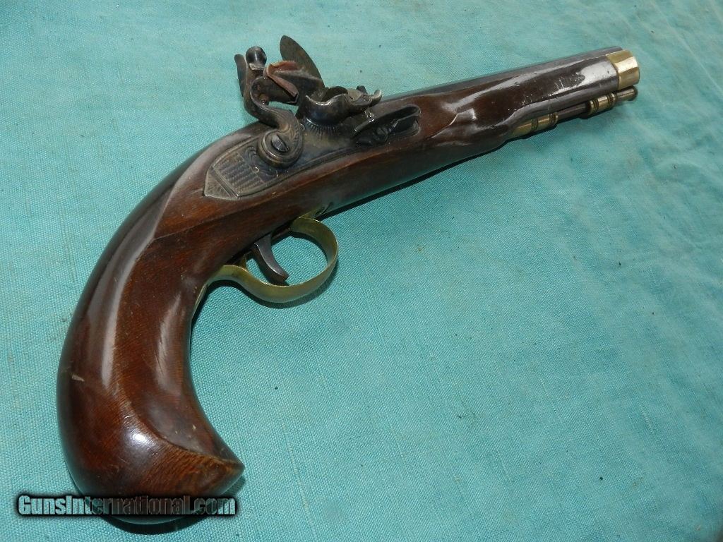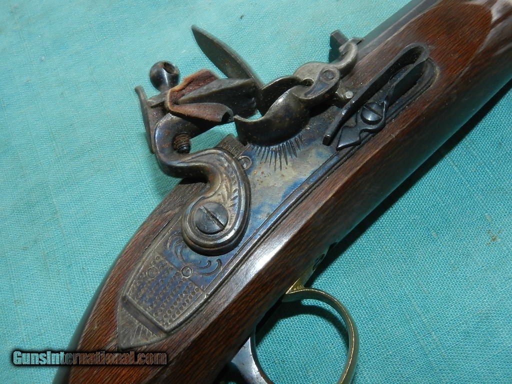 Description: <<<SOLD>>>> LONG .45 CAL FLINTLOCK PISTOL, with a 10" full blued octagonal barrel with excellent bore, and blue is about 99%, while the hammer, lockplate and trigger exhibit strong color case coloring. Earlier gun in .45 cal, and has a full length hardwood stock in excellent condition, with no issues. Comes with a wood ram-rod, with a brass tip.Lock works well, and gives good spark. Appears to have not been used much if at all!Check my inventory of rare grips, unusual gun parts, barrels and holsters. Shipping may be higher than stated as shippers raise their prices twice year without notice! When buying a gun always have it examined by a competent gunsmith before shooting. To buy a gun from me you must get a direct email for me, with details, and shipping cost. We don’t have a web site .I prefer money orders or a check. Item ships when funds come in. If you can only pay with a card let me know. I try to keep guns affordable, which means I make less money than most dealers. You won’t get altitude sickness, or nose bleed, with my prices! I consistently have the best selection of older guns If you attempt to buy, you must still contact us for details . Best to email to buy. Sometimes a local person can stop buy and purchase before the gun is removed. Sometimes not home to get calls. Some guns are required shipment to a gun dealer near you for a transfer to you when it arrives. Otherwise many older or black powder guns ship to your door. With the widest selection of older guns at great prices, We don’t have a store, and sell on the internet only. I’m easy to get along with. Thank You. SOLD Antique: Yes |