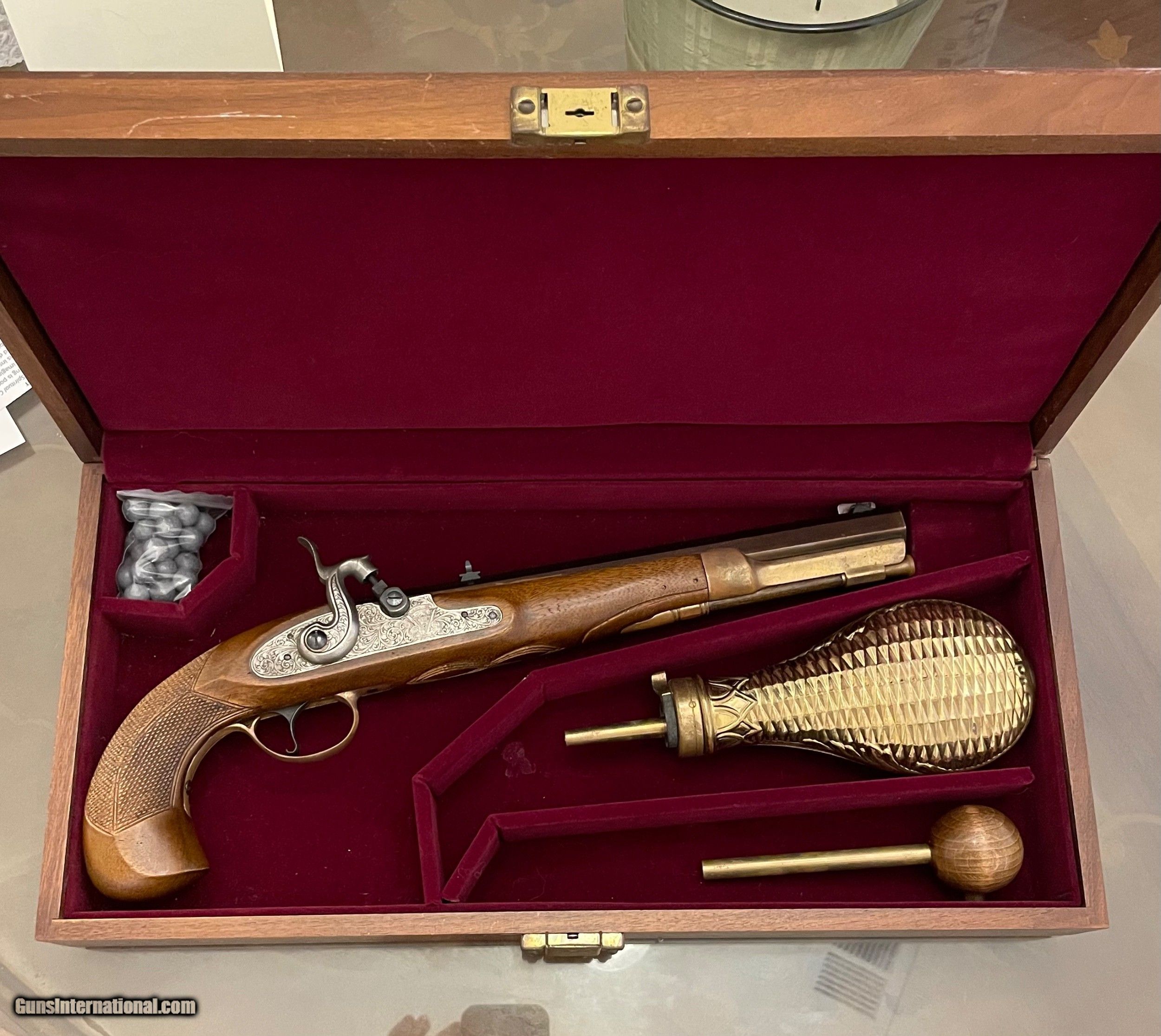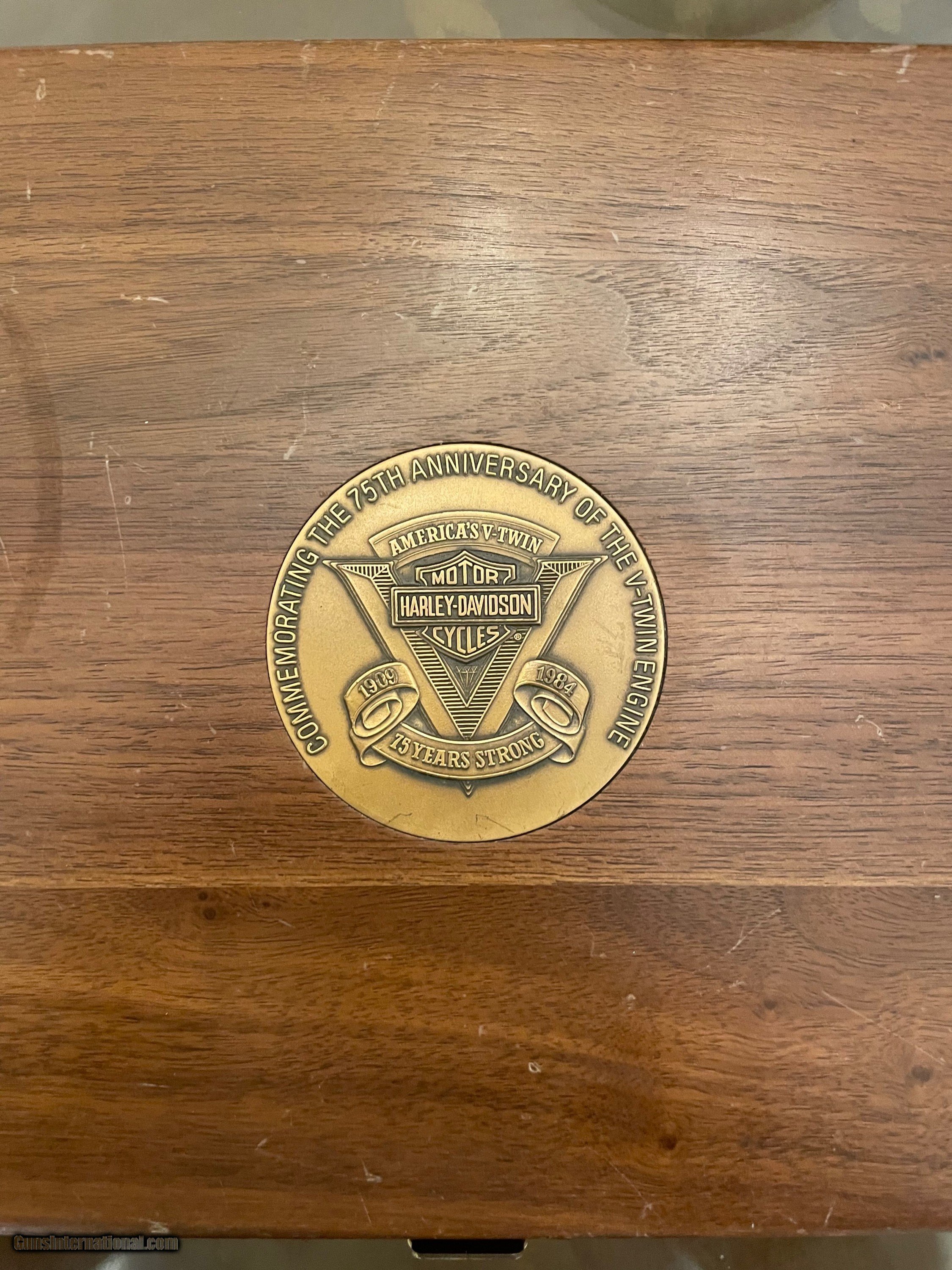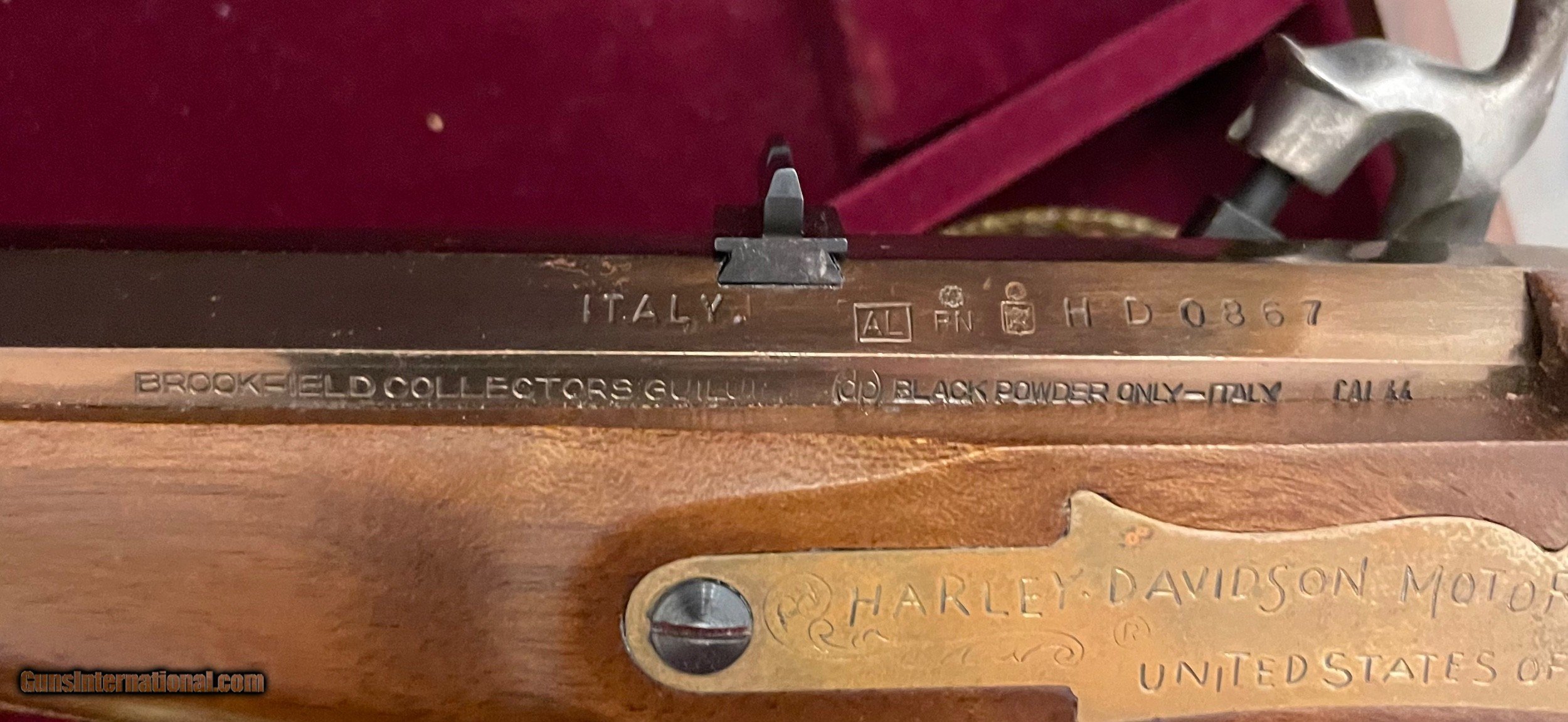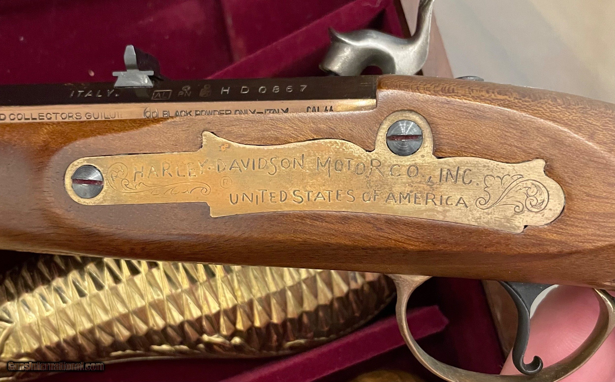 Description: This is a 1983 Harley Davidson Flintlock pistol that was made to celebrate the 75th anniversary of the v-twin engine. These were commissioned in Italy and 1000 of them were made with only 500 being made with these wooden boxes. The wood is all hand engraved. This gun shoots .44 cal lead balls and has never been shot. It is number 867 of 1000. If you have any concerns, don't hesitate to ask. I am looking for 1200 or best offer. Thanks. SOLD Handgun Caliber: .44 Manufacturer: Harley Davidson Model: .44 Cal Serial Number: HD0867 Condition: New Manufacture Date: 1983 |