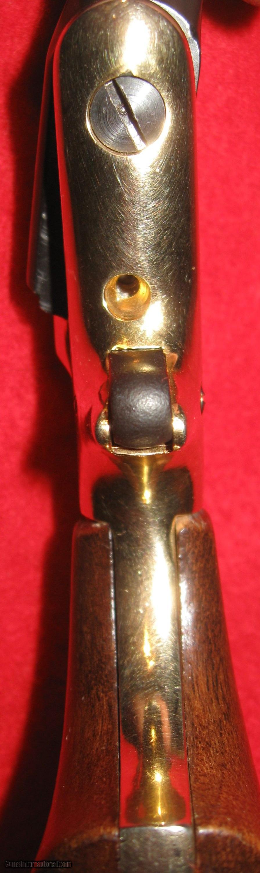 Description: sale pending joe p-THESE 31 CALIBER BUTLER DERRINGERS ARE THE SAME MODEL. THE BLACK FRAME IS FULLY FUNCTIONAL AND READY TO SHOOT. IT IS IN VERY GOOD CONDITION. ALSO INCLUDED IS A BRASS FRAME MODEL THAT IS MISSING THE BARREL LOCKING PARTS. THE BARREL IS NOT LOCKED TO THE FRAME AND SWIVELS FREELY. THE NIPPLE ALSO LOOKS PLUGGED. THE FRAME WOULD INTERCHANGE WITH THE OTHER BLACK FRAME IF YOU WANTED TO USE THE BRASS ONE. IT WOULD ALSO GIVE YOU A SPARE BARREL OR YOU COULD ORDER THE PARTS AND REPAIR IT. SHIPPING IS $7.20 DIRECT TO YOU USPS PRIORITY MAIL. PROOF OF 18 YEARS OF AGE REQUIRED FOR PURCHASE SOLD Manufacturer: BUTLER Model: DERRINGER Caliber Info: 31 BLACK POWDER Bore: SMOOTH Condition: VERY GOOD Metal Condition: VERY GOOD Wood Condition: GOOD Bore Condition: VERY GOOD Barrel Type: 2 1/2" ROUND Action: SINGLE Finish: BLACK & POLISHED BRASS Sights: IRON FRONT |