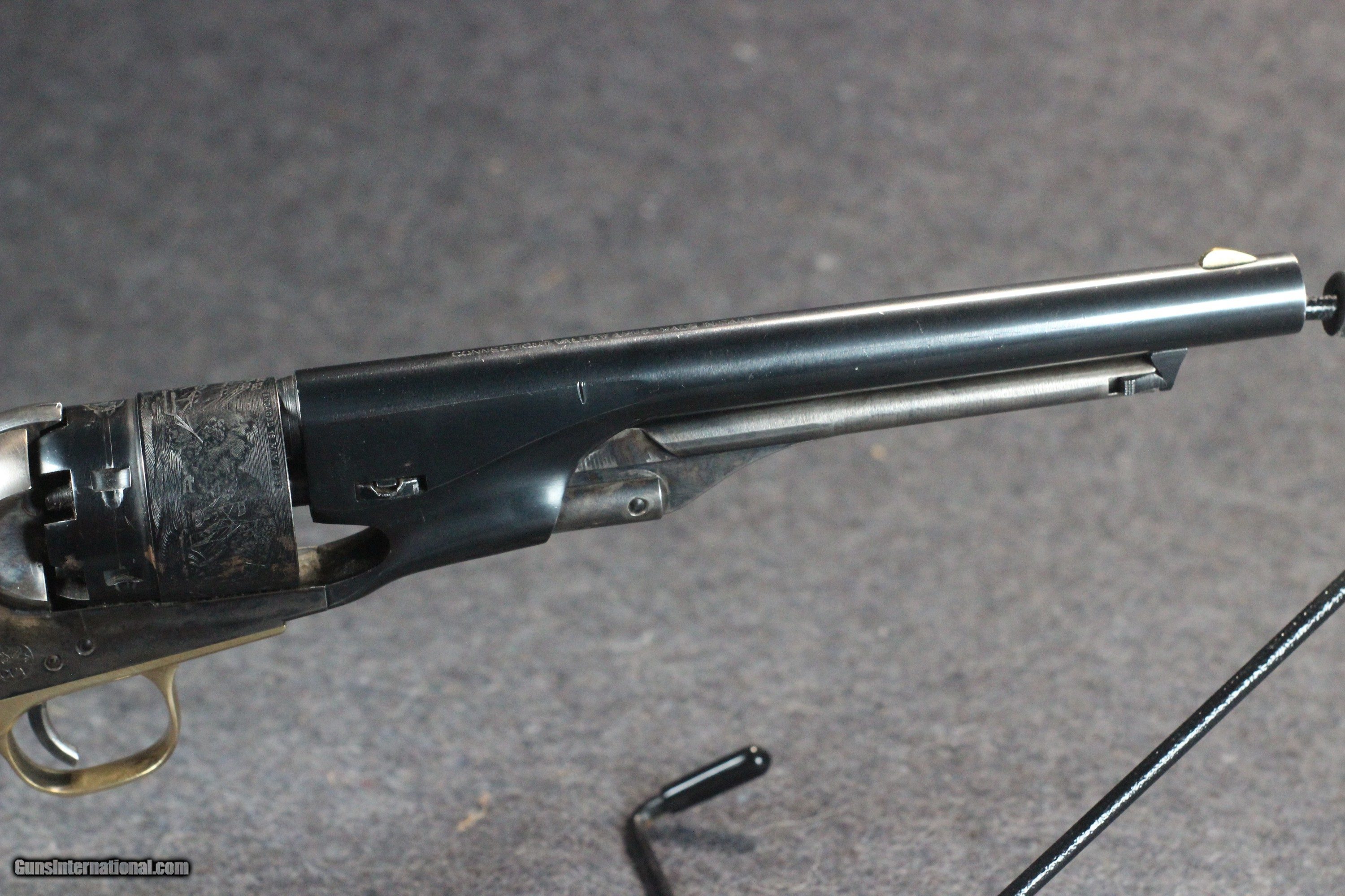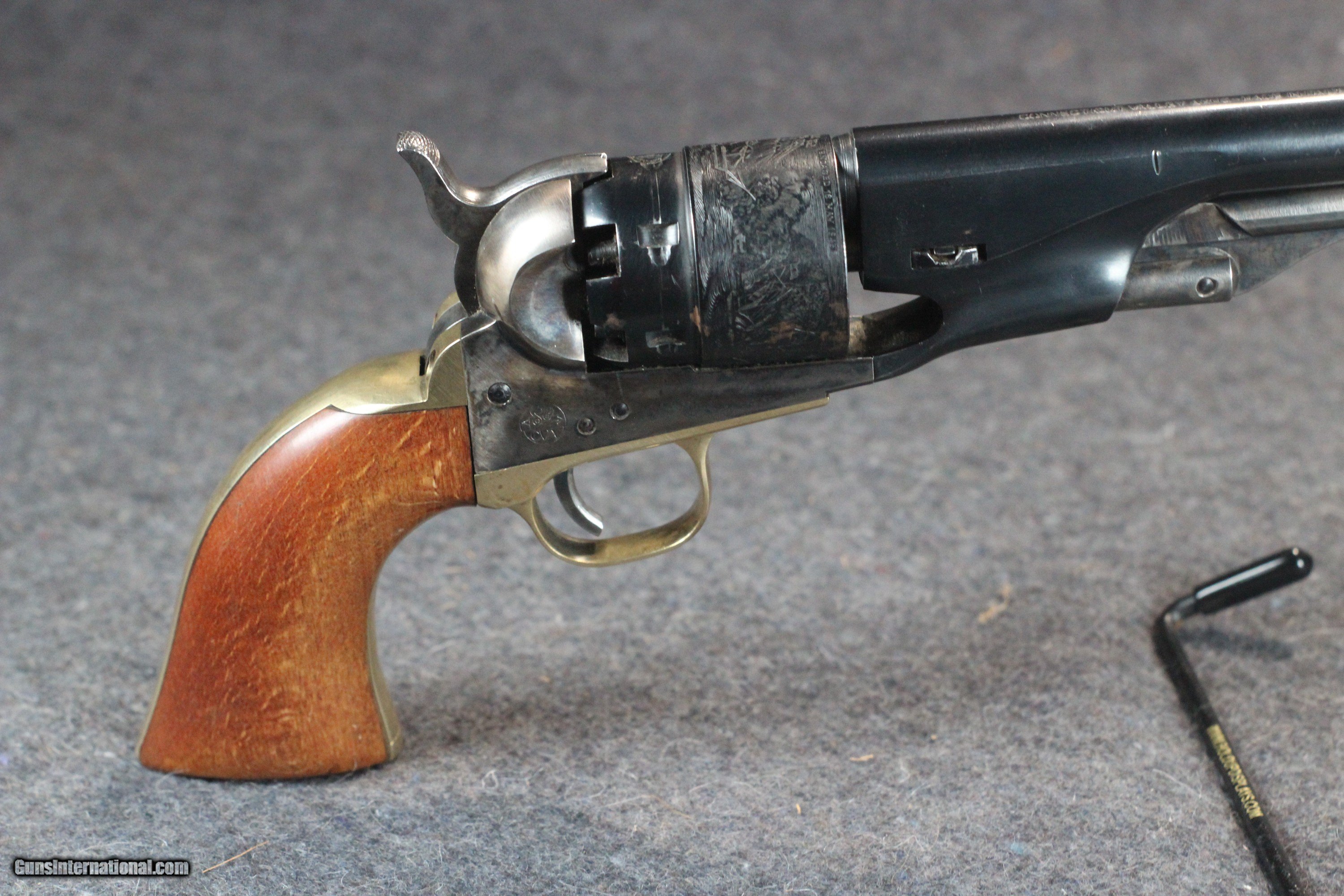 Description: Armi San Marco Model 1860 Army percussion revolver in 44 caliber. Round barrel measures 8" in length with a mostly bright, strong very good bore Beautiful gun ready to be yours! +$30 shipping SOLD |
