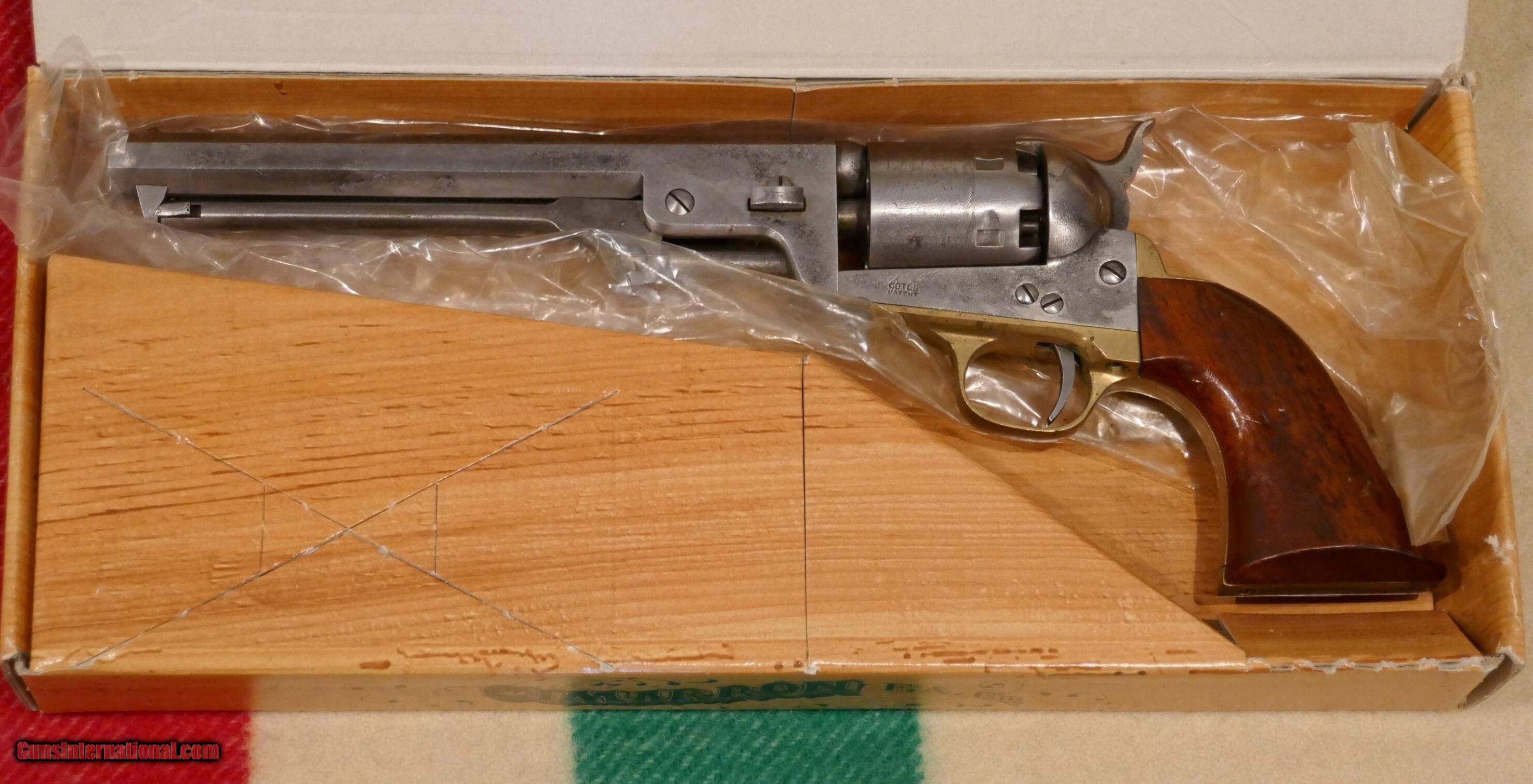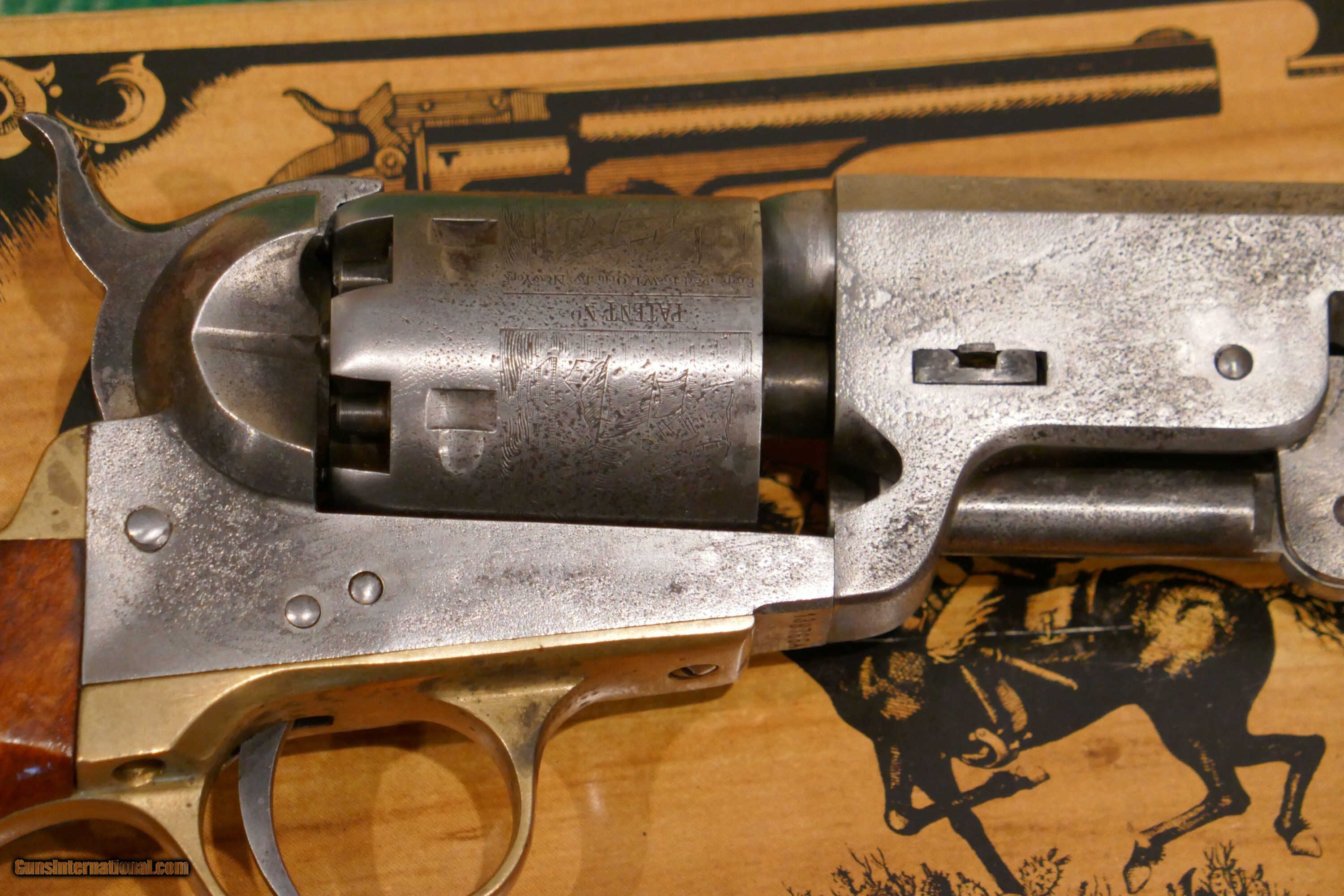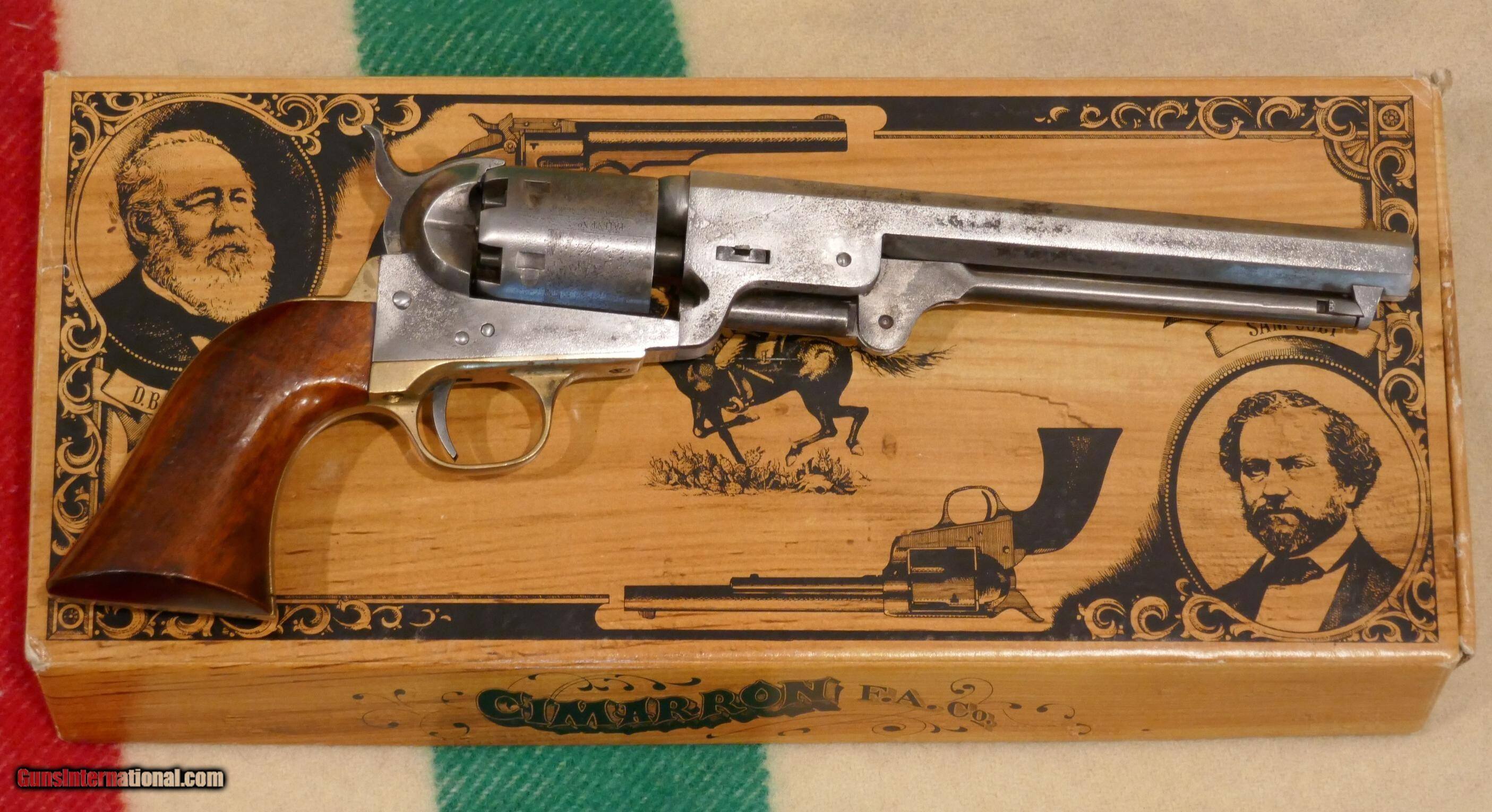 NIB Cimarron Firearms copy of the 1851 Colt in .36 cal. Made by Uberti and factory aged. Very unusual pistol with faux Colt address and patent stamp.