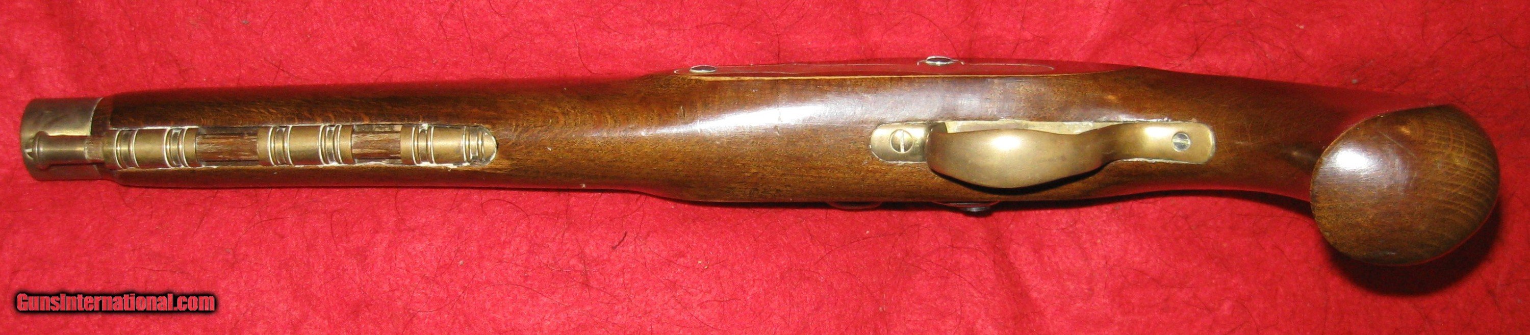 Description: sale pending David m- 2/3/25- 10 day hold-THIS EUROARMS REPLICA PERCUSSION PISTOL IS THE "KENTUCKIAN" MODEL. IT IS SERIAL #3882 AND IS STAMPED CAL 44 BLACK POWDER ONLY ON THE BARREL. WITH THE EXCEPTION OF SOME STOCK DINGS (SEE PICTURES), IT IS IN EXCELLENT MECHANICAL CONDITION. THE BORE IS IN EXCELLENT CONDITION. THE NIPPLE REMOVES EASILY, HAS BEEN ANTI-SIEZED AND REINSTALLED. THE NIPPLE AND THE BORE LOOK UNFIRED. THE HAMMER AND LOCK ARE COLOR CASED AND THE FURNITURE IS BRASS. IT COMES WITH THE PICTURED HOLSTER. PROOF OF 21 YEARS OF AGE REQUIRED FOR PURCHASE. SHIPPING IS $25 USPS PRIORITY MAIL DIRECT. SOLD Handgun Caliber: .44 Manufacturer: EUROARMS Model: KENTUCKIAN Serial Number: 3882 Barrel Length: 9 1/2 Condition: VERY GOOD Metal Condition: EXCELLENT Wood Condition: VERY GOOD - DINGS IN STOCK (SEE PICTURES) Bore Condition: EXCELLENT Barrel Type: OCTAGONAL .813 ACROSS FLATS Action: PERCUSSION Triggers: SINGLE Stock: CINGS - (SEE PICTURES) Finish: COLOR CASED HAMMER AND LOCK, BRASS HARDWARE, BLUED BARREL Sights: IRON FRONT & REAR DRIFT ADJUSTABLE Extras: HOLSTER |