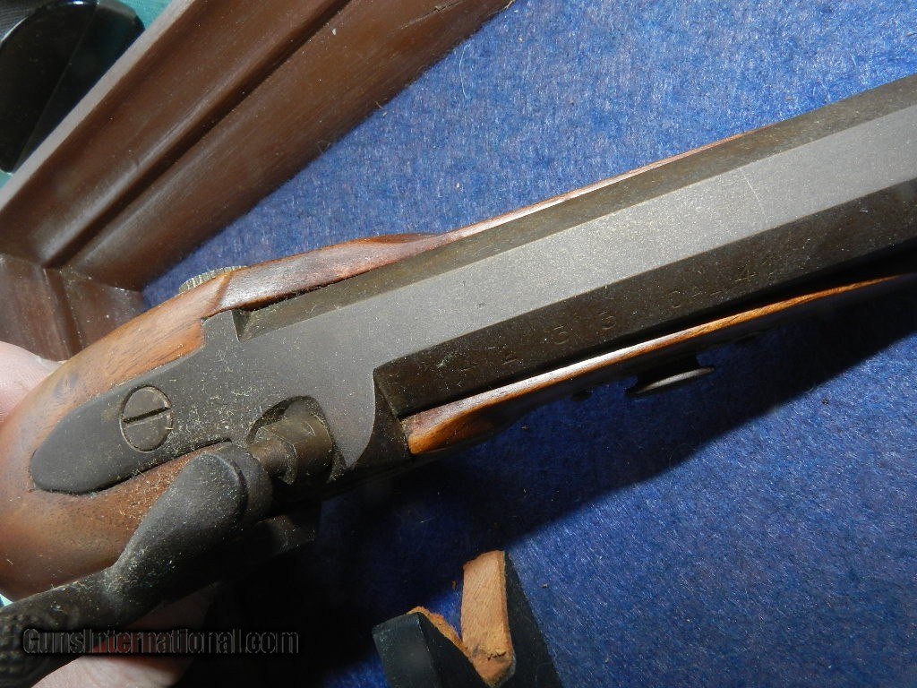 Description: Unusual maker not seen very often this gun was never fired with a.41 cal caliber smooth bore, with a 3 5/8" long barrel and about 7 +" long over all. Walnut stock looks new, and the exterior metal has been browned. Action is crisp from non-use. Has a brass trigger guard and eschecheon plate .Don't see any numbers or marks, but looks like a 1960's import from Spain by the hammer type. This one will ship with the frame if you wish but may cost about $5 more thank you. Shipping may be higher than stated as shippers raise their prices twice year without notice! When buying a gun always have it examined by a competent gunsmith before shooting. To buy a gun from me you must get a direct email for me, with details, and shipping cost. We don’t have a web site .I prefer money orders or a check. Item ships when funds come in. If you can only pay with a card let me know. I try to keep guns affordable, which means I make less money than most dealers. You won’t get altitude sickness, or nose bleed, with my prices! I consistently have the best selection of older guns If you attempt to buy, you must still contact us for details . Best to email to buy. Sometimes a local person can stop buy and purchase before the gun is removed. Sometimes not home to get calls. Some guns are required shipment to a gun dealer near you for a transfer to you when it arrives. Otherwise many older or black powder guns ship to your door. With the widest selection of older guns at great prices, We don’t have a store, and sell on the internet only. I’m easy to get along with. Thank You. SOLD Antique: Yes |