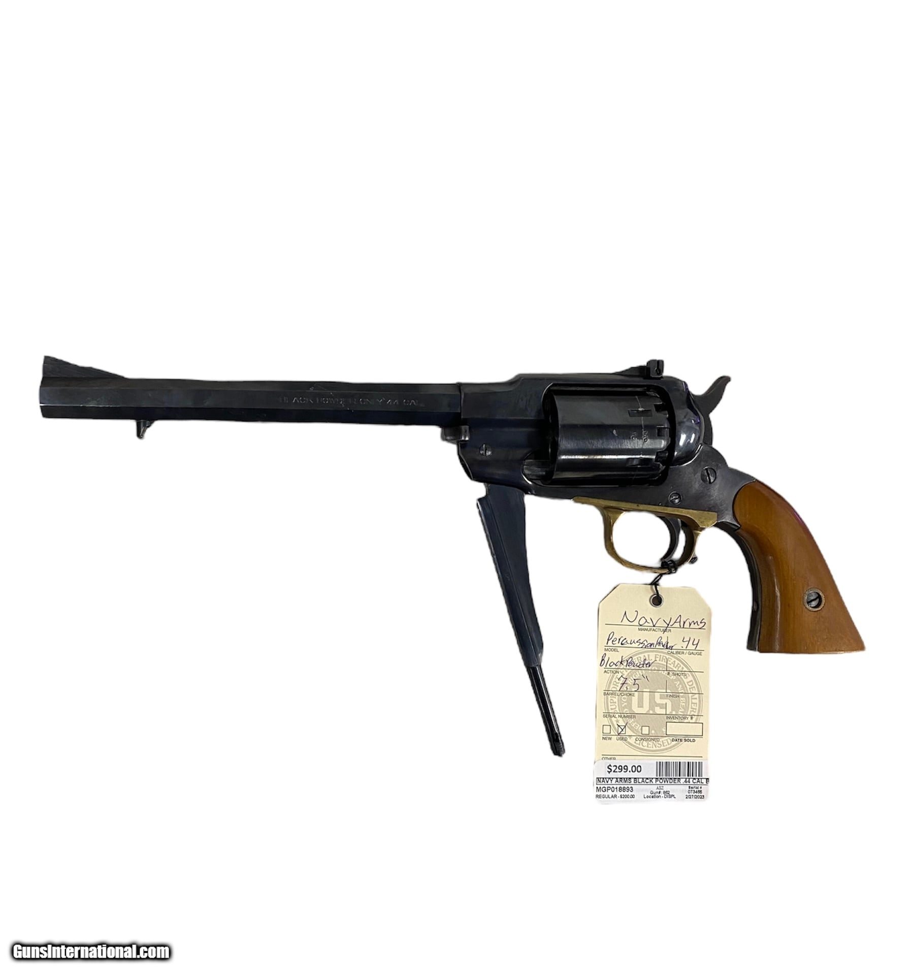 Description: Guns Listing ID: 756743 Great condition .44 caliber black powder Percussion Revolver. SOLD Manufacturer: NAVY ARMS Model: Single Action Revolver - Blackpowder Caliber Info: 44 CAL Condition: Used - Non-Certified Barrels: 8 BARREL Finish: BLUE |