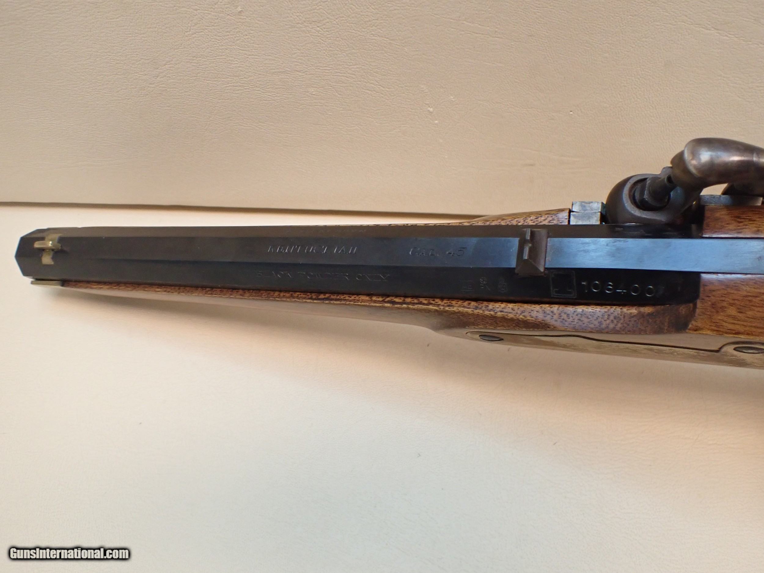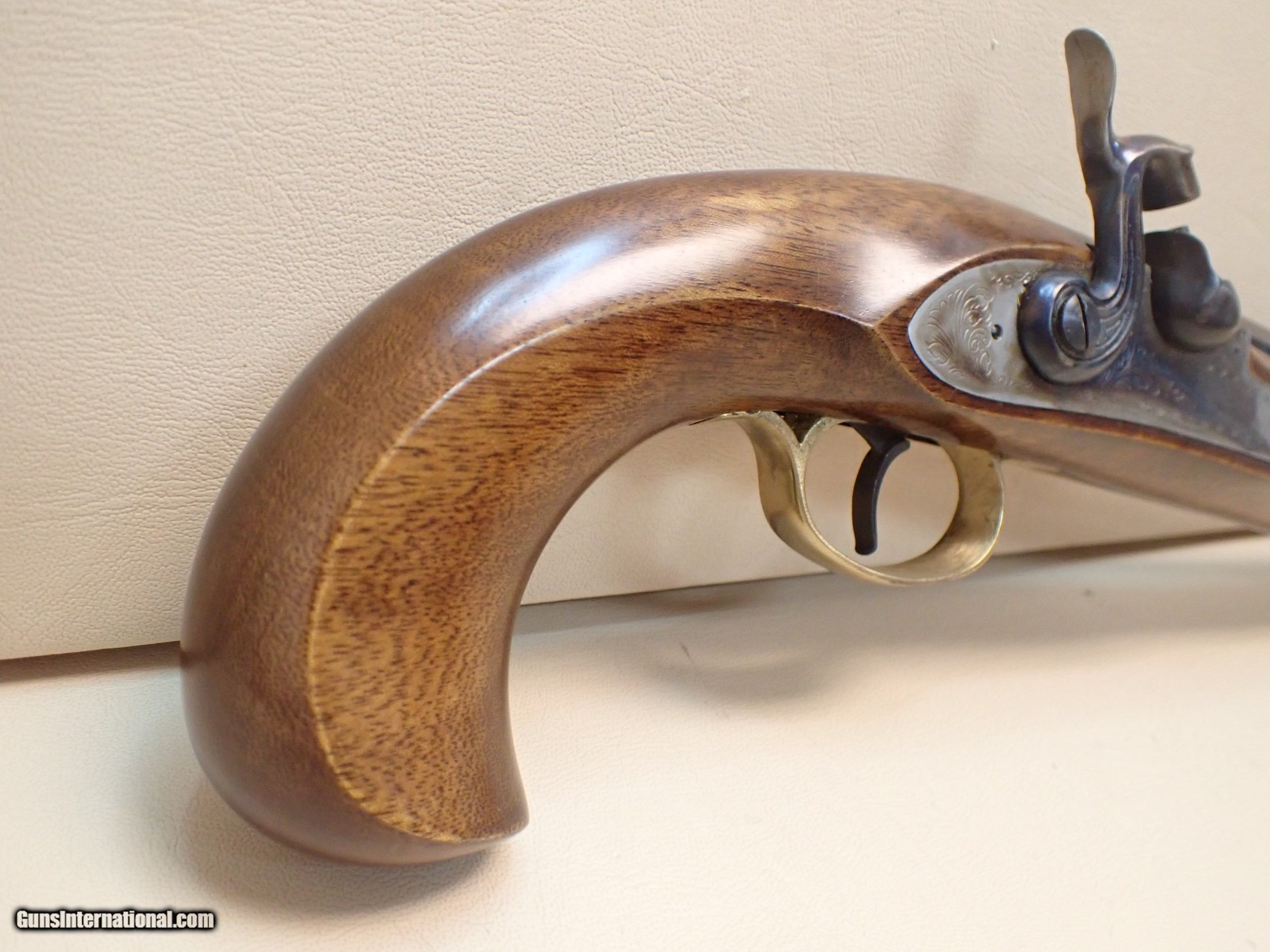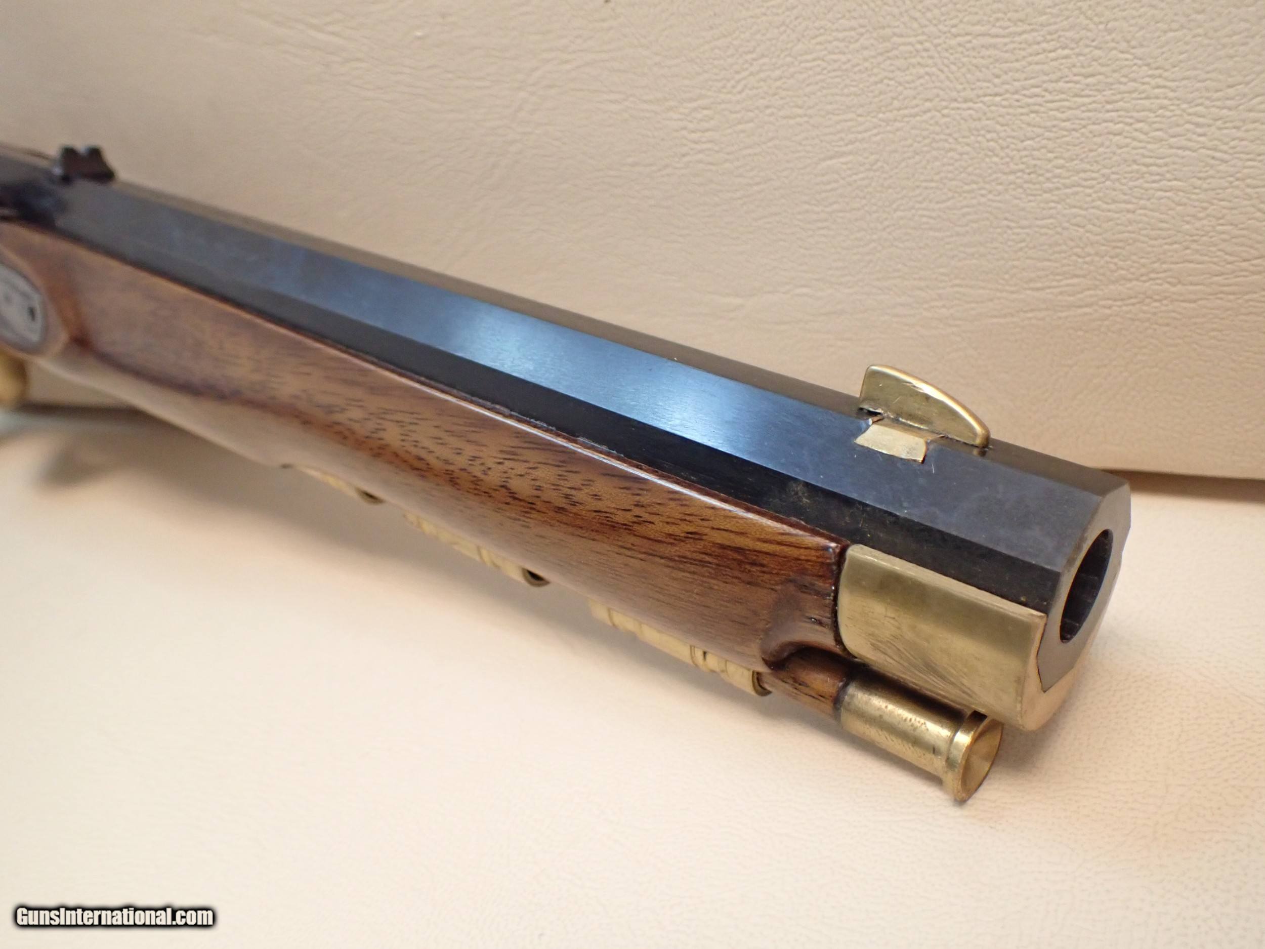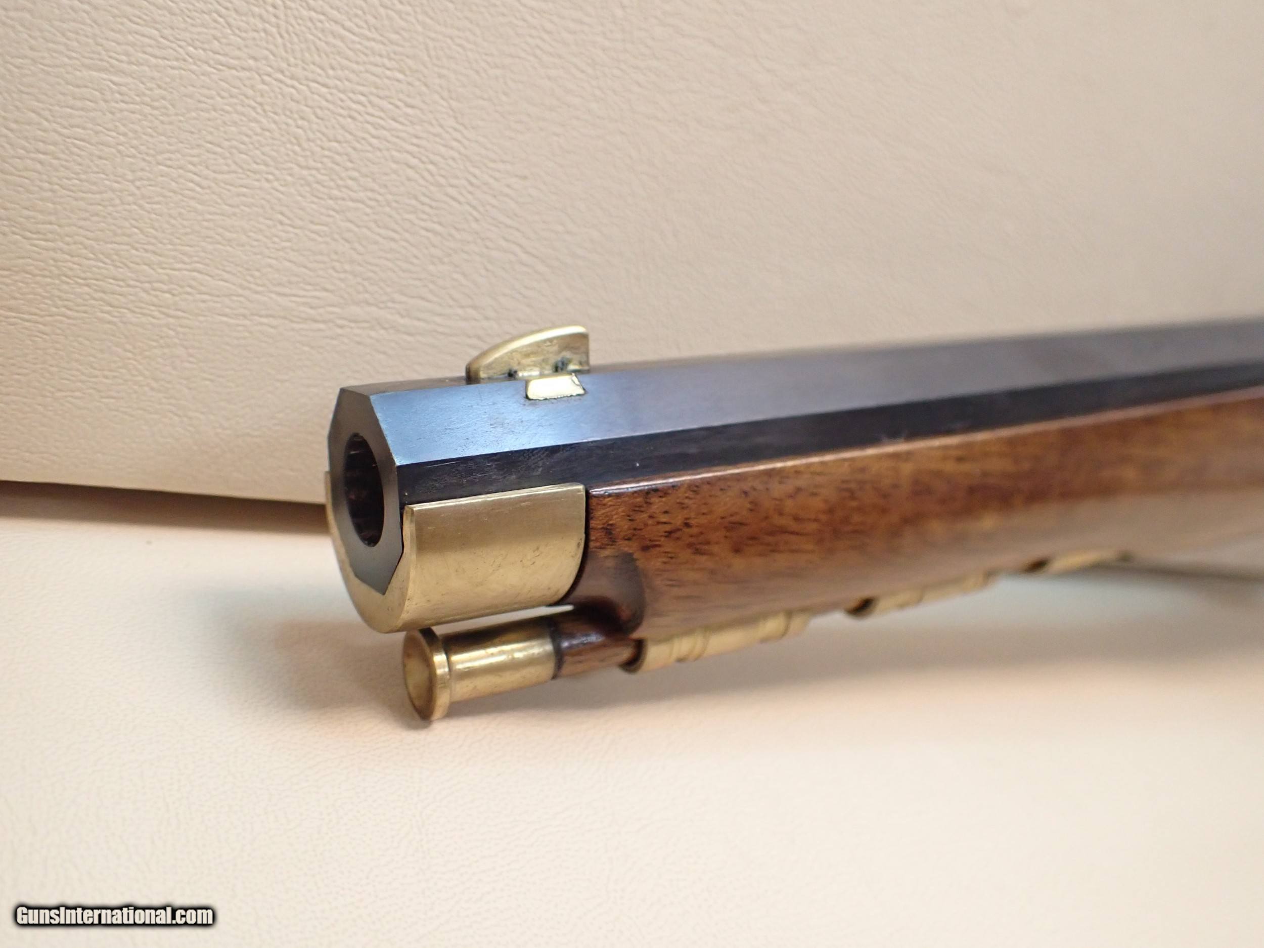 Description: Italian-Made "Kentucky Pistol" .45 caliber black powder percussion pistol, most likely manufactured by Pietta. This pistol features a hardwood stock with a blued octagonal barrel, and color case hardened lock plate, and brass fittings, making a very attractive and handy little pistol. The pistol is in great overall condition and appears to have seen very little use, as shown. The lock operates properly and the bore looks great. Includes the factory box and manual. Please refer to the photos prior to purchase. A great pistol for some black powder fun! No FFL required, proof of age required. SOLD Manufacturer: Pietta Model: Kentucky Serial Number: 21542 |