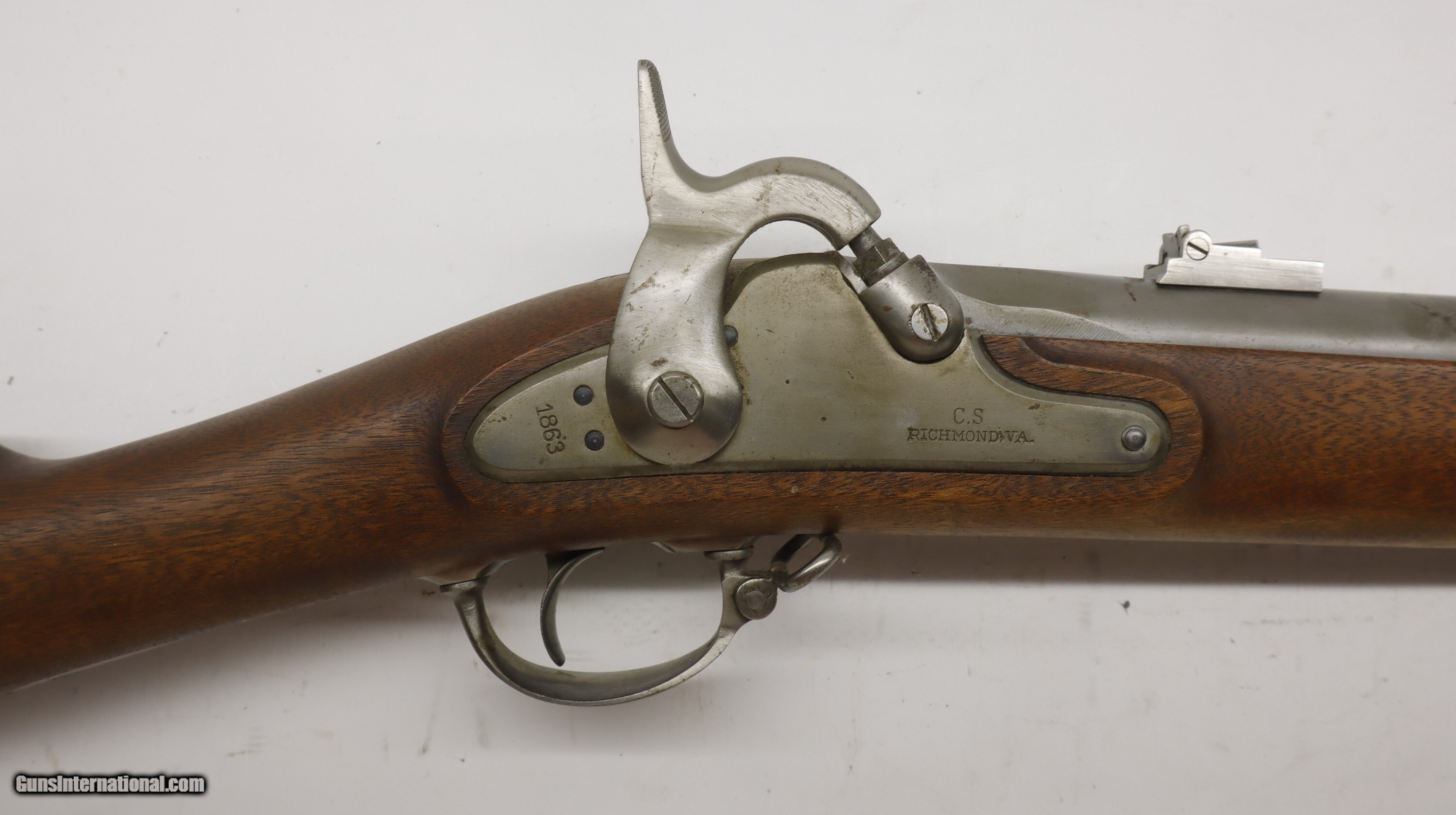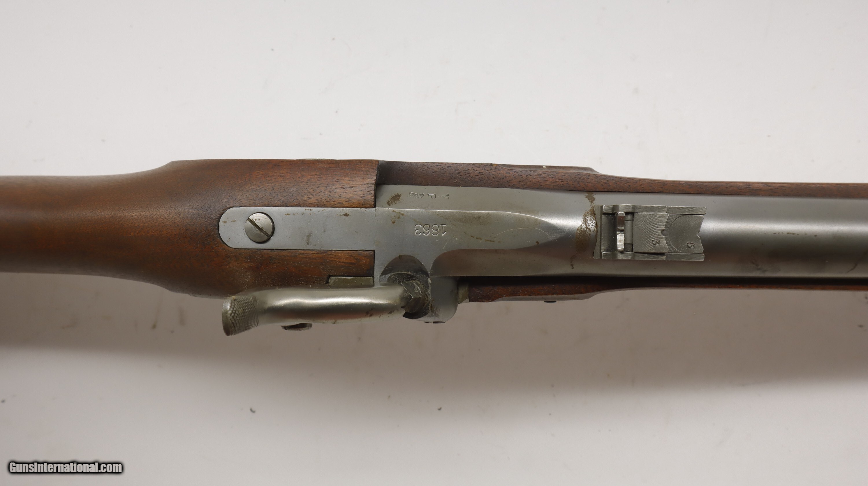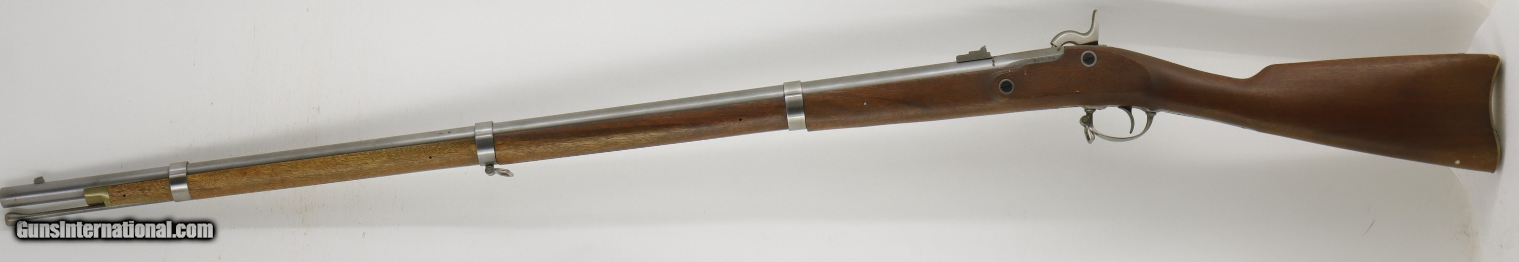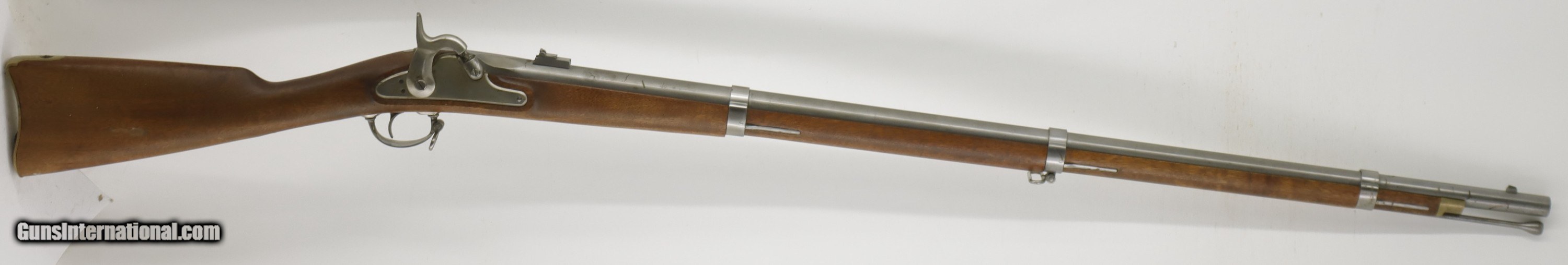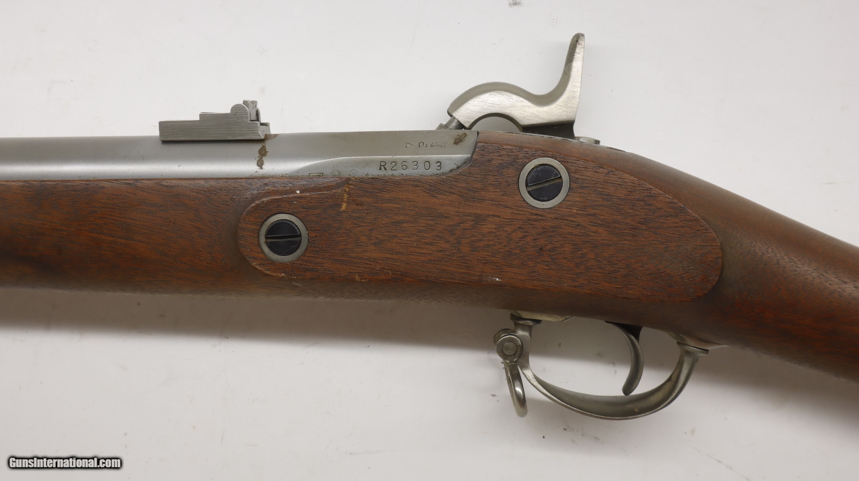 Italian Copy of a Civil Springfield 1863 rifle, 40" barrel, 58 caliber. SN is R26303. Used gun in nice shape, good bore, good working order. Has been in storage for 20 years or more. Well taken care of. Factory finish on both wood and metal, factory butt plate.