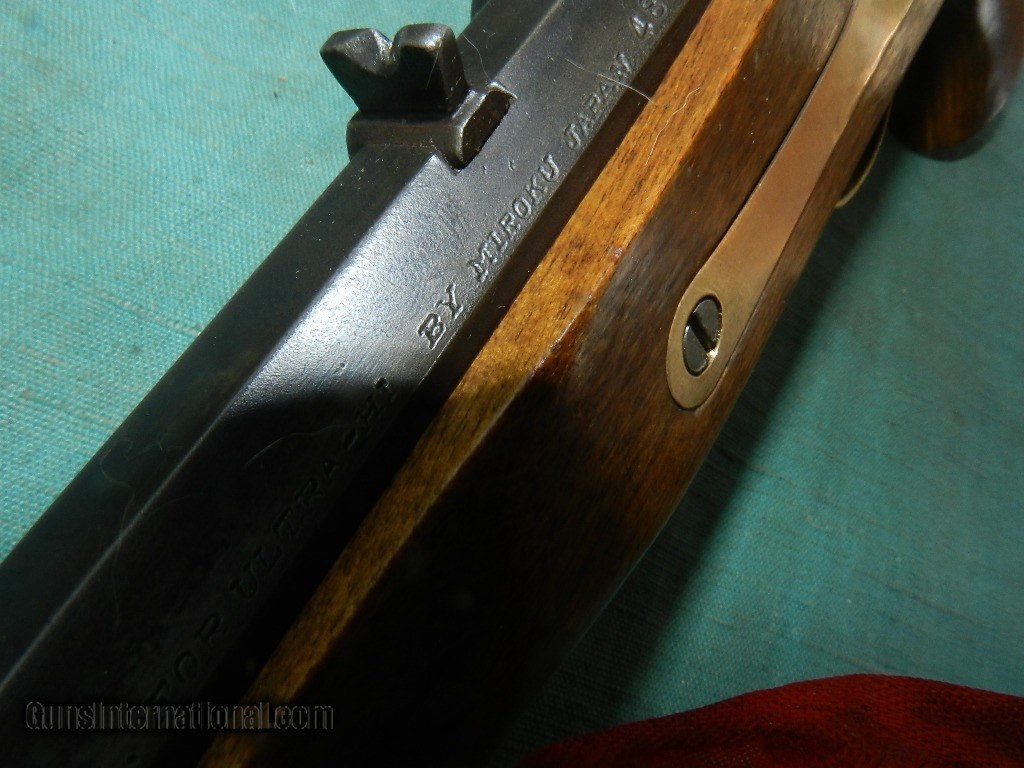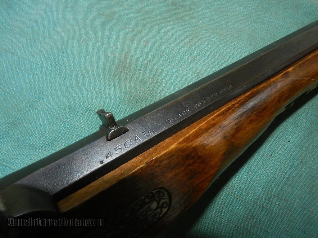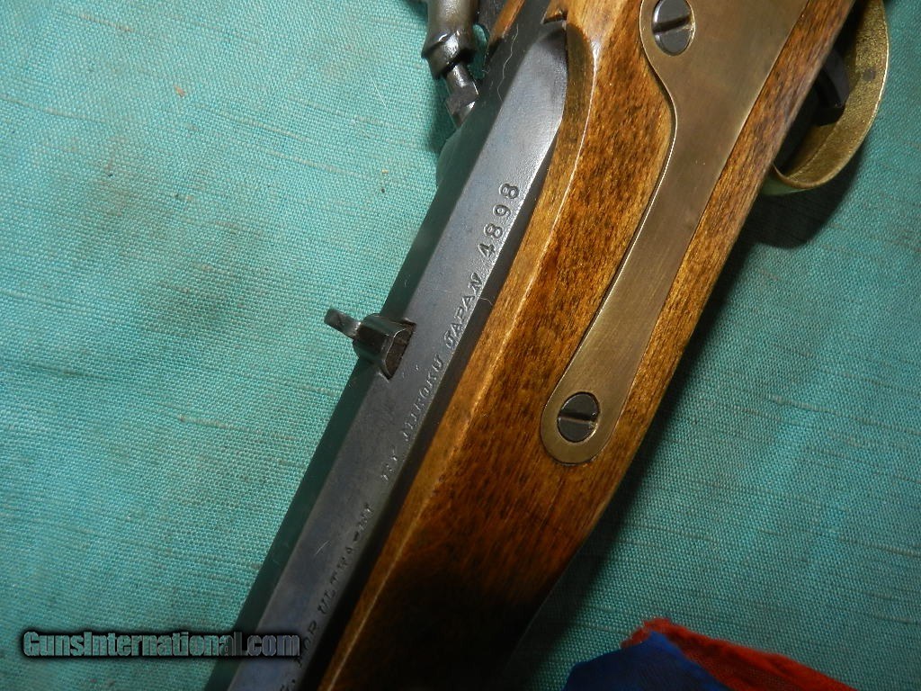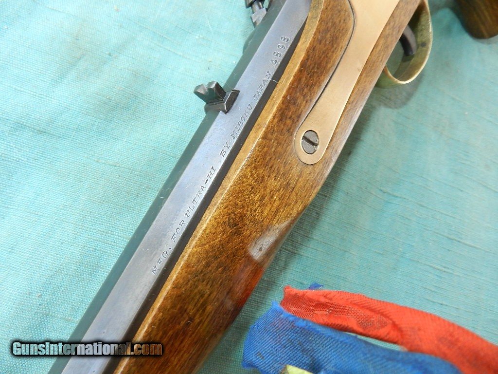 Description: SOLD A very clean single shot by Ultra-Hi made by Miroku of Japan, with a blued .45 cal black powder barrel of about 10" comes and the action works good with a clean nipple, looks unfired. The coor caes hardend lock plate has chisel engraving. The furniture is polished brass, and comes with a hardwood cleaning rod, and brass tip. The hardwood stock looks new and has no wear or flaws. The rifled bore is very clean , strong rifling almost looks unfired.A very nice gun. When buying a gun always have it examined by a competent gunsmith before shooting. To buy a gun from me you must get a direct email for me, with details, and shipping cost. We don’t have a web site .I prefer money orders or a check. Item ships when funds come in. I try to keep guns affordable, which means I make less money than most dealers. You won’t get altitude sickness, or nose bleed, with my prices! I consistently have the best selection of older guns If you attempt to buy, you must still contact us for details . Best to email to buy. Sometimes a local person can stop buy and purchase before the gun is removed. Sometimes not home to get calls. Some guns are required shipment to a gun dealer near you for a transfer to you when it arrives. Otherwise many older or black powder guns ship to your door. With the widest selection of older guns at great prices, We don’t have a store, and sell on the internet only. I’m easy to get along with. Thank You ;;[ SOLD |