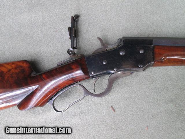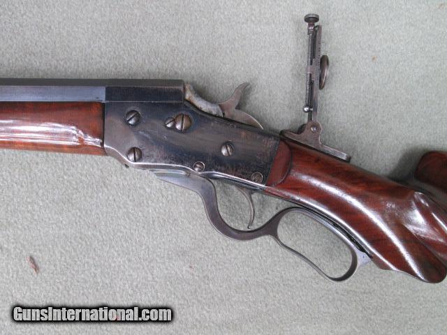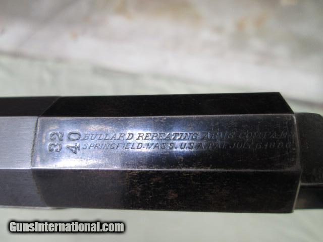 Description: A deluxe Bullard single shot rifle in 32-40 Win. (Not Bullard) chambering. 30 inch barrel with a bright crisp bore. 95%+ original stock varnish, no stock damage, chips or breaks. Barrel retains at least 90% bright blue with just a few minor blemishes. Action finish showing some flaking but 80% of original bright charcoal bluing remains. Nickel plated butt plate and color hardened lever. A really fine example. Price includes Fedex ground shipping in the lower 48. SOLD Antique: Yes |