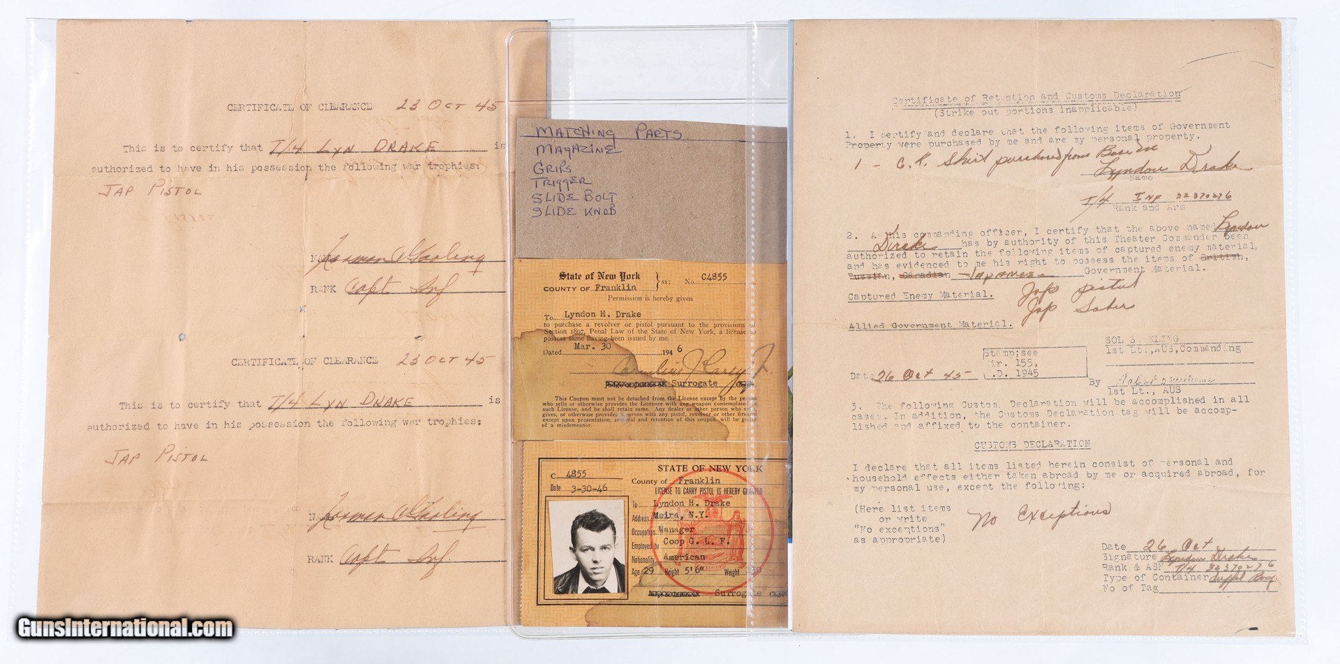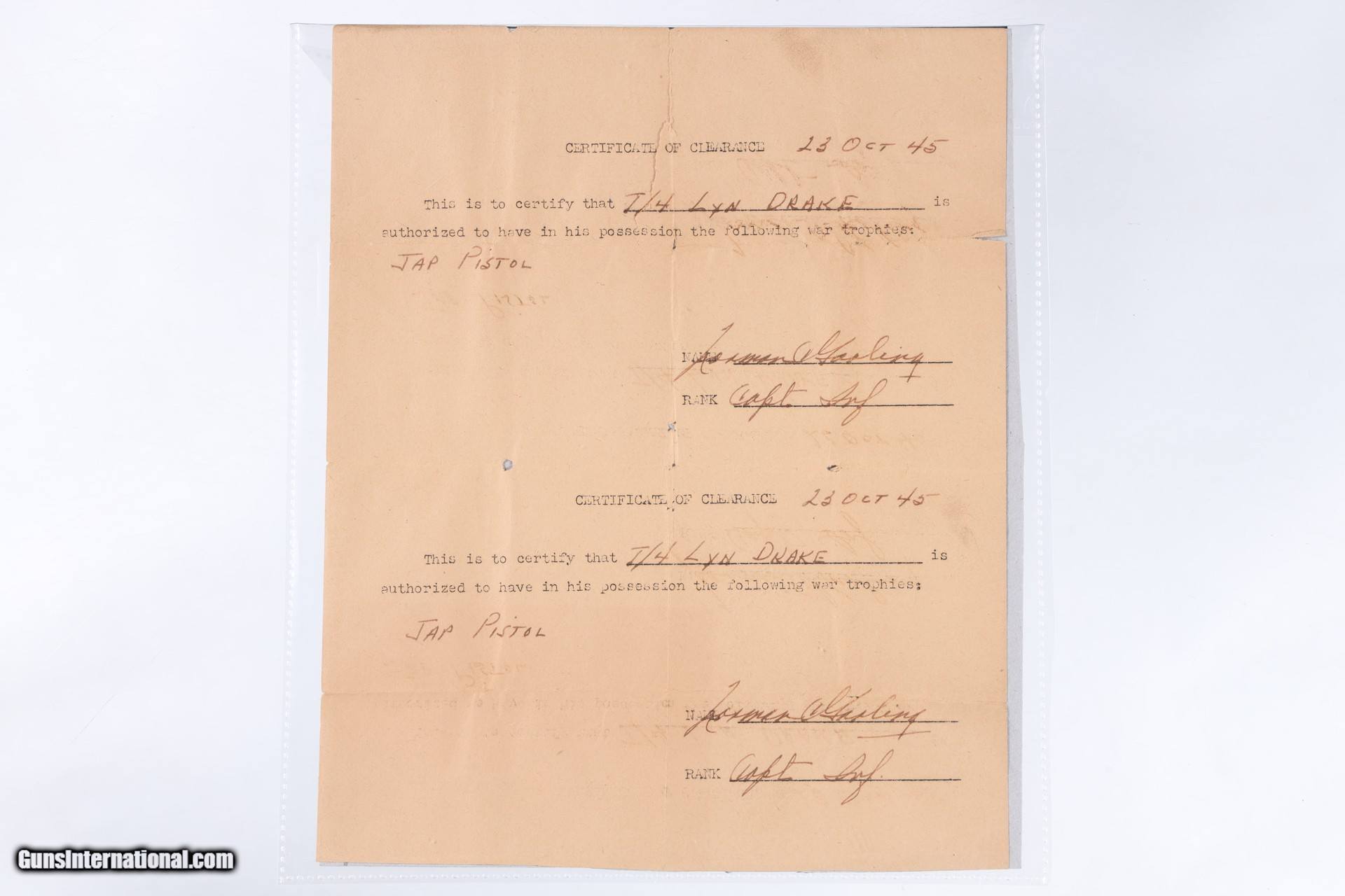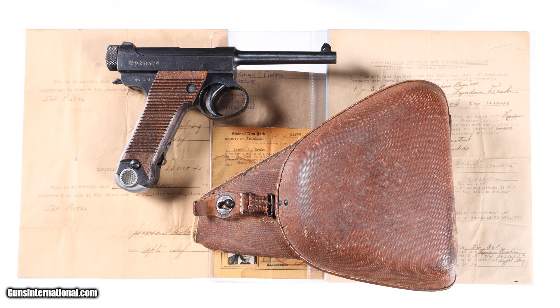Description: Excellent condition, matching numbers. With capture papers. This Japanese Nambu Type 14 8mm pistol is a timeless piece of history produced by the Japanese company Koishikawa Arsenal, later known as the Tokyo Artillery Arsenal, and a highly sought-after by gun collectors worldwide. Manufactured between 1904-1945, the Nambu dealt significantly less stopping power than its rivals, the M1911 and the Walther P38. This design has a wealth of history, as it served the Empire of Japan’s military for half a century. The Japanese Nambu Type 14 gained combat experience in 10 wars, ranging from the Russo-Japanese War to WWI/WWII and limited usage as recent as the Vietnam War, making this one of the more historically significant handguns ever produced. This pistol comes accompained by its original antique holster, making this a valuable addition to any collection. • Free Shipping, No Credit Card Fees. • Most Crypto Accepted! XRP, XLM and LTC Perferred • Per Direct transfer from your Wallet to Ours. • Lay-a-way available for this firearm. • 1/3 Down, a 1/3 in 30 Days 1/3 in 60 Days. SOLD Curio/Relic: Yes Manufacturer: Japanese Model: Nambu Serial Number: 28574 Barrel Length: 4 1/2 |