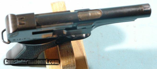 Description: WW2 JAPANESE TYPE 94 SEMI AUTO 8MM NAMBU PISTOL. Excellent , all matching example except the magazine which is one serial number away. 95% plus blue and extra nice bake-a-lite original grips. Perfect working order and near mint bore. Some old dried grease that will cleanup well. Fine collection provenance from an collection formed from the early post WW2 years. A true Pacific bring back. SOLD Curio/Relic: Yes |