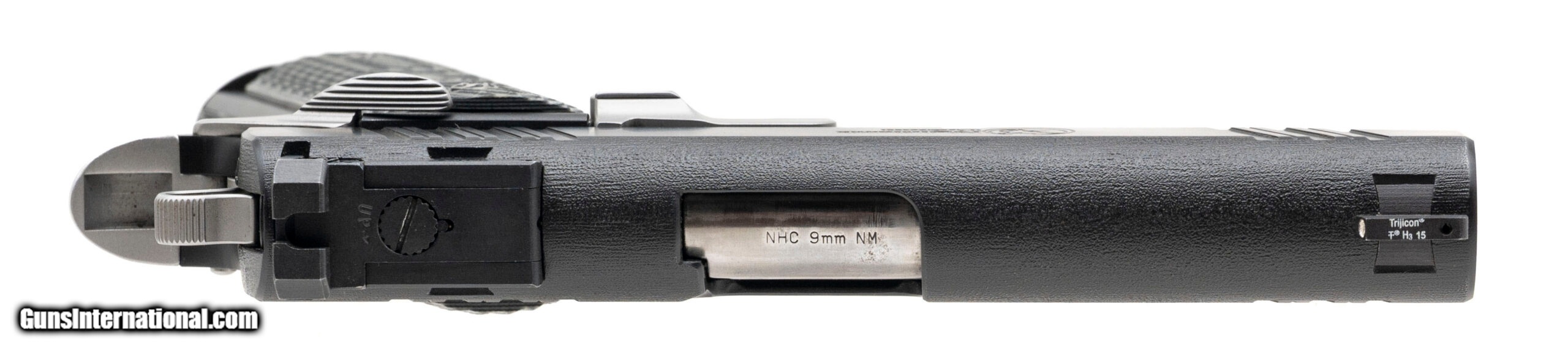 Description: "SN: NCP22846. Modern production, 9mm with a 4.25"" bull barrel. Bore is bright with strong rifling. Premium grade custom commander 1911 pistol with Trijicon night sights, brushed stainless accents, G10 grips, 3.5 -3.75LB trigger, and a black nitride finish. Excellent condition overall. Comes with NHC carry bag and an extra magazine. Price: $4,350.00 Contact Seller |