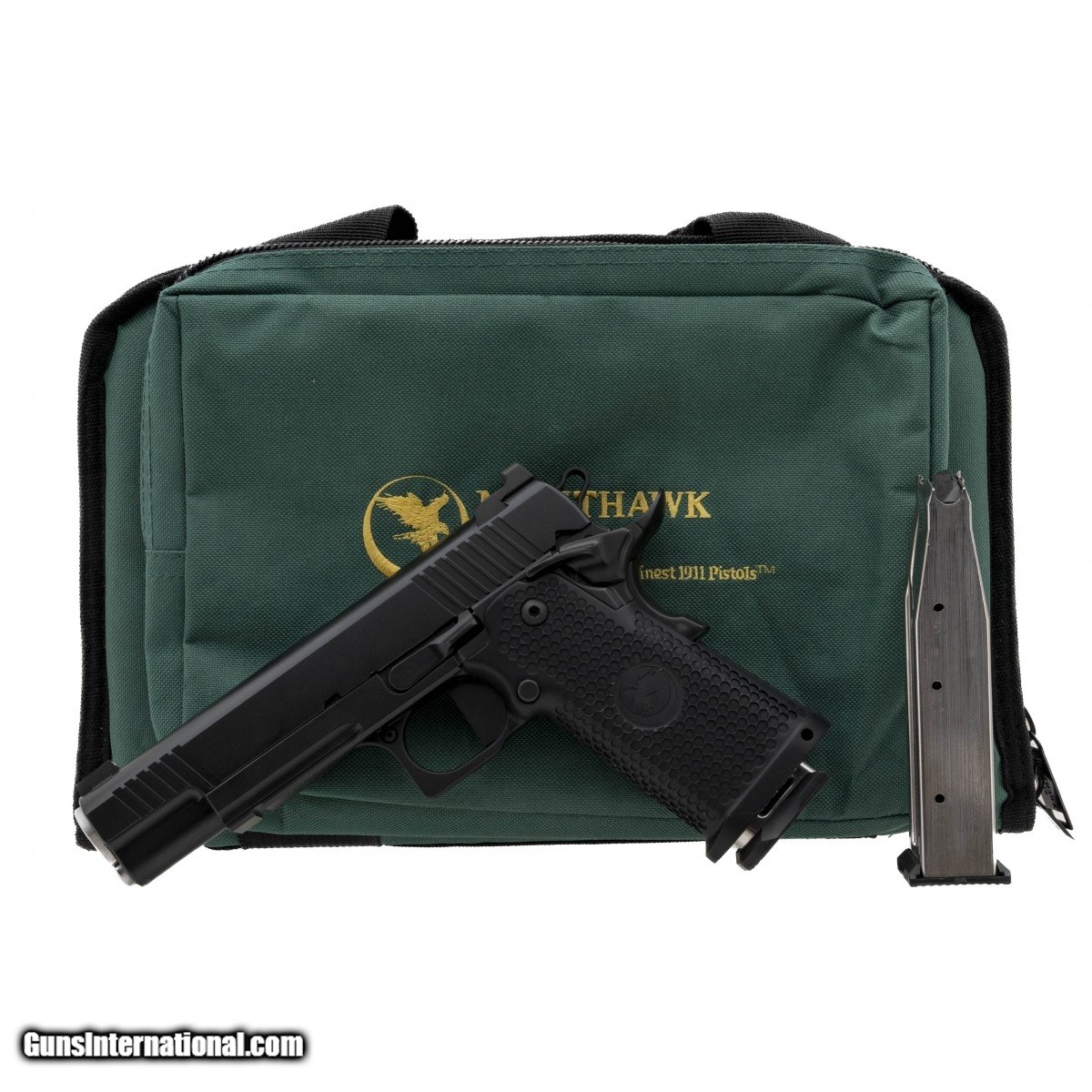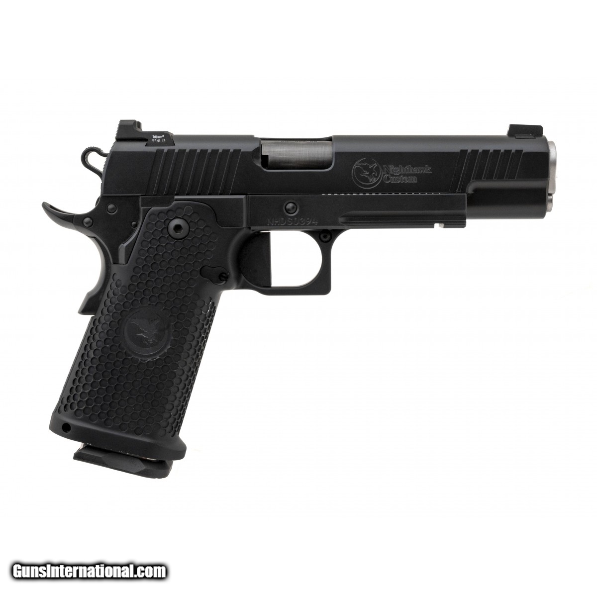 Description: " SN: NHDS0394. Premium double stack 1911 with 5"" barrel, accessory rail, full length guide rod, Heine style Trijicon night sights, extended magwell and extended beavertail. Overall excellent condition. Comes with Nighthawk range bag and extended magazine. SOLD |