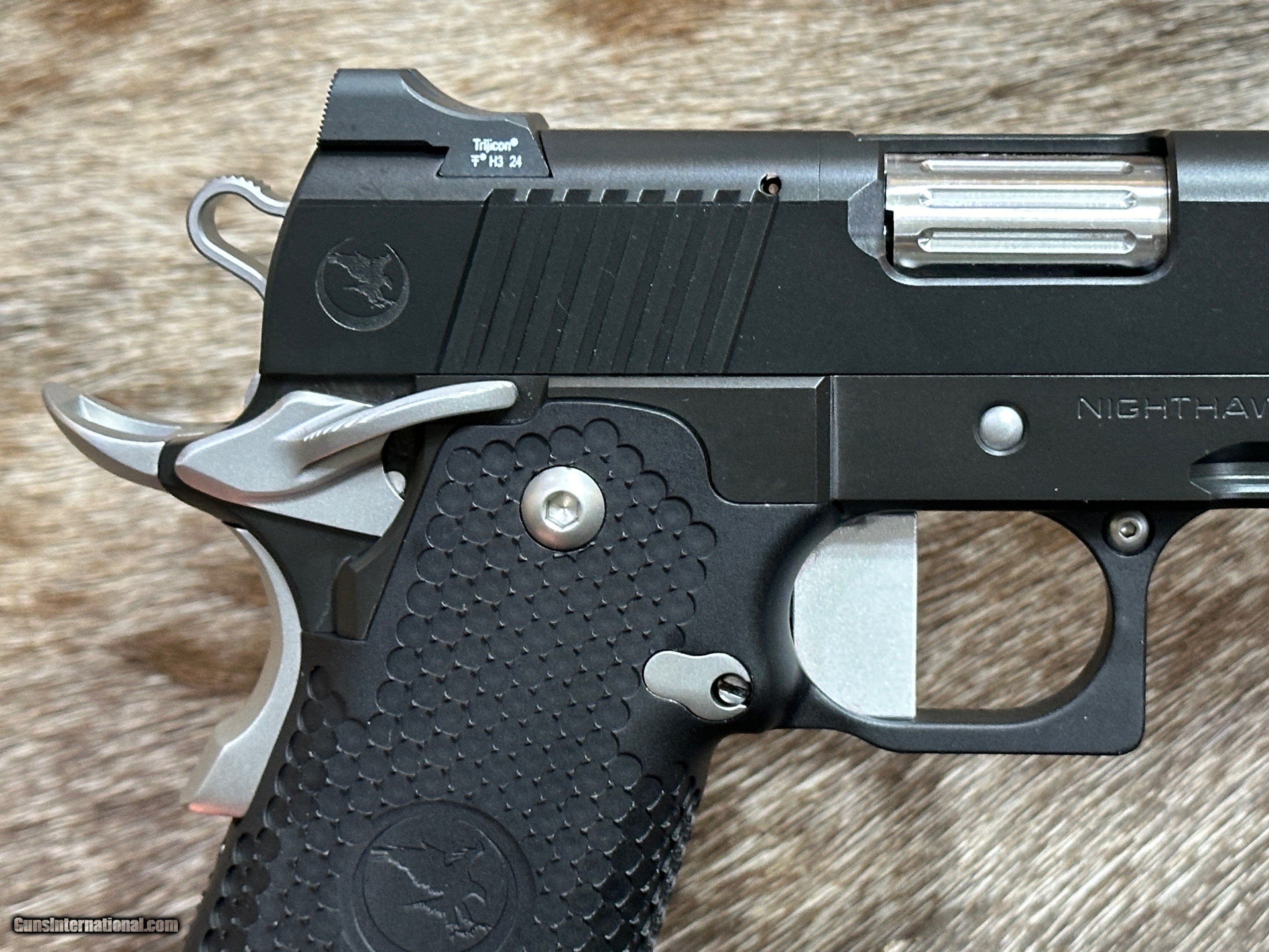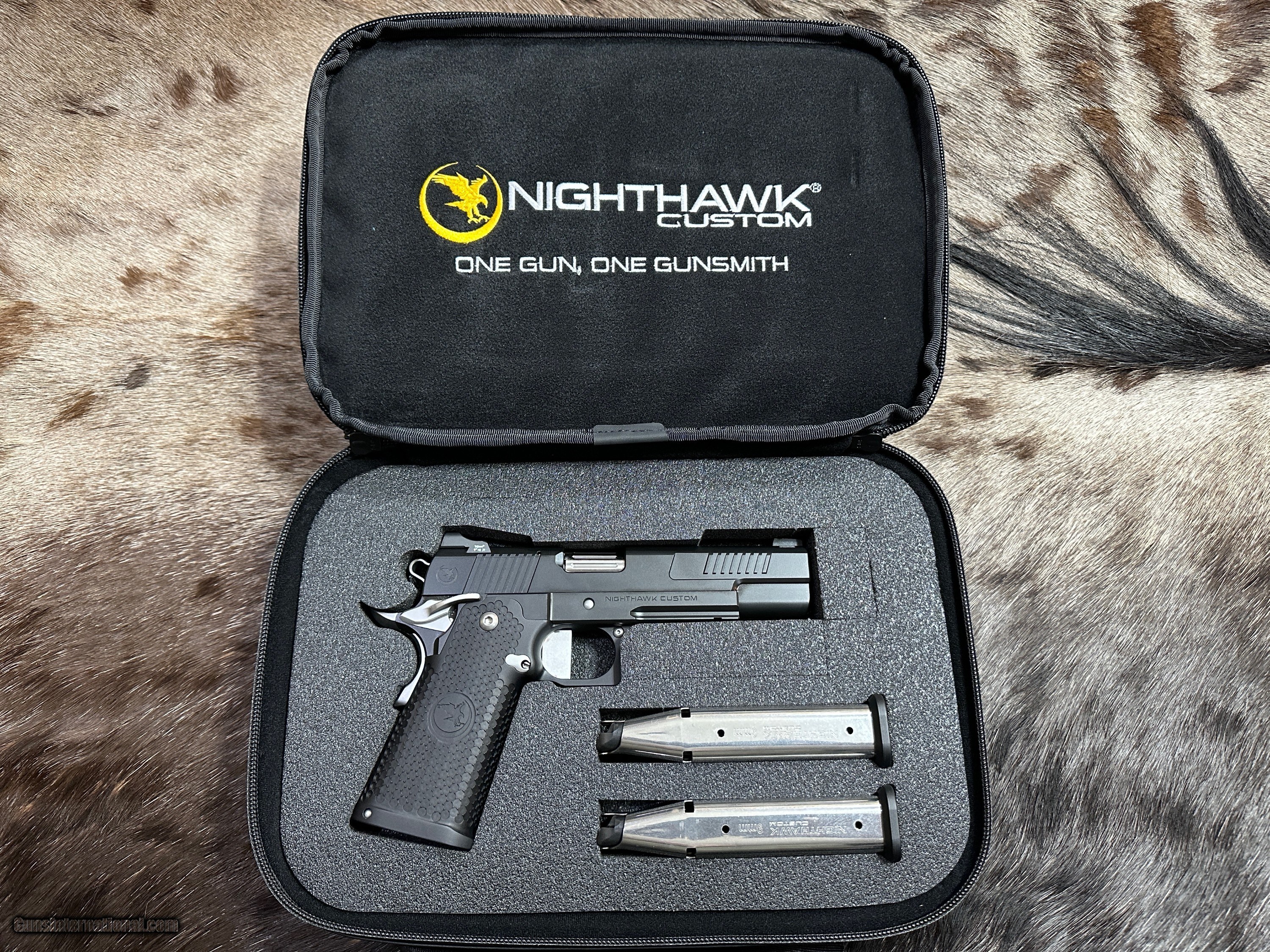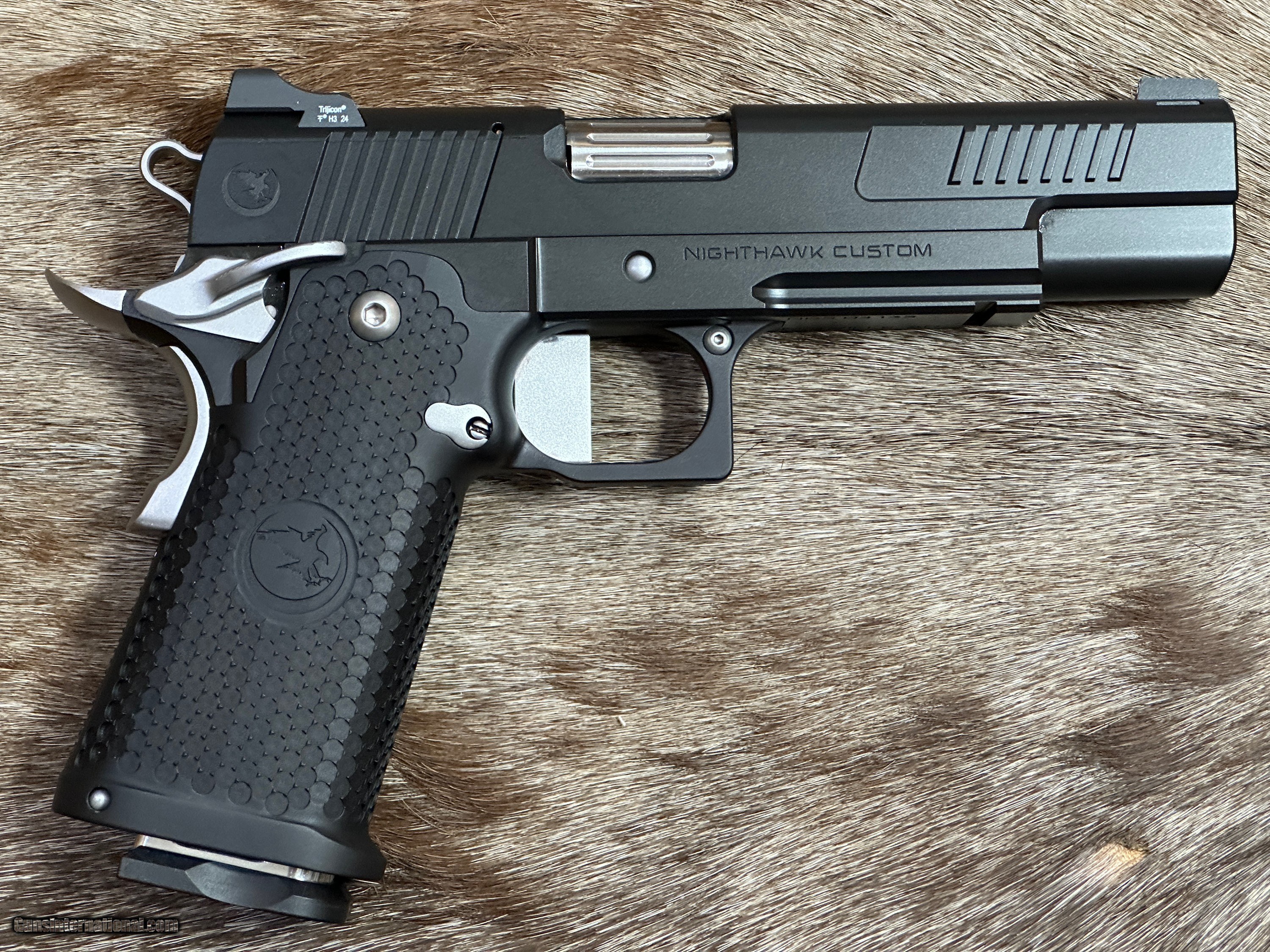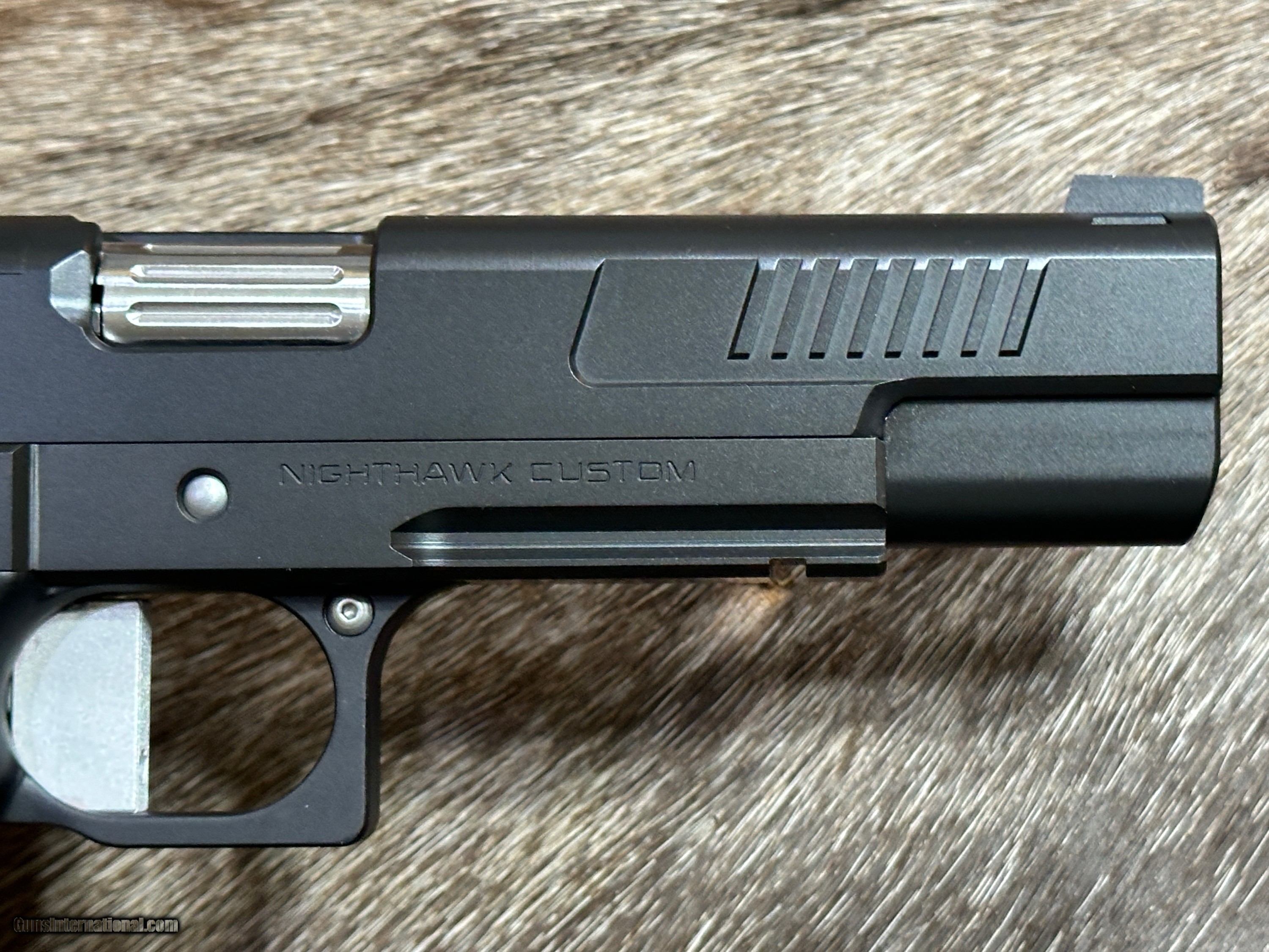 Description: NEW NIGHTHAWK CUSTOM ENVOY DOUBLE STACK GOVERNMENT 9MM PISTOL WITH MANY UPGRADES - LAYAWAY AVAILABLE The Nighthawk Custom Envoy is the third entry in the prestigious Ambassador Series of 1911 pistols, offering a blend of exceptional craftsmanship and distinctive features that set it apart from other models. Built on a government frame, the Envoy features a match-grade 5-inch barrel. The Ambassador Series' hallmark feature, positive front cocking serrations, returns with the Envoy. These protruding serrations on the front of the slide not only provide a unique aesthetic but also offer ample grip for a press check. Meanwhile, standard rear cocking serrations ensure a firm hold when racking the slide. The Envoy showcases Nighthawk Custom's patented Flush-Fit Magwell, enabling swift and efficient reloads without extending the overall length of the grip. Custom-engineered grips, designed in collaboration with Railscales for the Ambassador Series, offer a thin profile that enhances comfort and aids in concealment. This Envoy features Nighthawk's new Double Stack grip with aggressive texture. A crowned bull barrel and bull nose cut on the front of the slide add to the pistol's sleek design and precision performance. The Envoy comes standard with a black nitride finish, lending the pistol a sophisticated, durable appearance. The Nighthawk Custom Envoy embodies the excellence and innovation of the Ambassador Series, offering shooters a refined and reliable 1911 experience with a range of customization options. Whether for concealed carry, competition shooting, or everyday use, the Envoy delivers top-tier performance and style. FEATURES OF THIS GREAT CUSTOM 1911 INCLUDE: