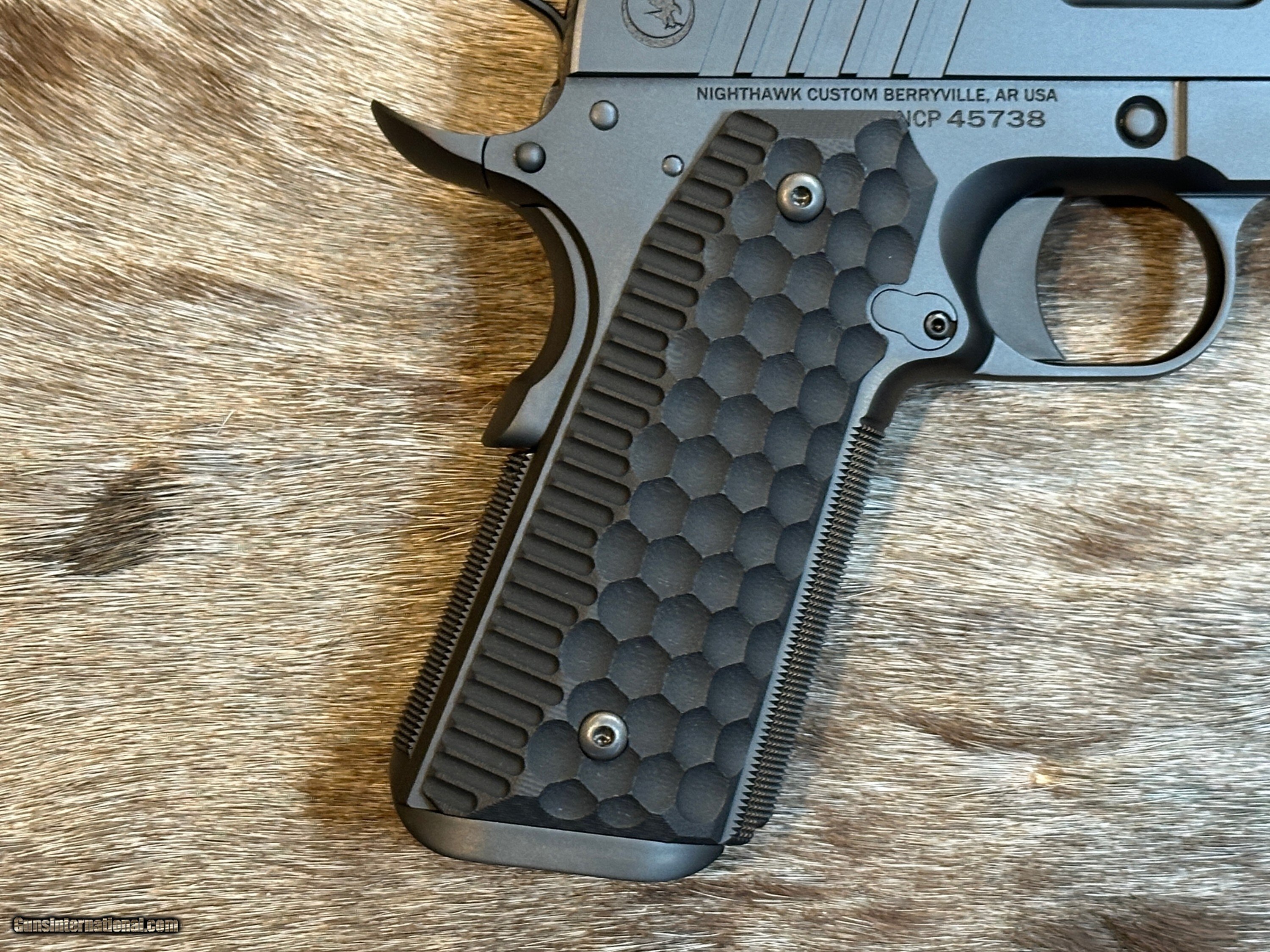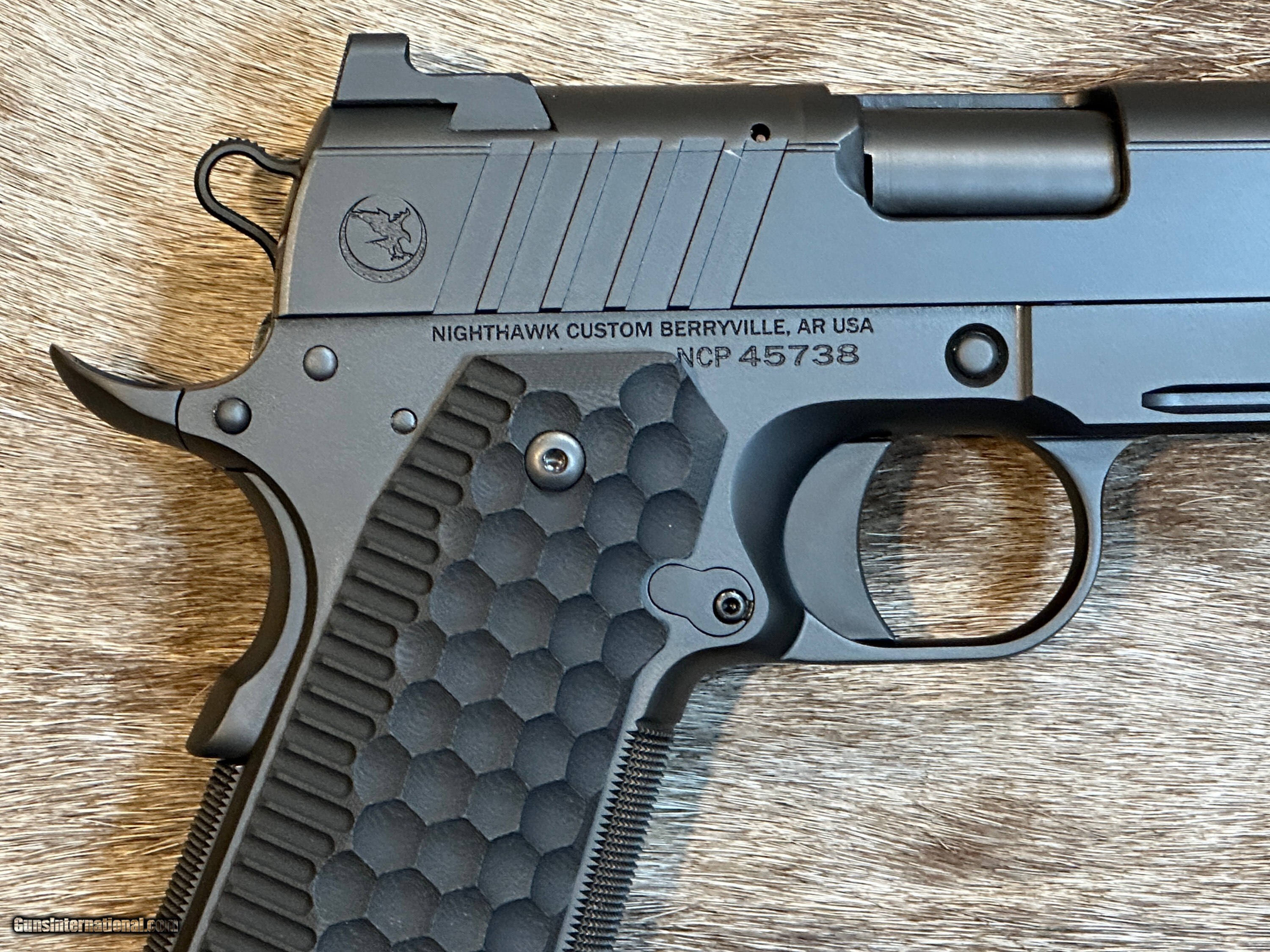NEW NIGHTHAWK CUSTOM FIRE HAWK GOV'T 9MM 1911, IOS, BULL BARREL, RECON RAIL, SAND HAWK SERRATIONS, DLC FINISH - LAYAWAY AVAILABLE