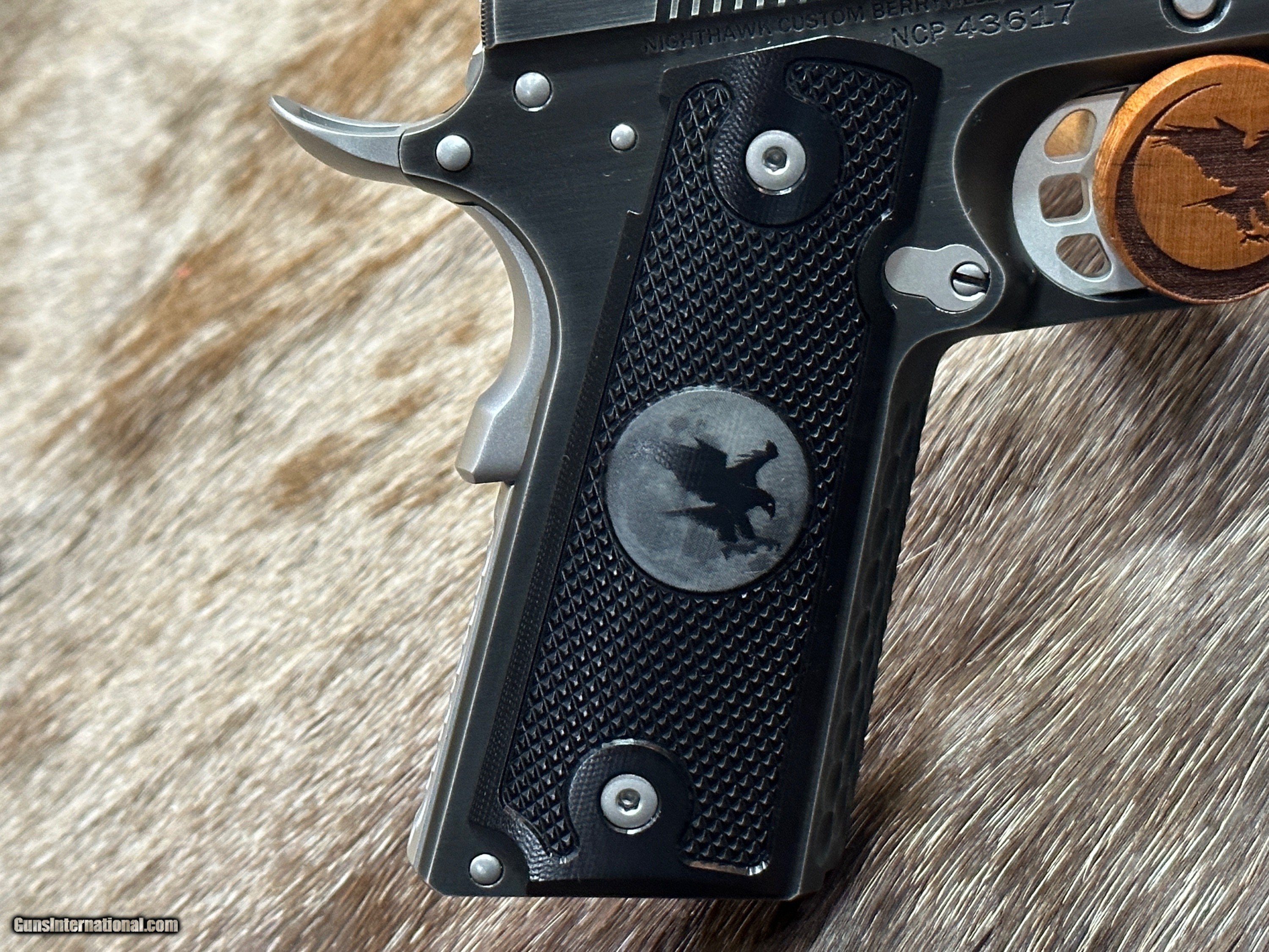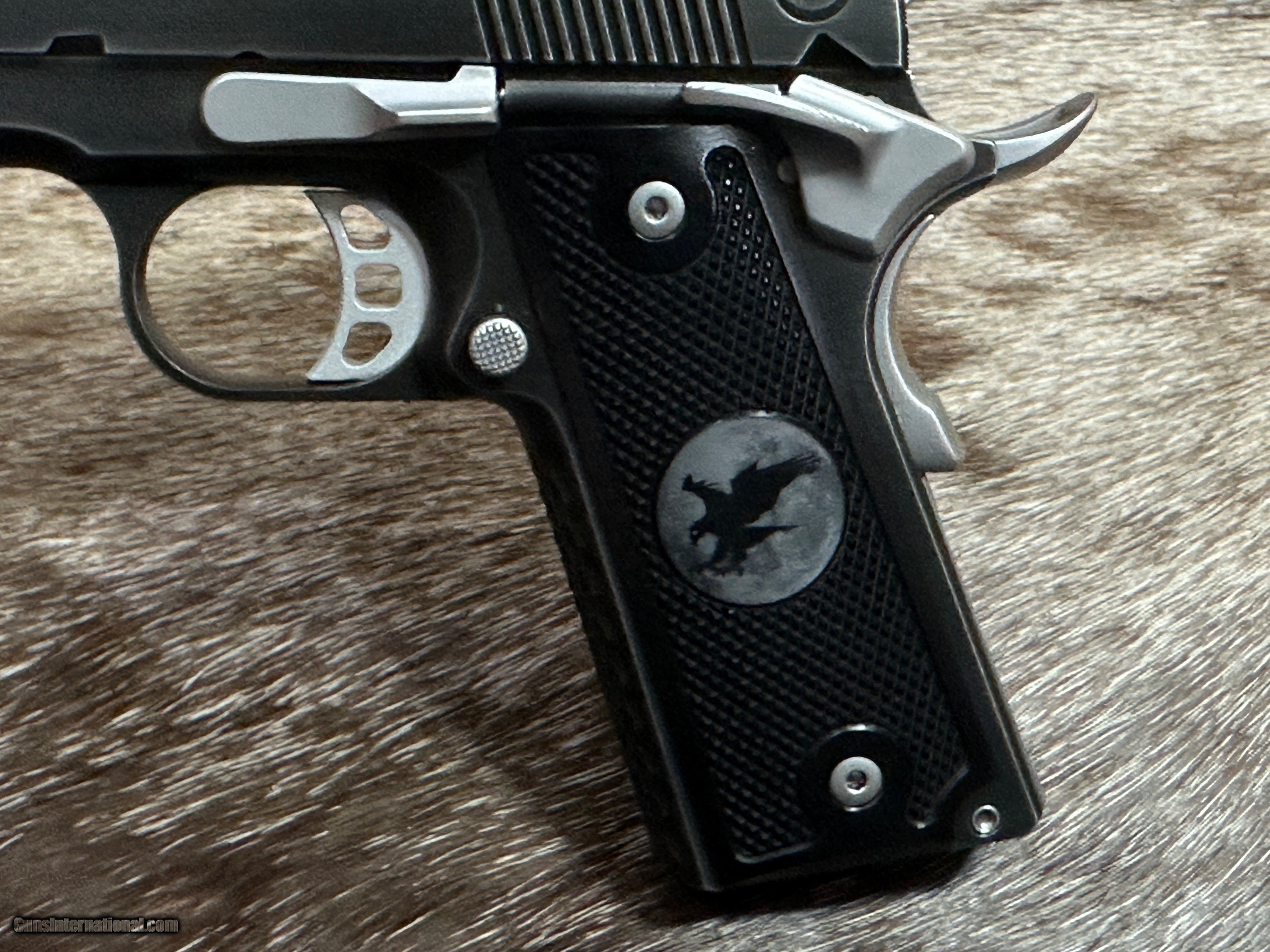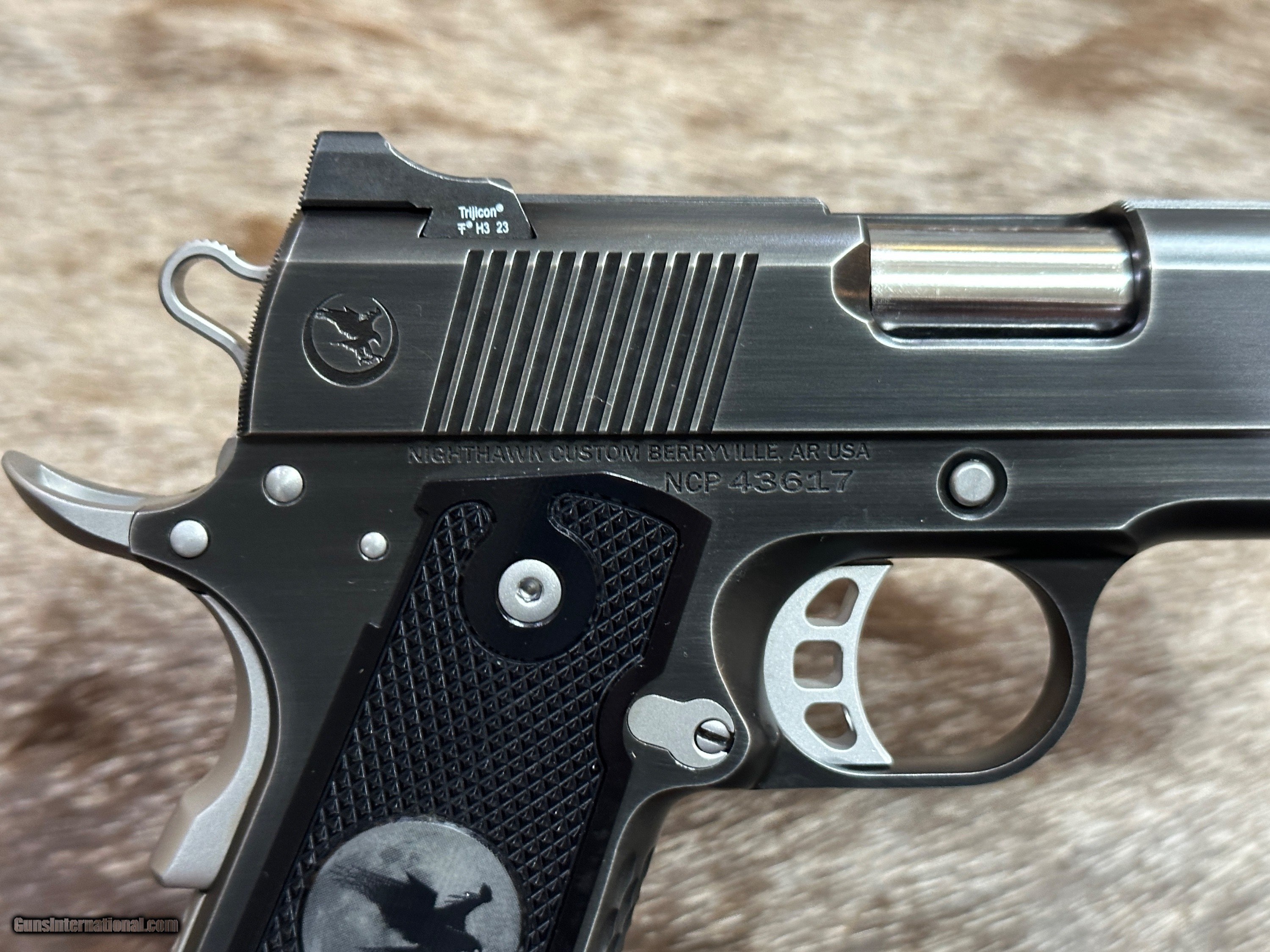 Description: NEW NIGHTHAWK CUSTOM KESTREL COMMANDER 1911 45 ACP PISTOL WITH SMOKED NITRIDE FINISH - LAYAWAY AVAILABLE The Kestrel is a masterpiece to behold with great ergonomics and eye appeal. It has a thinned down front strap, flat mainspring housing, and thin grips, which give this pistol a great feel. The moonhawk behind the rear cocking serrations create a clean slide, along with scallops and a black nitride finish with stainless steel controls make this a great looking 1911. FEATURES OF THIS GREAT CUSTOM 1911 INCLUDE: