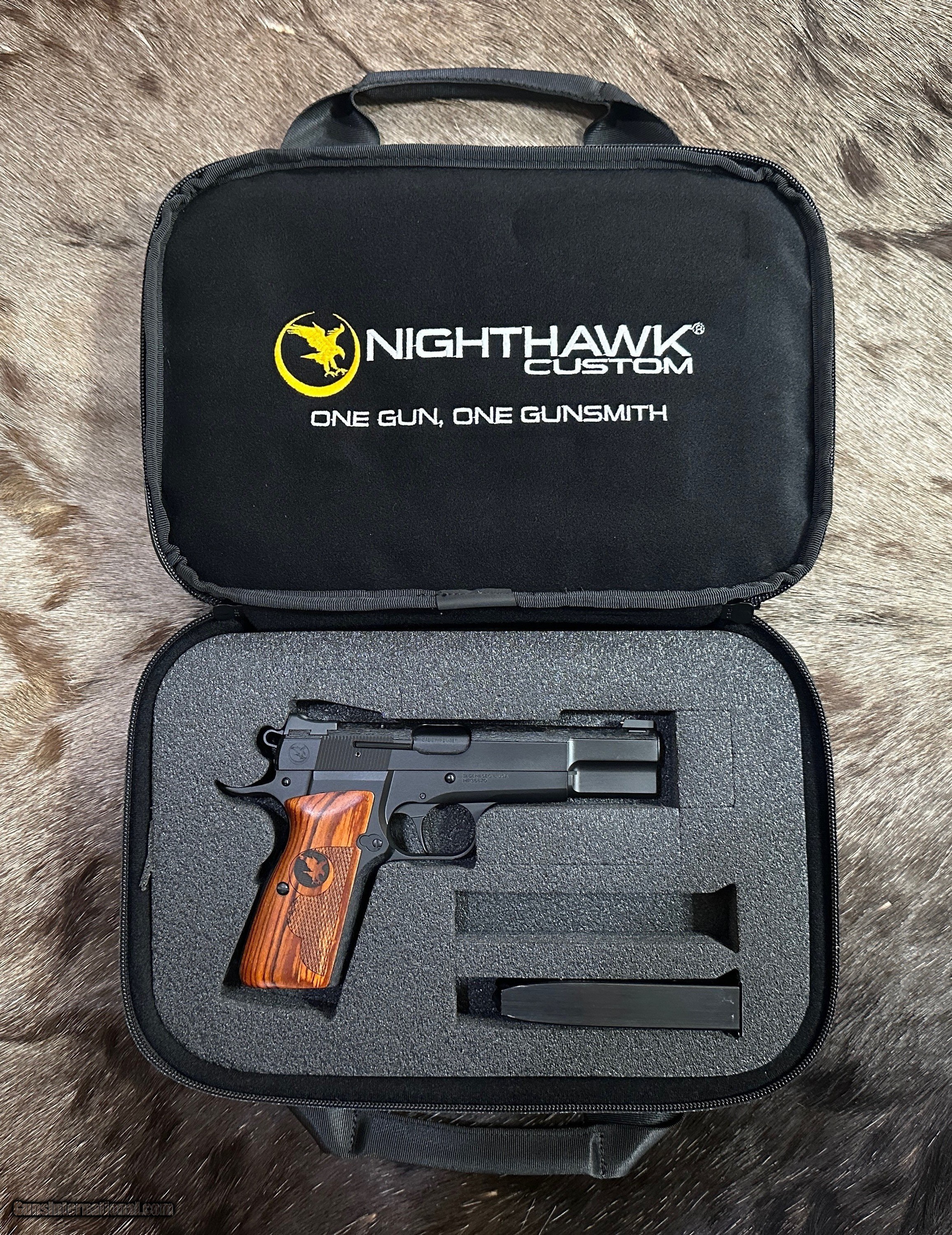 Description: NEW NIGHTHAWK CUSTOM SHOP BROWNING / SPRINGFIELD HI-POWER 9MM LUGER WITH MANY UPGRADES - LAYAWAY AVAILABLE Created by Browning, produced by Springfield Armory, and perfected by Nighthawk. From Nighthawk's Custom Shop comes the ultimate Hi-Power for your carry needs. This pistol started life as a new Made-In-The-USA Springfield SA-35 and has received every possible performance-enhancing and reliability upgrades from a master gunsmith in Nighthawk's Custom Shop. When you put all these features in one package, you come up with the finest carry Hi-Power pistol you can own. FEATURES OF THIS GREAT FULL CUSTOM HI-POWER INCLUDE:
