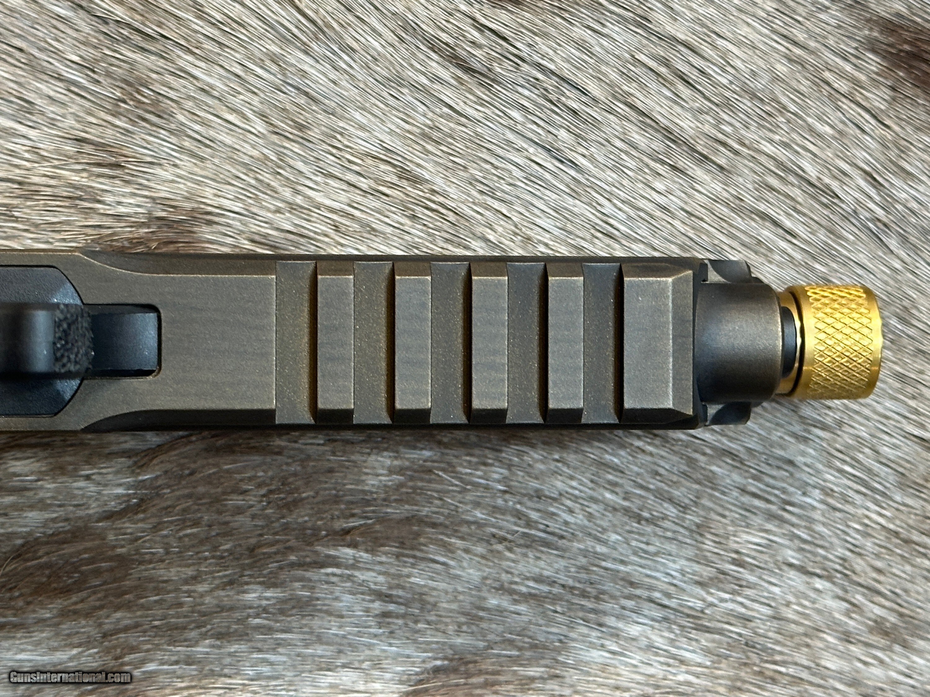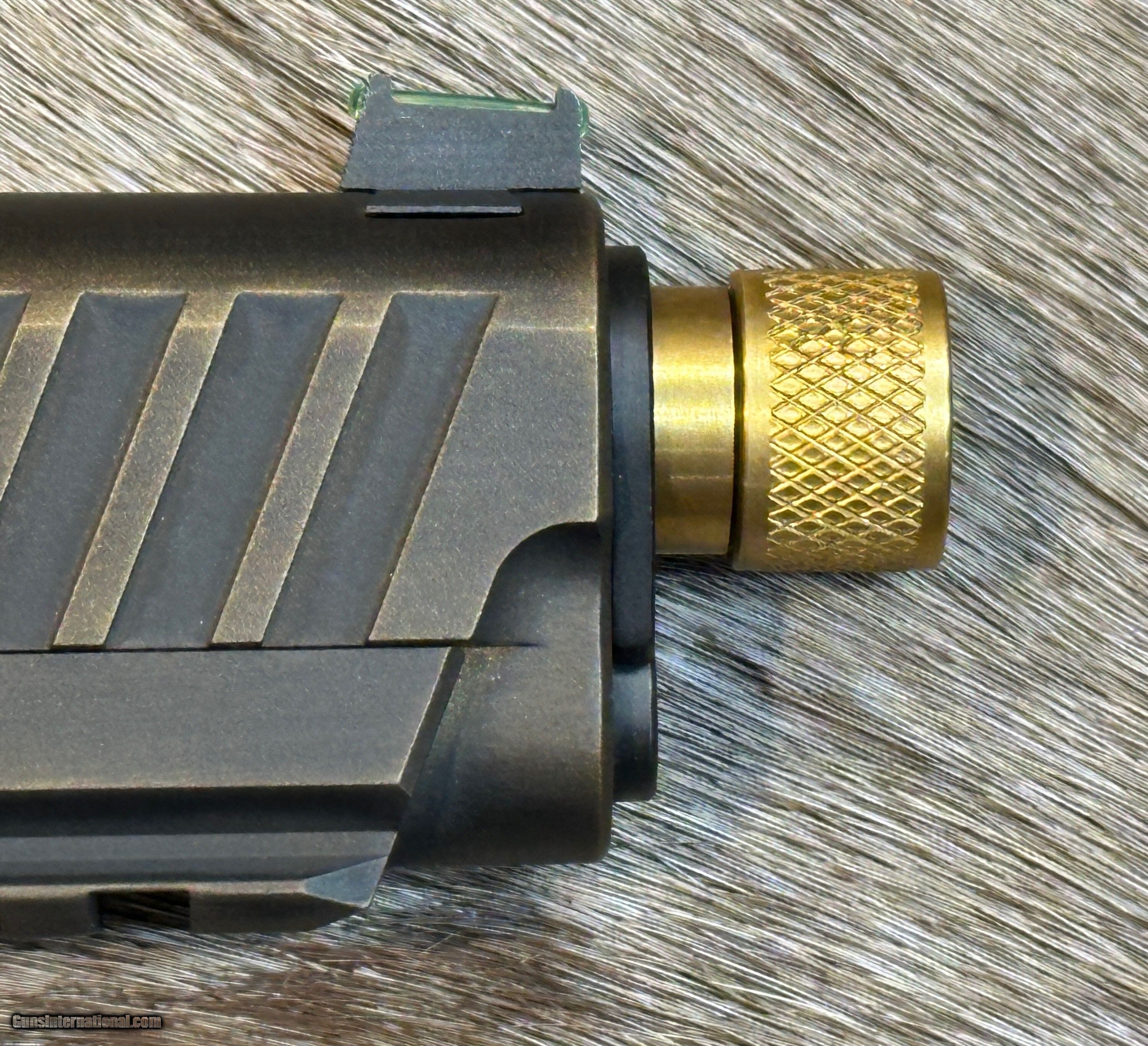 - BATTLEWORN BRONZE coating on frame, slide, small parts, and BLACK Cerakote controls