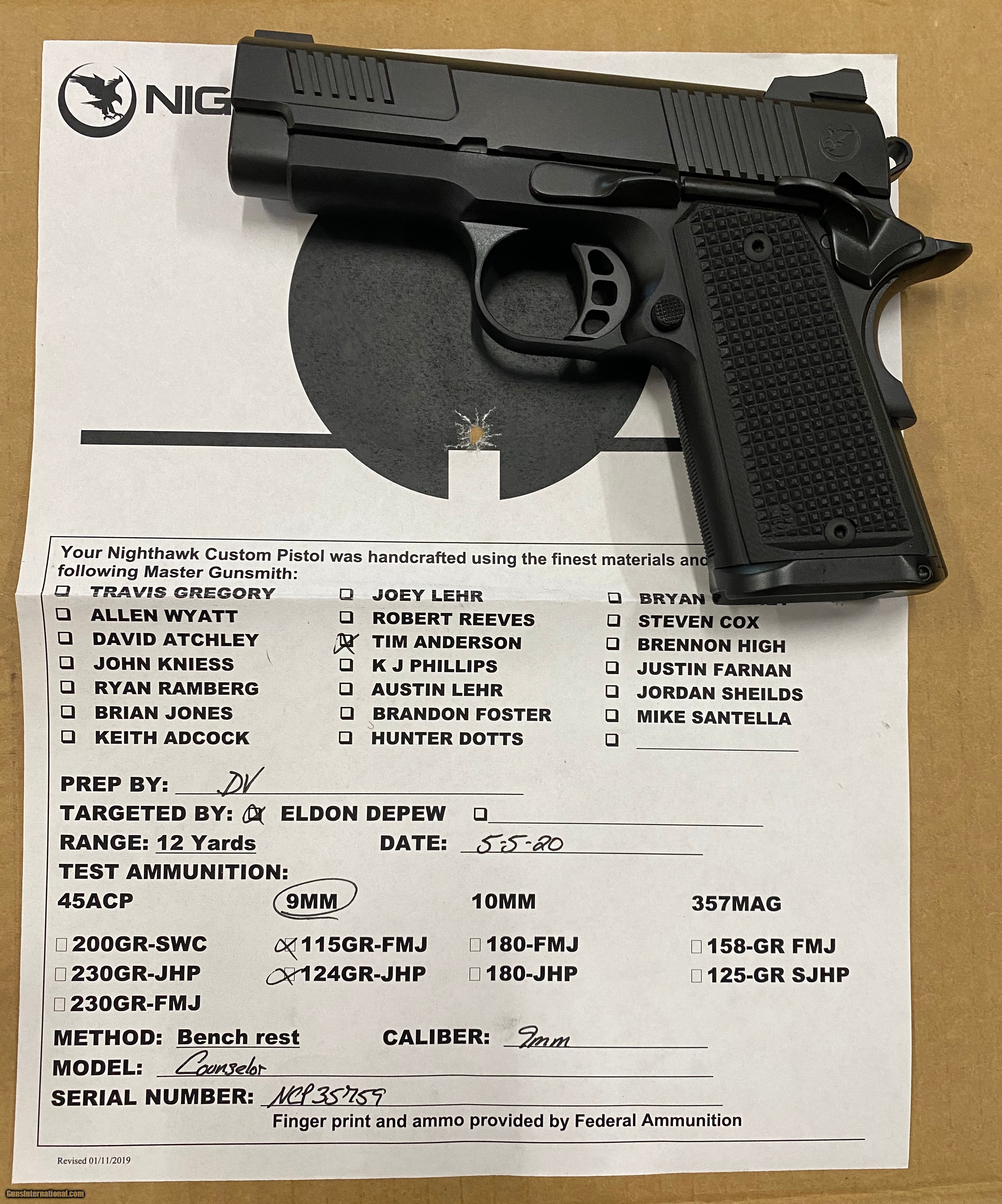 Description: Nighthawk Counselor 9mm 1911 0292 - Factory New SOLD |