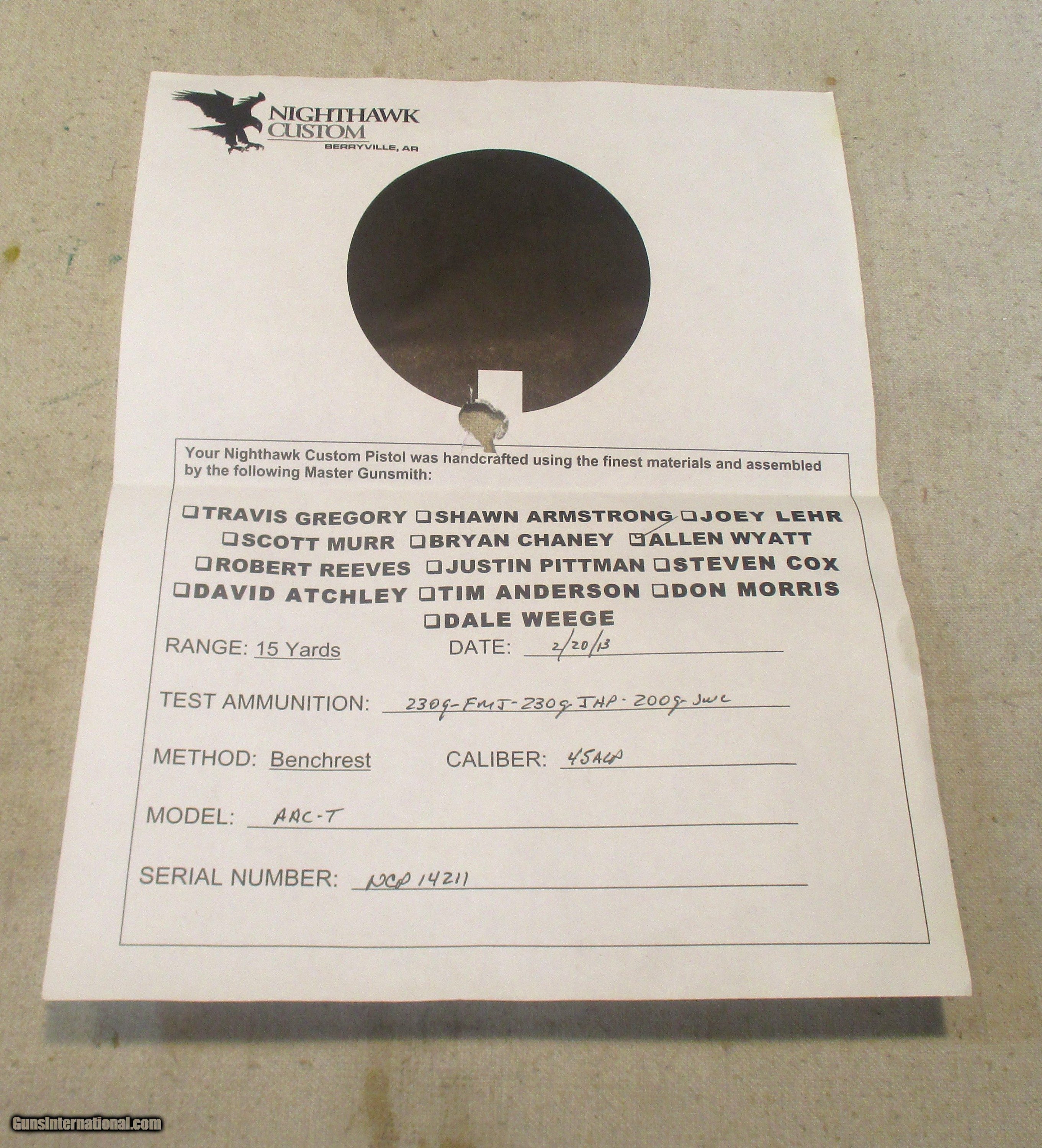 Description: NightHawk Custom 1911 Recon AAC-T .45ACP Semi-Automatic Pistol with 5.5” barrel comes with steel threaded protector to protect your barrel when suppressor not in use, Checkered grips with NIghtHawk Logo, Black Nitride Finish, and Trijicon HD night sights. Price: $3,499 Or Best Offer Listing Includes: Pistol Two 8-Round Magazines Trijicon Sights User Manual NightHawk Zippered Soft Case Condition: Like New Customer Service is available Monday - Friday 10 AM to 5 PM Central Time, to answer questions and emails. Reserve prices are not disclosed, so don't ask. Layaway is not offered. Shipping available only within the lower 48 states. Please Do NOT accept any form of communication from a text message or a phone call other than the phone call listed for our business on . Accepted forms of payment are all major credit cards, cash (Wire Transfer), money order, Cashiers/Teller/Certified Check or personal check. Items are held for 10 business days for all forms of payment except USPS money orders and credit cards. We DO NOT accept Paypal. For items $3000 and over, credit card payments will not be accepted; please call office for additional instructions (additional $10 charge) or you may pay through the mail using a U.S. Postal Money Order. Shipping available within the United States only (NO shipping for firearms and ammunition to California); shipping is available to Alaska and Hawaii for an additional charge. Shipping rates will vary based on final sale value, and include ground rates with insurance and signature. Local pickup is available Monday - Friday, from 10 AM to 5 PM. ALL firearms must be transfered to buyer within 90 days or firearms will be relisted for sale. A valid FFL is required for most transactions (C&R Type 3 FFL's are not accepted, NO EXCEPTIONS), and a file copy of the seller FFL will be shipped with the item. Non FFL transactions require a copy of a valid Government or State issued identification card. We do our best to show everything in the pictures so you know exactly what you are getting. Check out our feedback & purchase with confidence. Used firearms carry a 30 days inspection period; to fire, feed, eject, and otherwise function as the manufacturer intended. In the event of a defect, we will either, AT OUR OPTION, repair the firearm at no charge or issue a refund for the purchase less 20% restock fee. This warranty explicitly does not cover returns for any other reason(s), and does not apply to firearms that are sold as non-firing, or for parts or repair (Inquire with manufacturers to verify any warranties they may offer on NEW items). Returns are only accepted on a case by case basis depending on the circumstances, and items will be inspected and tested per customer complaint prior to issuing a refund. A 20% restocking fee will be charged on all returned or incomplete sells. Please ask for additional information or more photos before purchasing if you're unsure. Buyers are solely responsible for determining the safety of items purchased. No firearm should be fired without having the weapon initially inspected by a qualified gunsmith. The firearms offered have NOT been TEST FIRED unless otherwise stated, but have been given a visual inspection for sale purposes only. We are not gunsmiths and can sometimes miss things. It is recommended that buyers have all firearms inspected by a competent gunsmith prior to use. Ammunition should be used only in well maintained firearms that are in good condition, and are designed for modern ammunition. To avoid injury: (1) Make sure that the correct cartridge for the firearm is being used, (2) Always wear eye protection, (3) Keep the barrel free of obstructions, (4) If a misfire occurs, keep the muzzle pointed in a safe direction and use care in unloading. Ammunition may contain Lead. Buyers are solely responsible for their awareness of and compliance with all laws and regulations in their state of residence regarding firearms, ammunition, magazines, accessories, and blades. By purchasing, buyer agrees to release seller from all liability, whether criminal or civil, arising from the purchase, ownership, possession, or use or misuse of items, and against damages, injury or death caused by use or misuse, or defective merchandise. Please use trigger locks appropriately, and securely lock up firearms and ammunition in a safe location away from children when not in use. Thank you for your interest & please check out my other listings. SOLD Serial Number: NCP14211 |