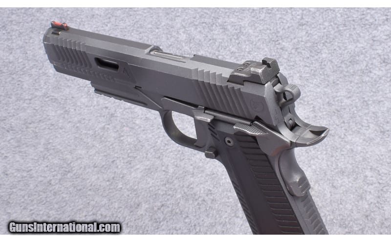 Description: Smoke cerakote finish shows edge wear and few scattered light scratches. Preowned piece offers extremely high tolerances, includes extra 10 round mag. 9mm Luger SOLD Metal Condition: Smoke Cerakote Wood Condition: Railscales G10 Grip Panels Bore Condition: Bright & Sharp Barrels: 5 Inch Match Grade Weight: 41 oz. Sights: "Heine Ledge Dovetailed Rear Sight, Red Fiber Front Item Location: Buda, TX |
