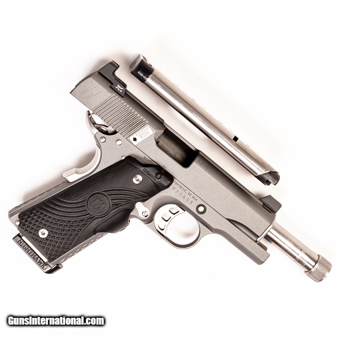 Description: Guns Listing ID: 408515 A step above the rest, the Nighthawk Custom is a high end 1911 that is popular among operators, competitors, and avid shooters. It comes stock with a match grade barrel, a threaded barrel with a thread protector, Crimson Trace laser grips, and Trijicon suppressor height sights. This handgun includes two 8-round magazines, spare recoil springs, and the manual. SOLD Manufacturer: NIGHTHAWK CUSTOM Model: CUSTOM Caliber Info: .45 ACP Condition: Used - Certified Barrels: 5 BARREL Finish: BLACK |