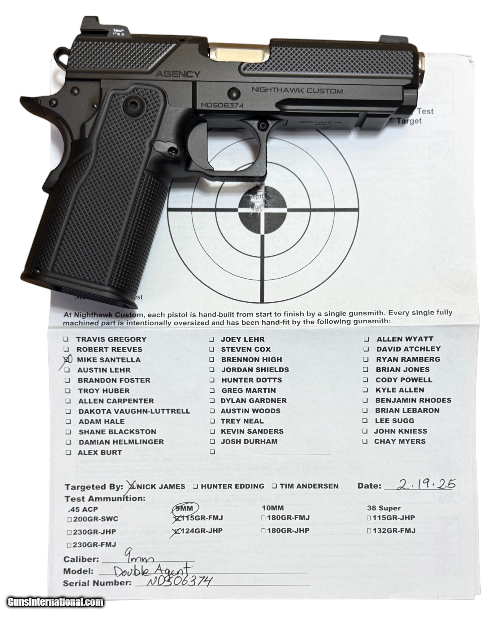 Nighthawk Custom Double Agent 9mm IOS Optics Ready Agency 1911 1343