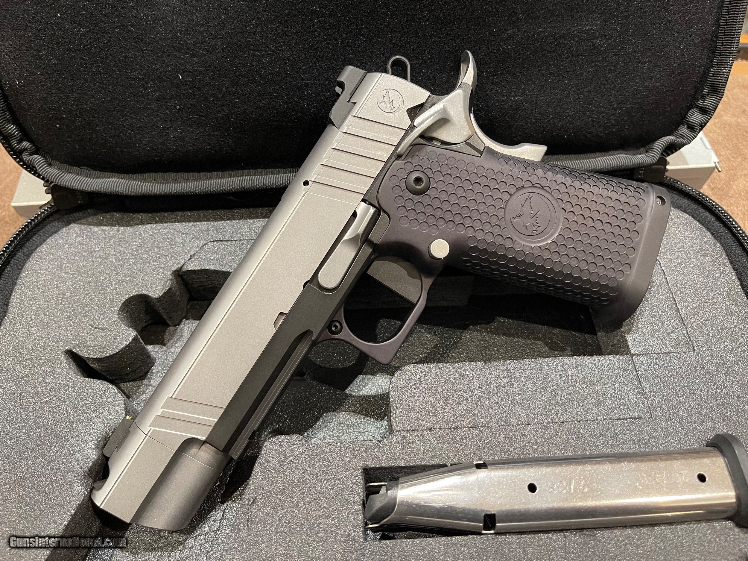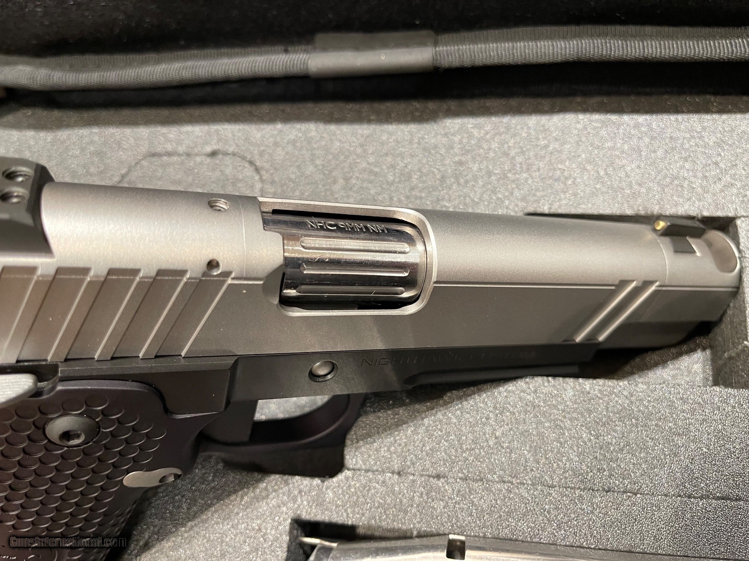 Description: New in the box Nighthawk Custom Fire Hawk Gov. 9mm, One piece MSH/Magwell Checkered, Wide Rear Cocking Serration, Gold bead, with Comp. Upgrades... Double Stack Upgrade Sight upgrade - Nighthawk IOS Barrel Hood Flutes Stainless Ugrade slide Stailness upgrade controls Add front cocking serrations Ambi Safety ISO Plate, Trijicon RMR, Iron sight Forward of Optic SOLD Handgun Caliber: 9x19mm Parabellum (9mm Luger, 9x19mm NATO) |